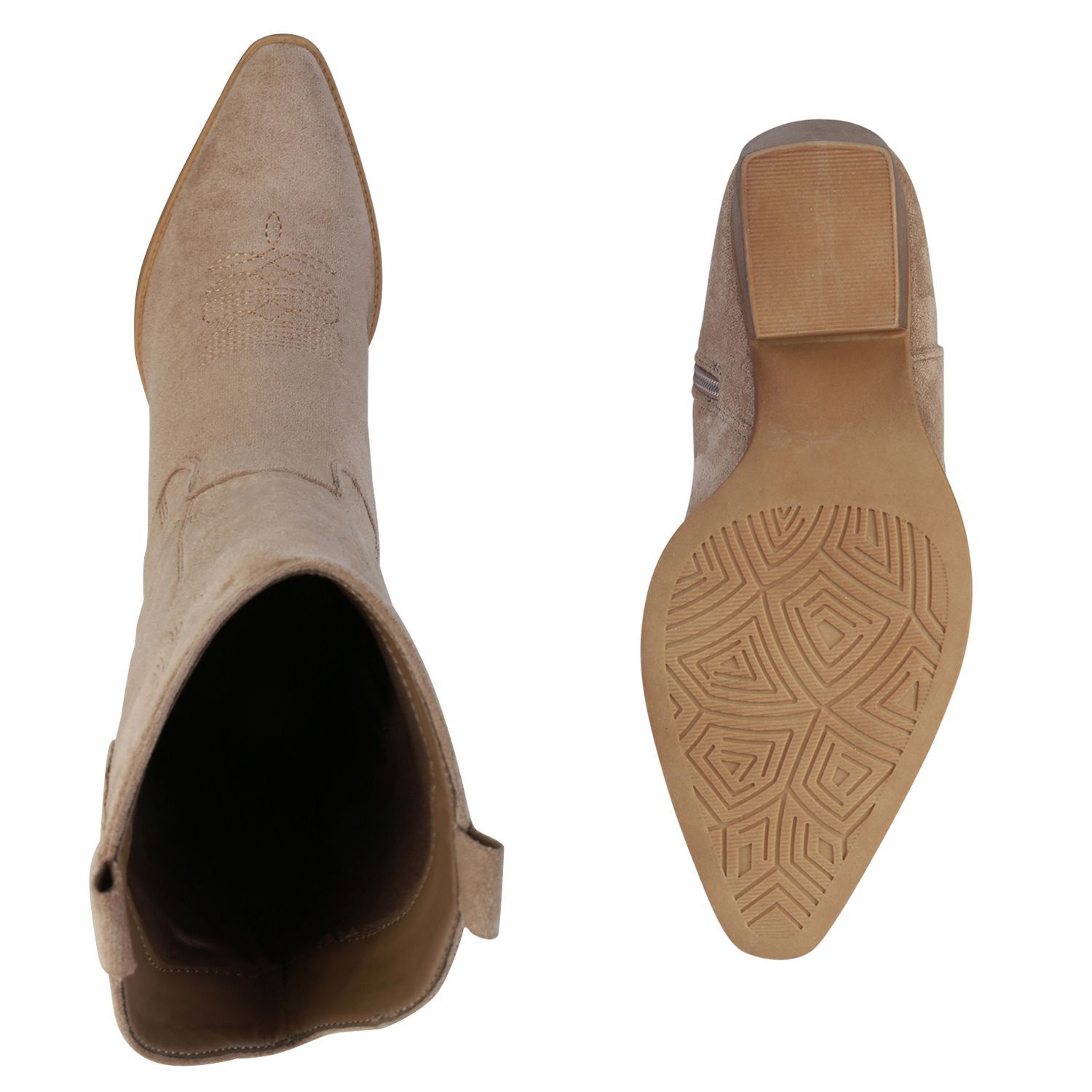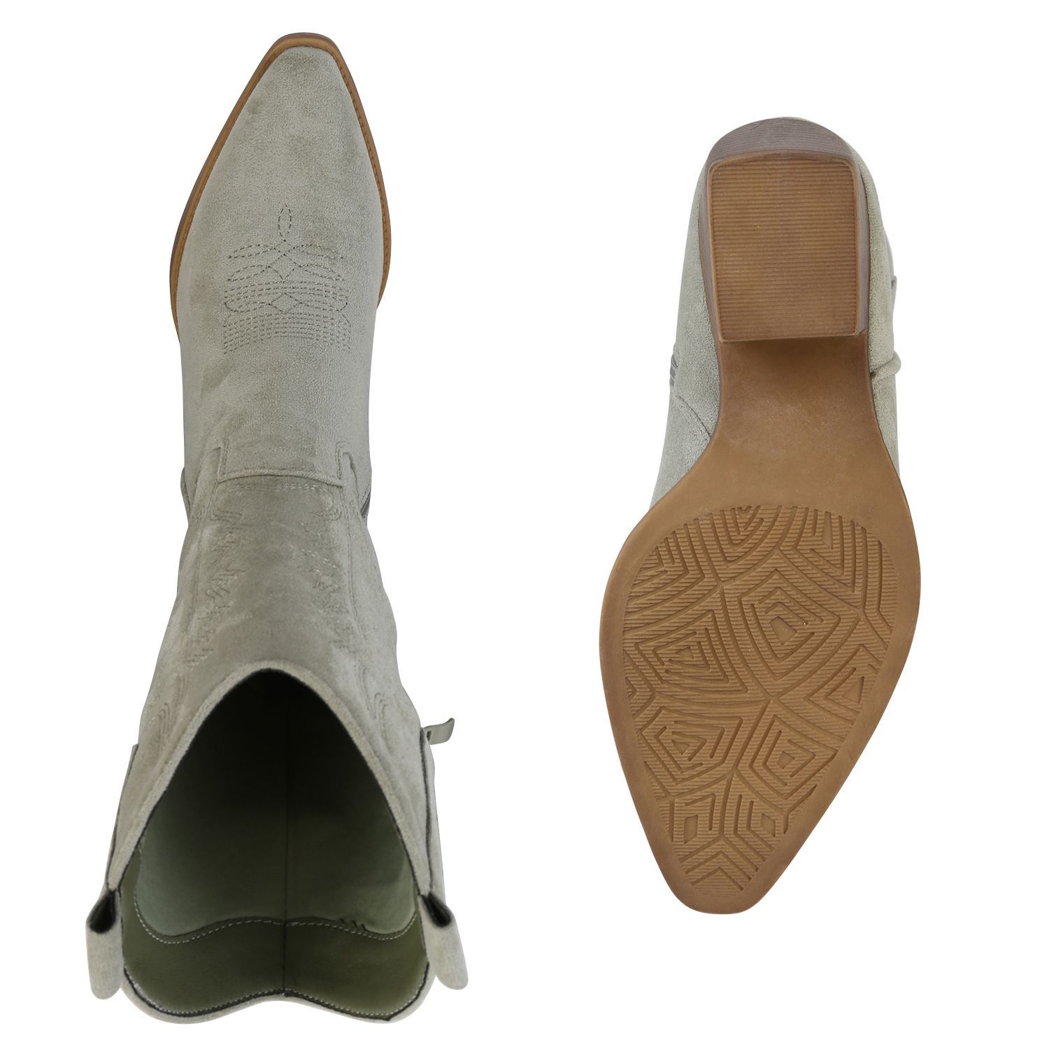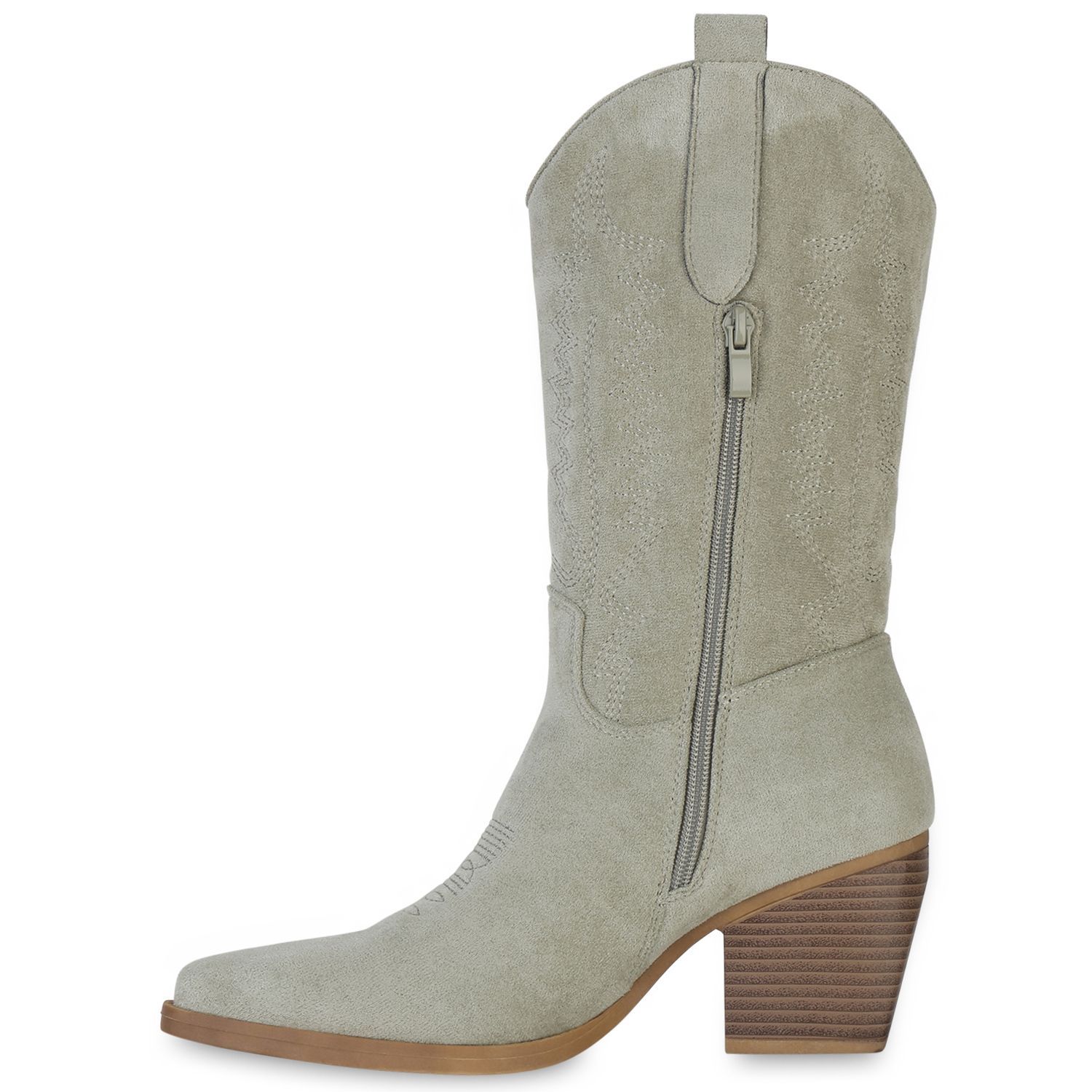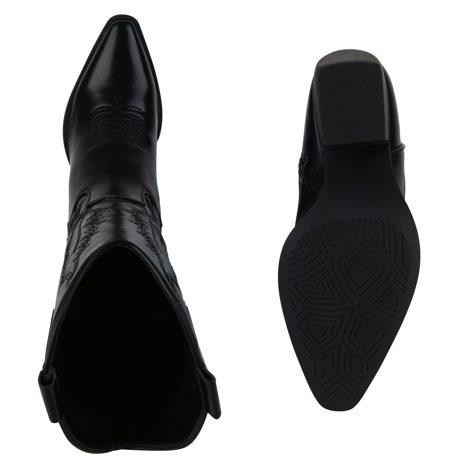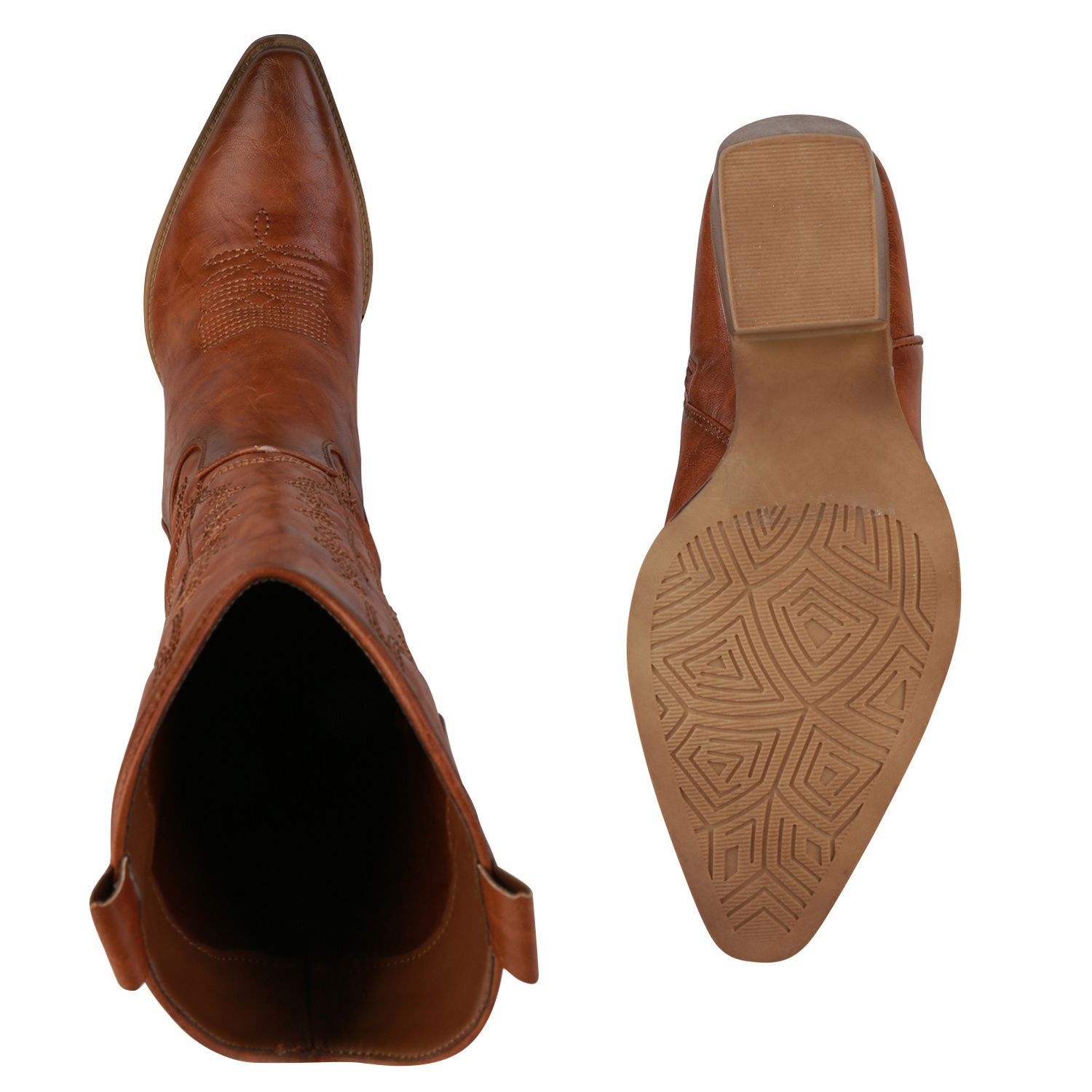 VAN HILL Damen Stiefel Cowboystiefel Holzoptikabsatz Stickereien Schuhe 838384
