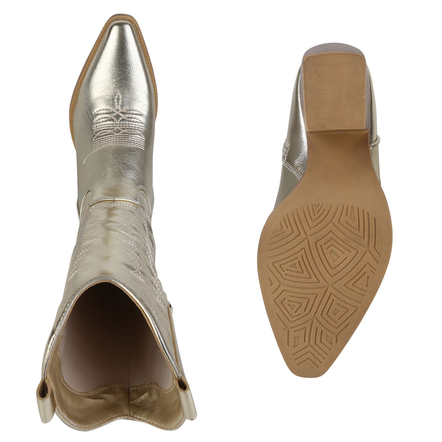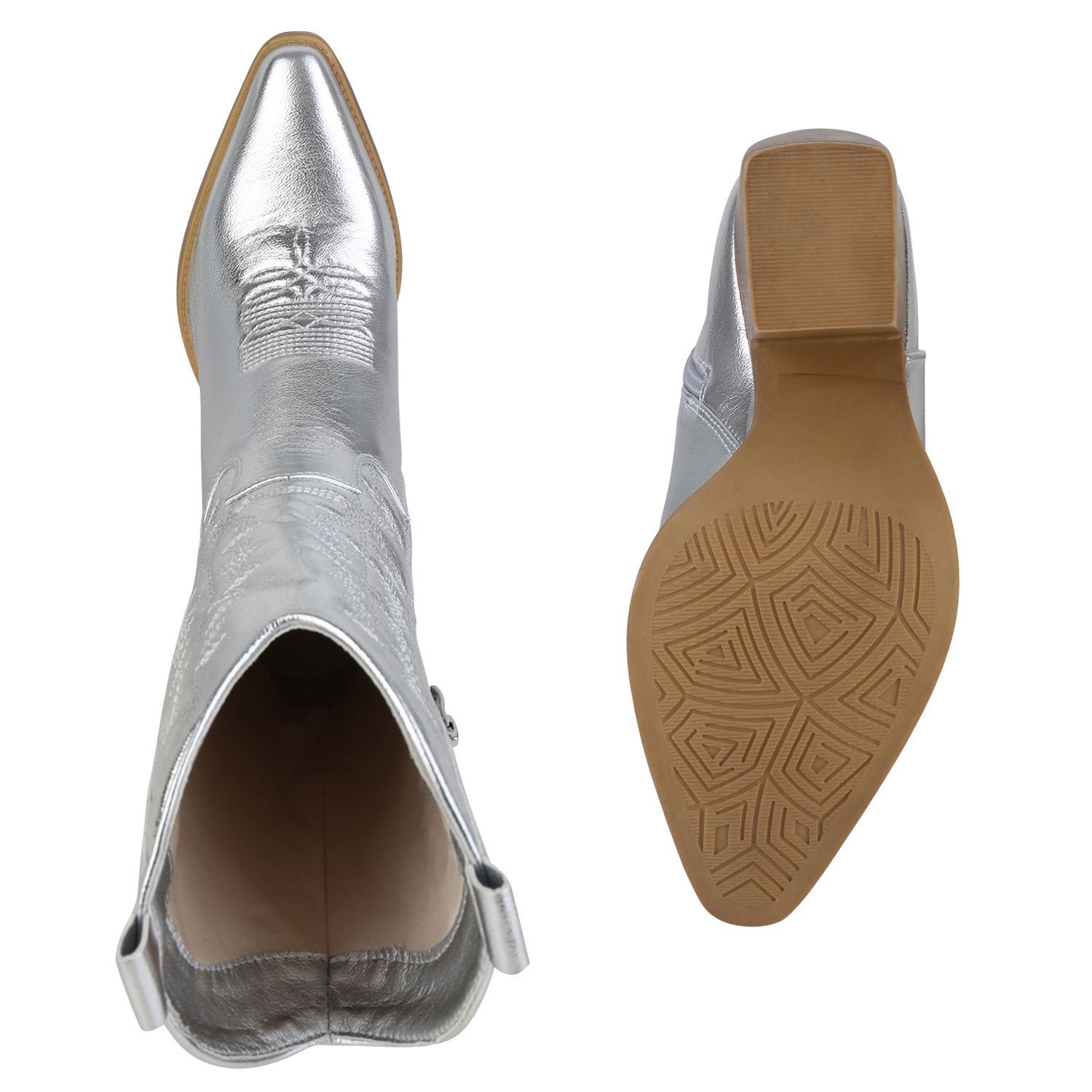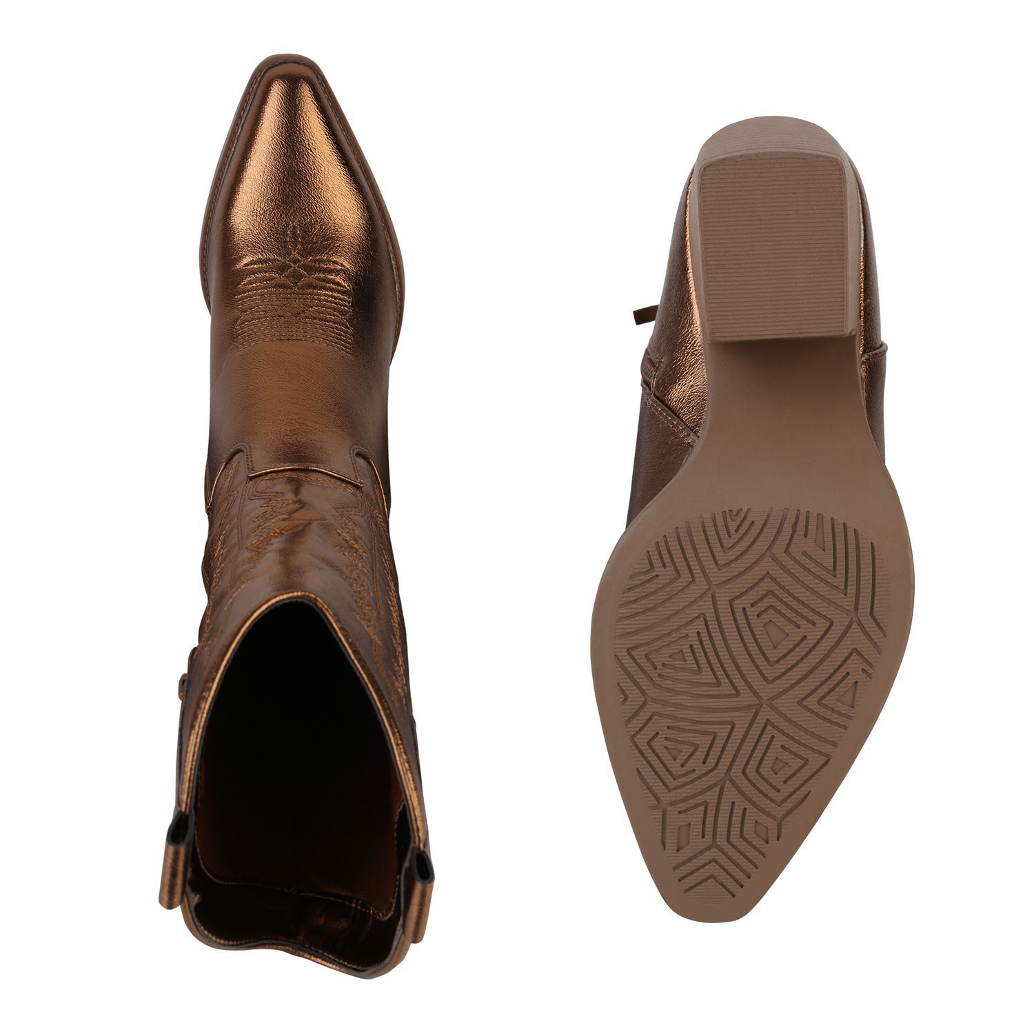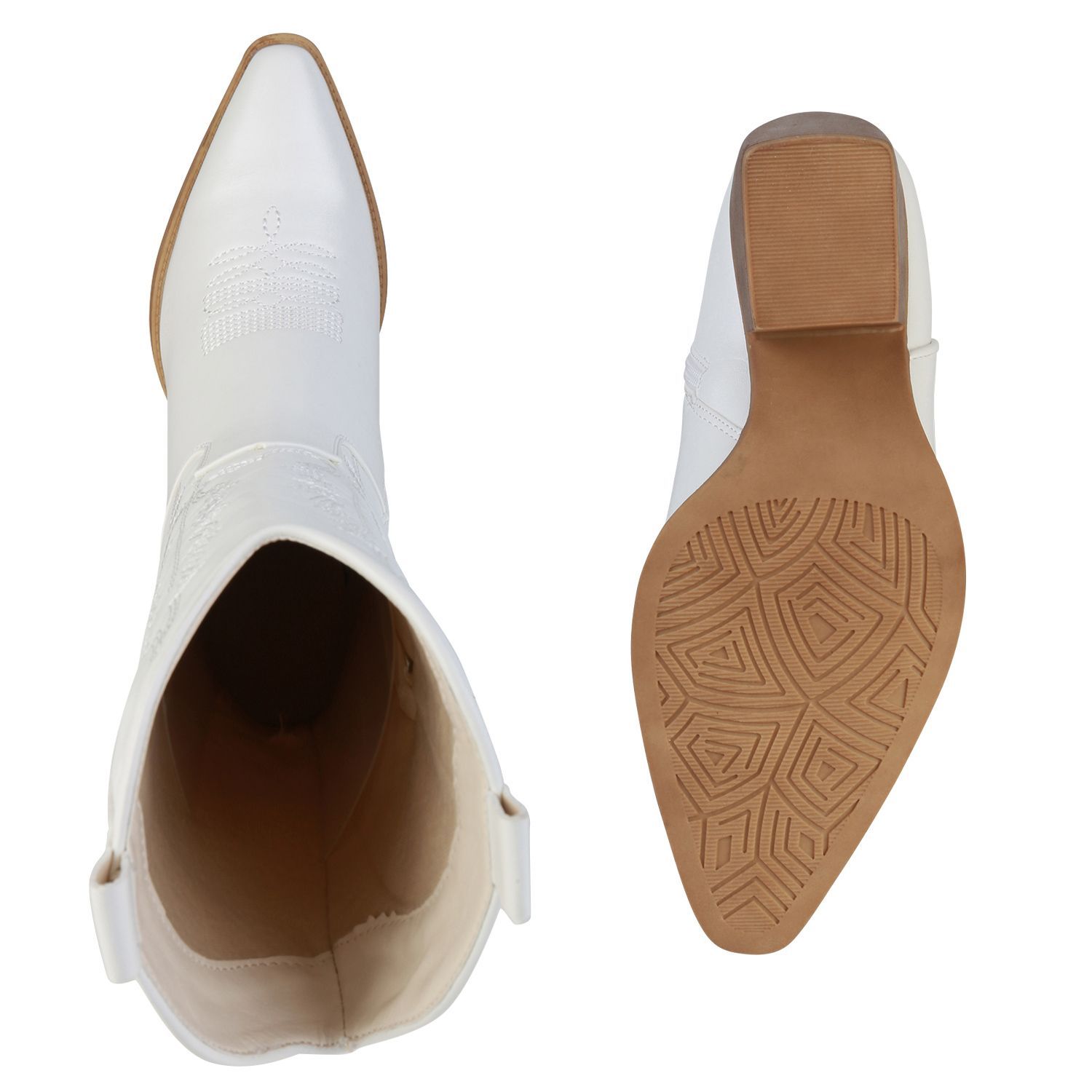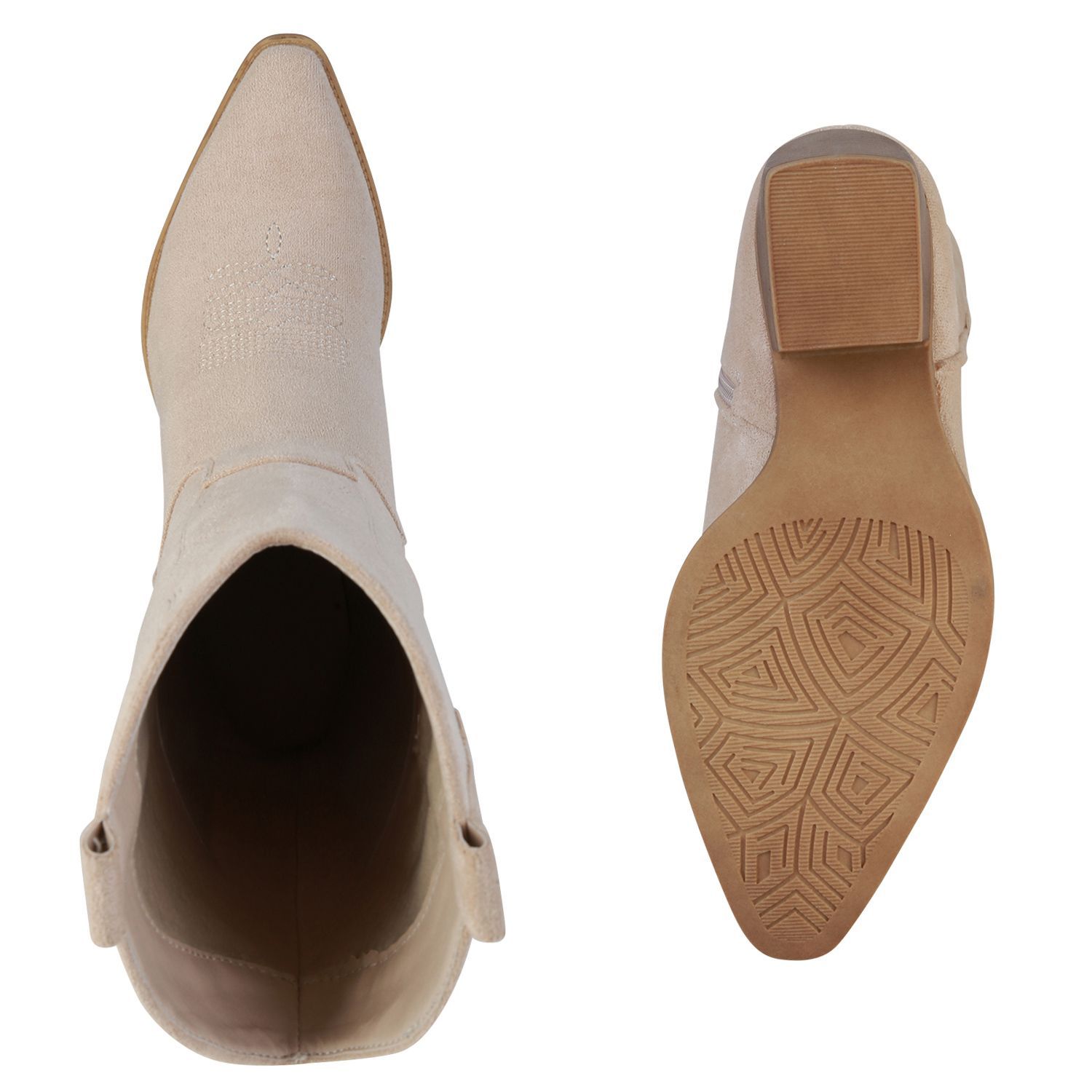 VAN HILL Damen Stiefel Cowboystiefel Holzoptikabsatz Stickereien Schuhe 838384