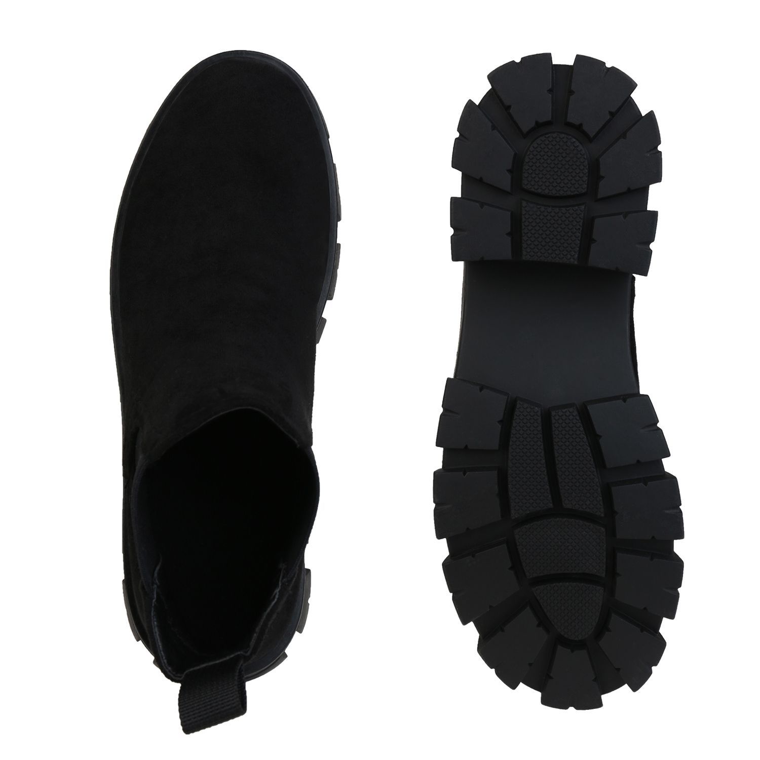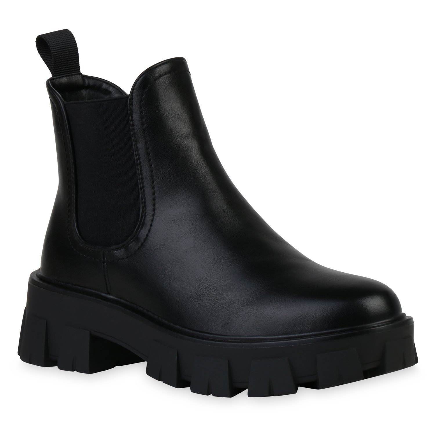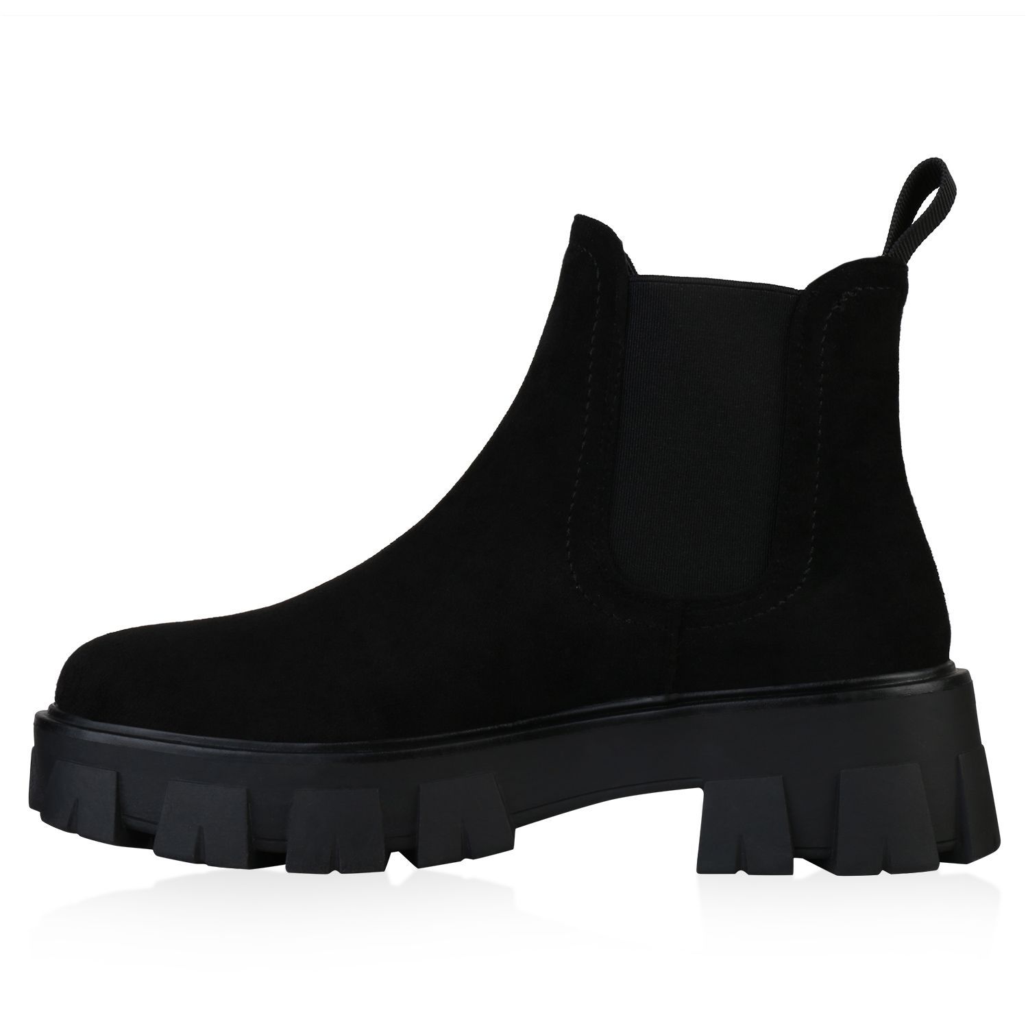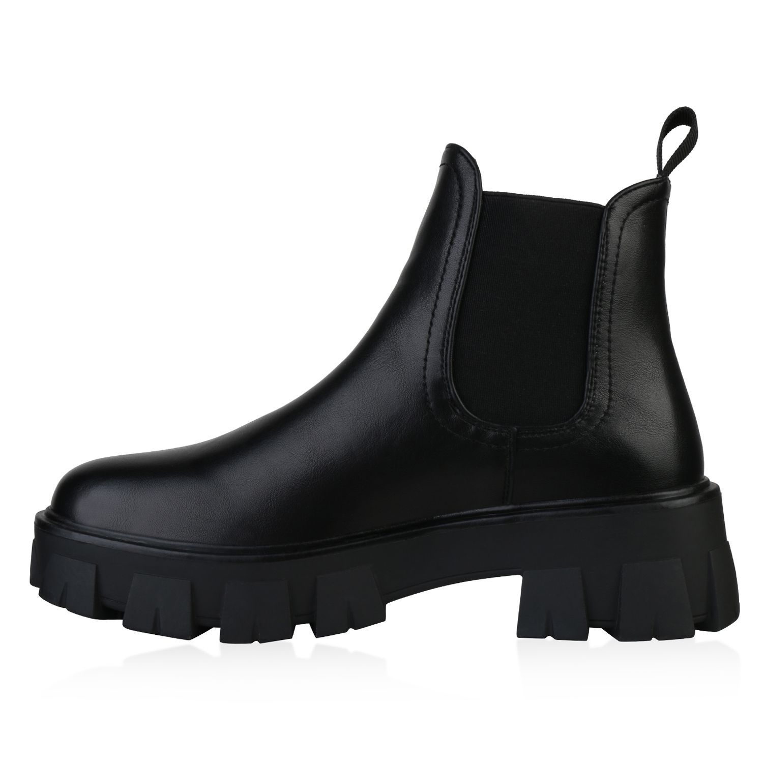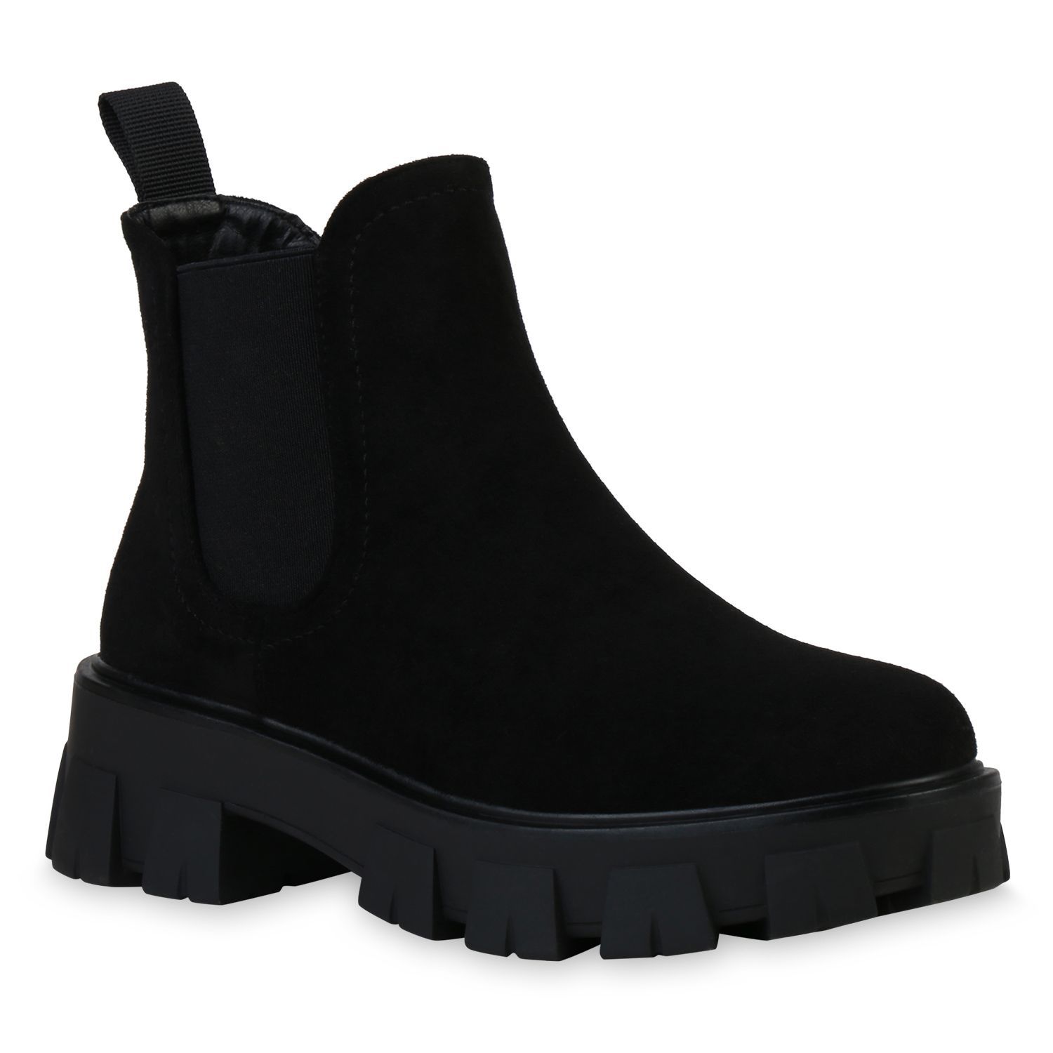 VAN HILL Damen Stiefeletten Plateau Boots Blockabsatz Profil-Sohle Schuhe 836326