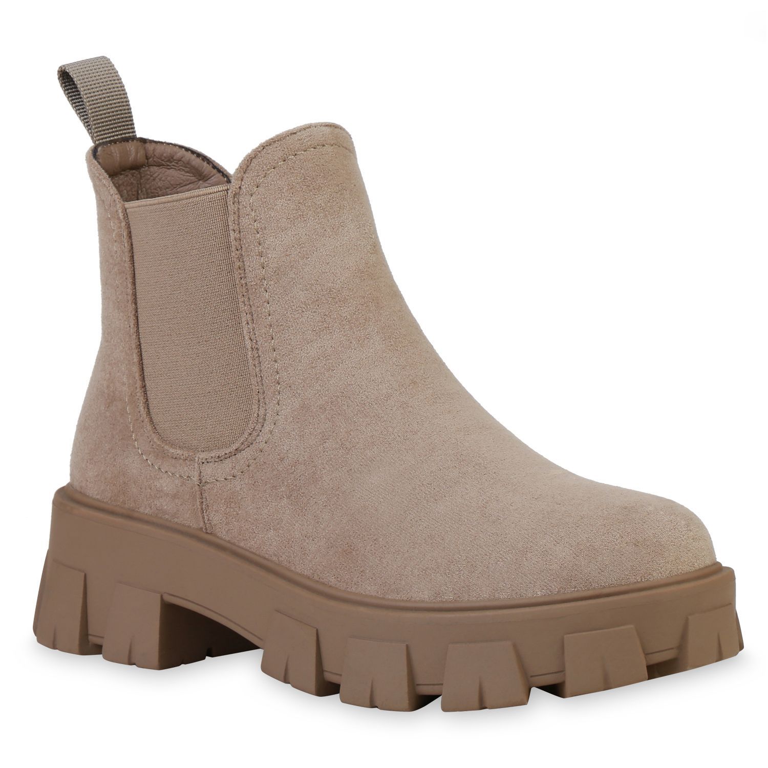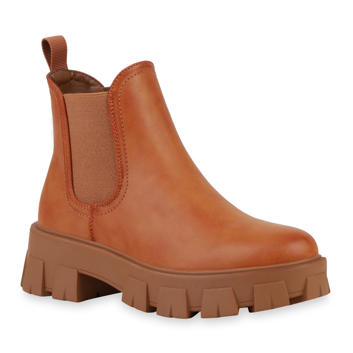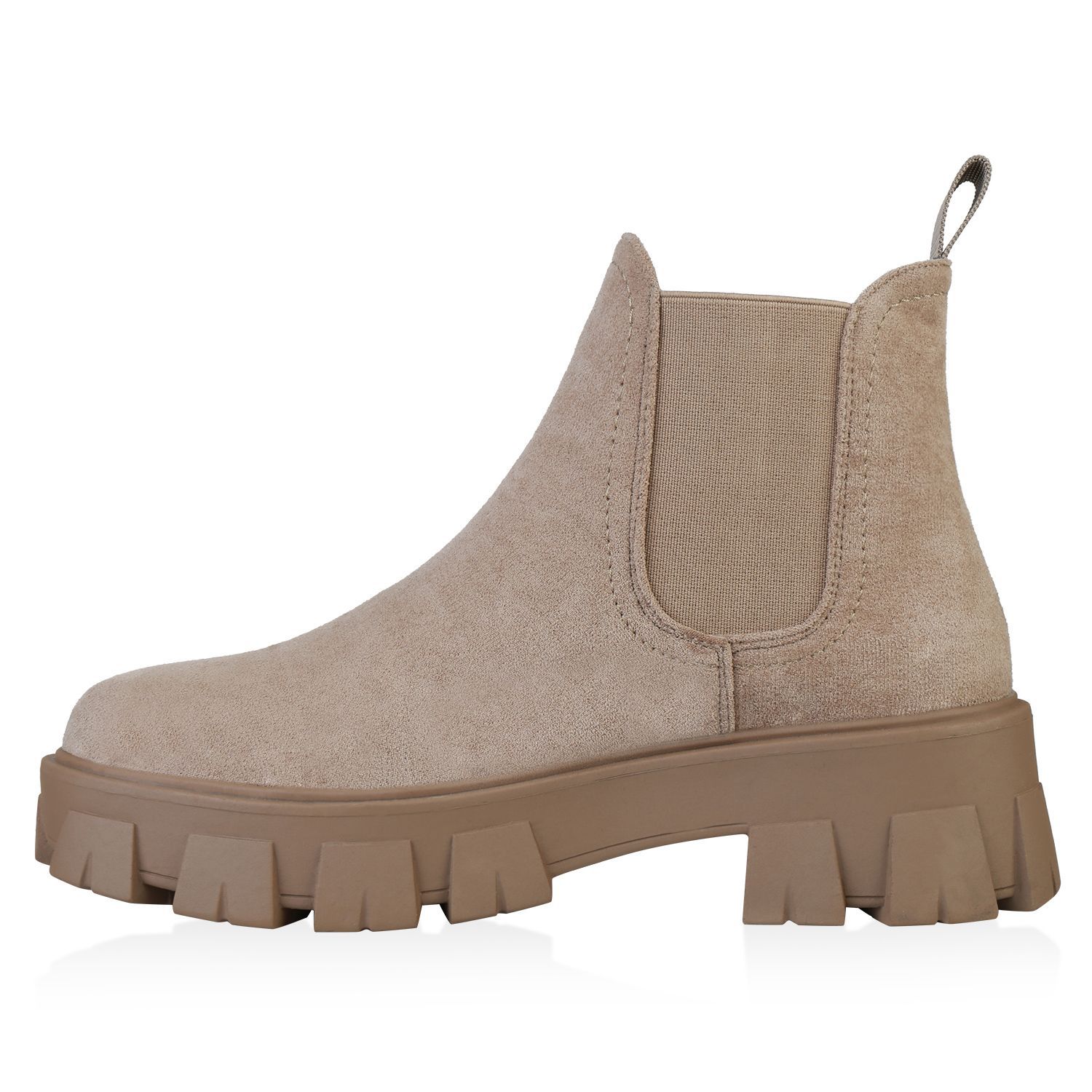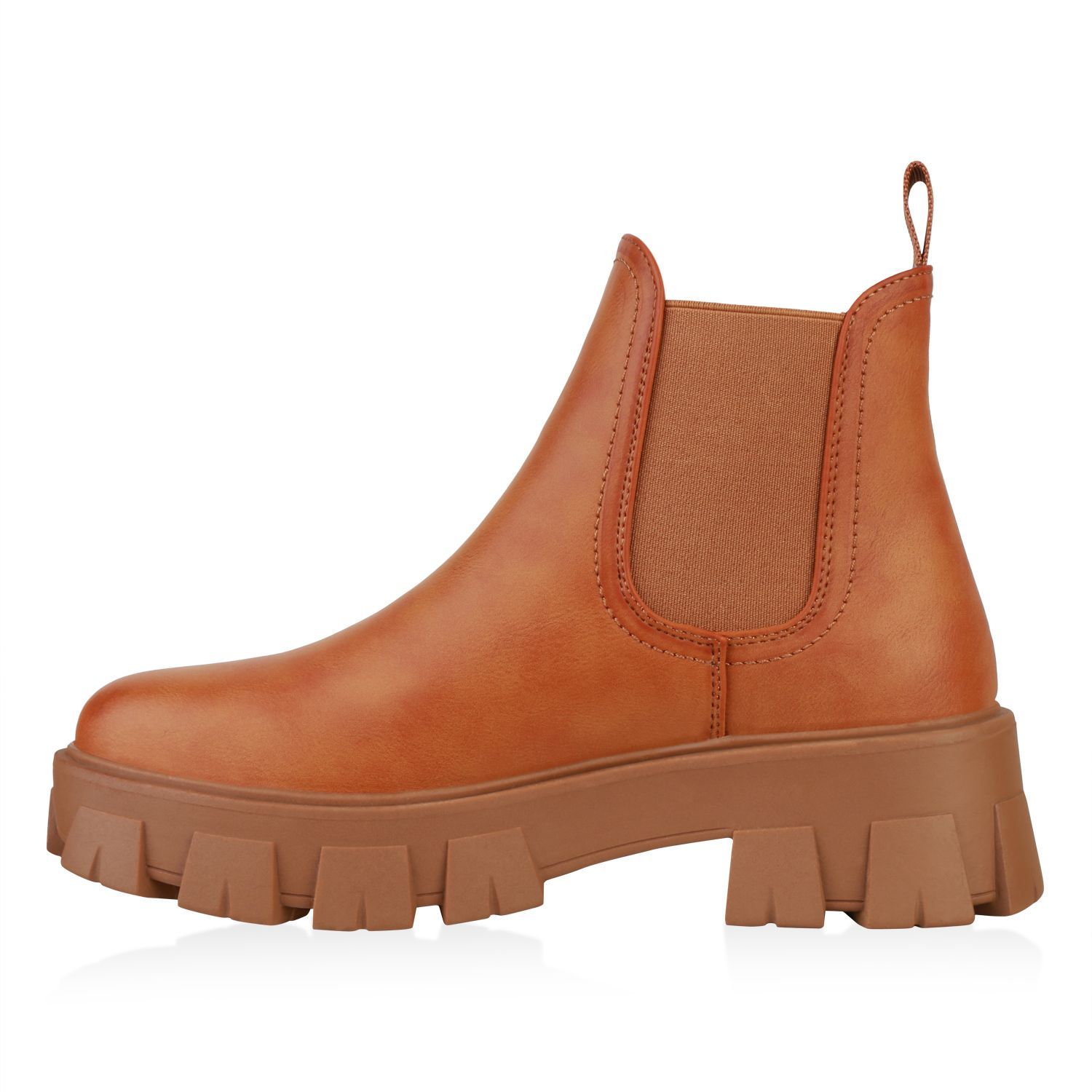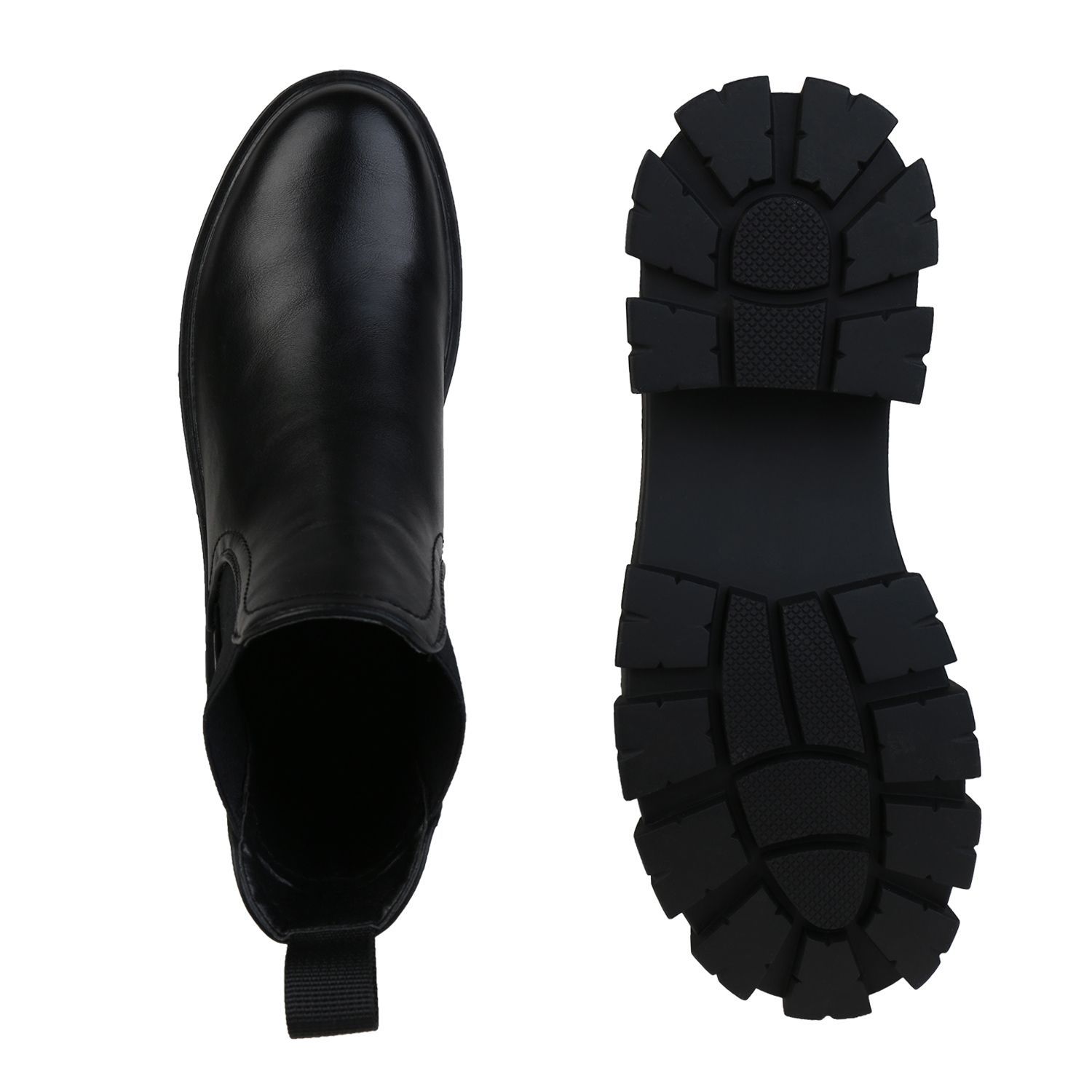 VAN HILL Damen Stiefeletten Plateau Boots Blockabsatz Profil-Sohle Schuhe 836326