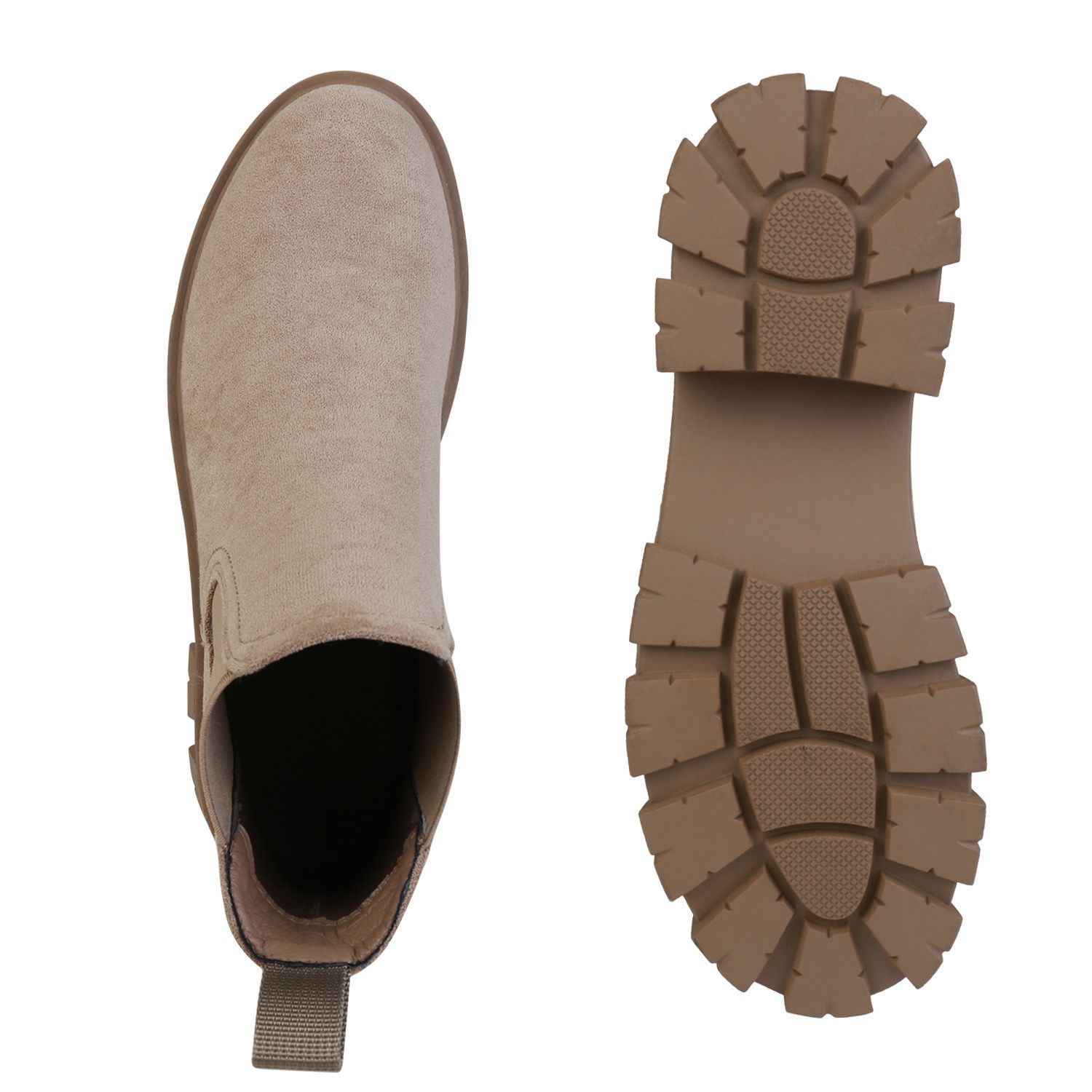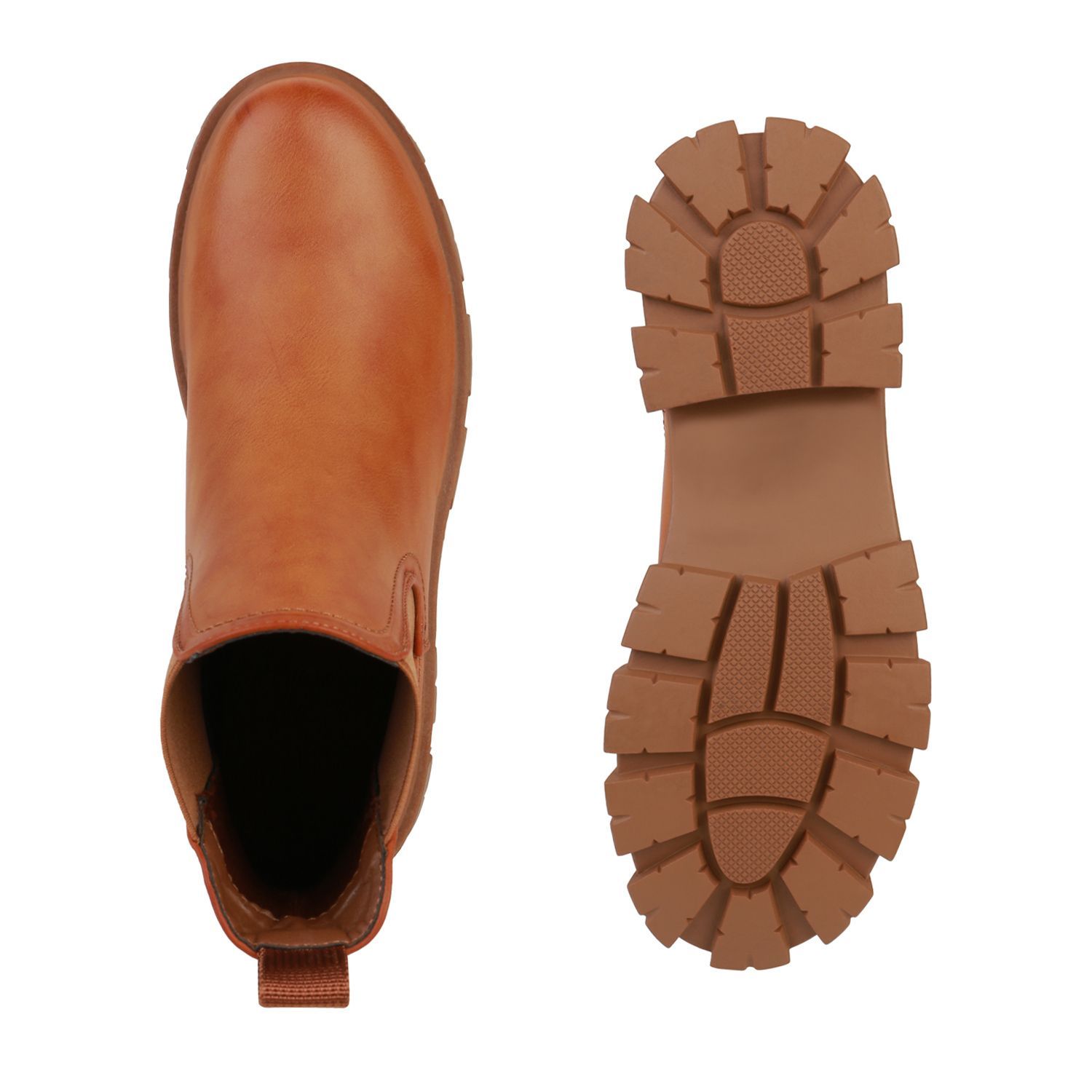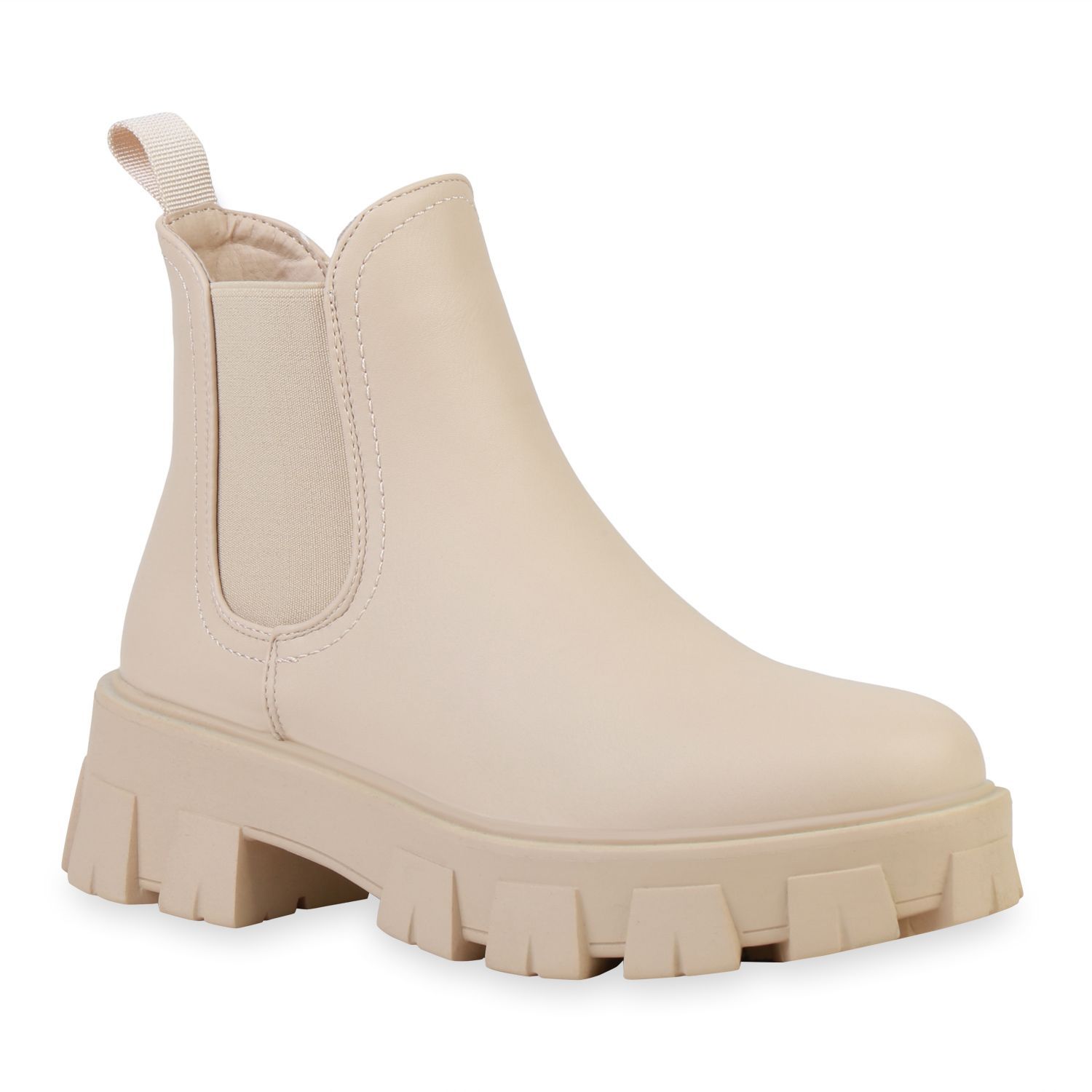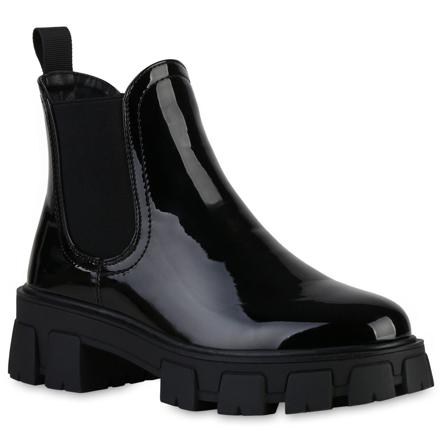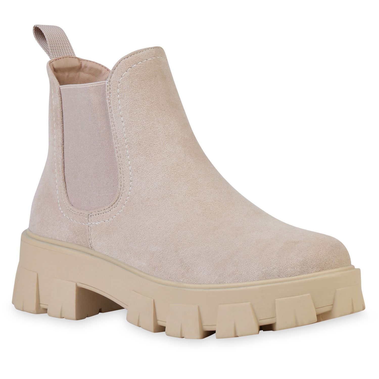 VAN HILL Damen Stiefeletten Plateau Boots Blockabsatz Profil-Sohle Schuhe 836326