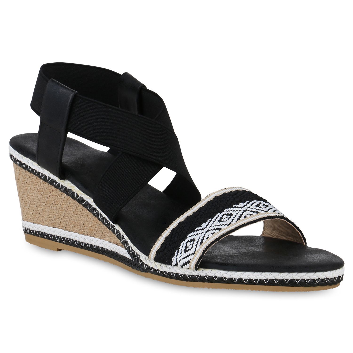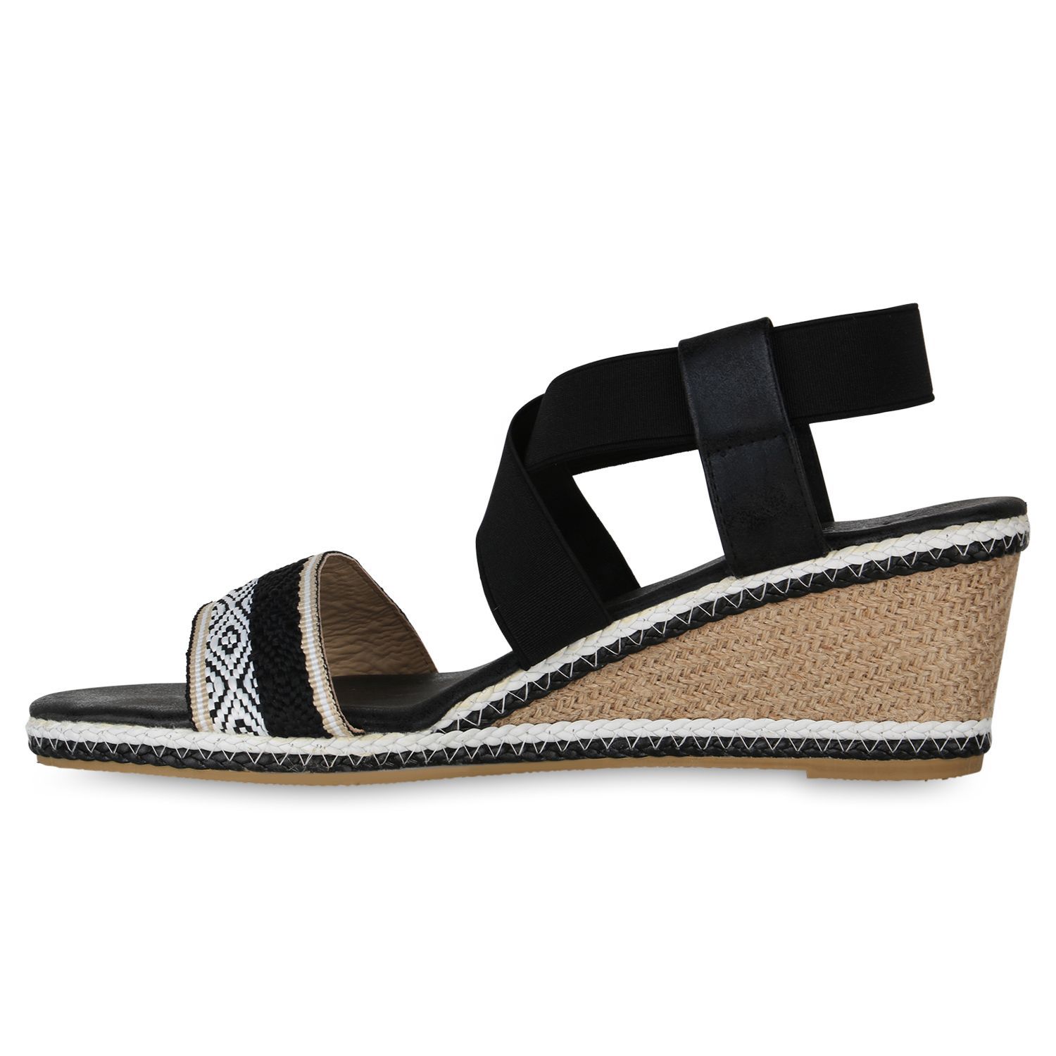 VAN HILL Damen Übergrößen Keilsandaletten Sandaletten Bast Prints Schuhe 841276