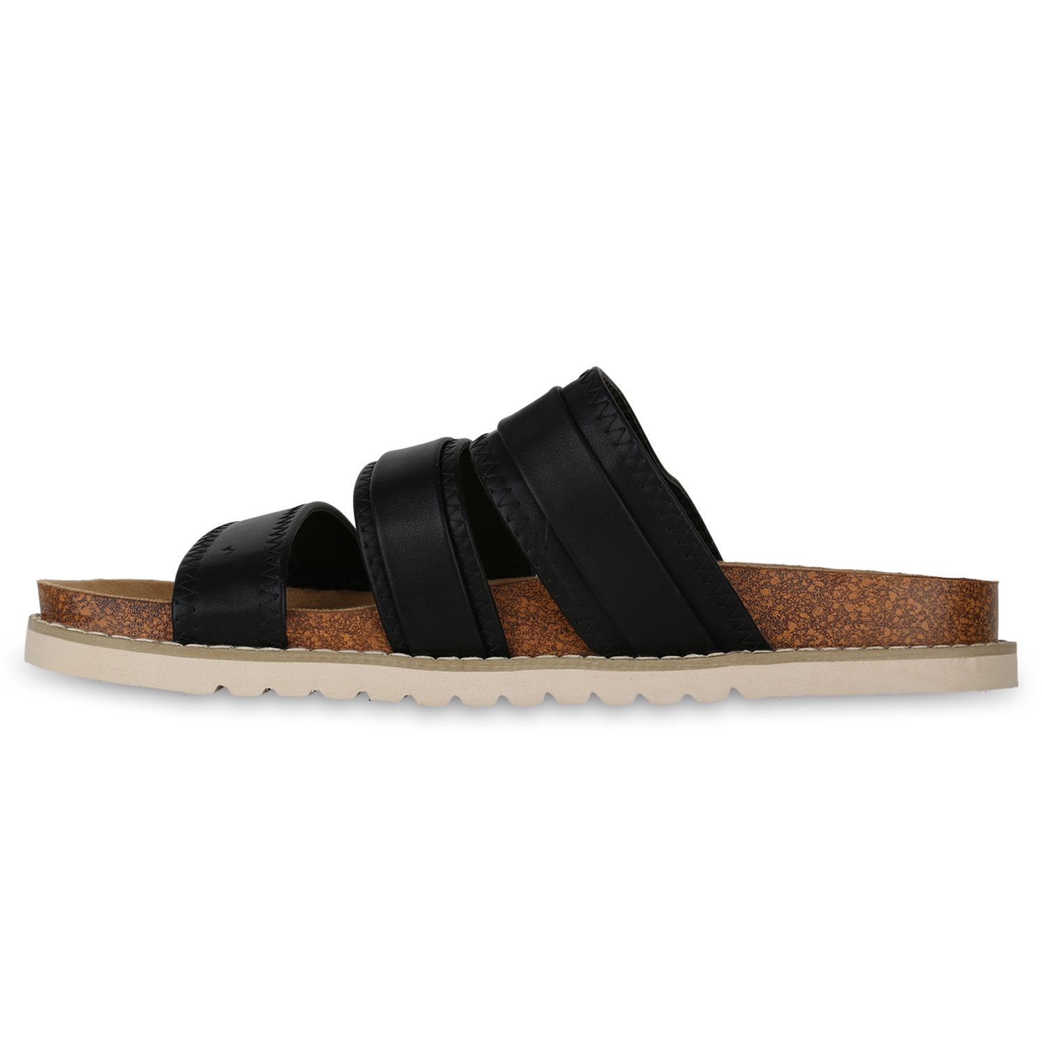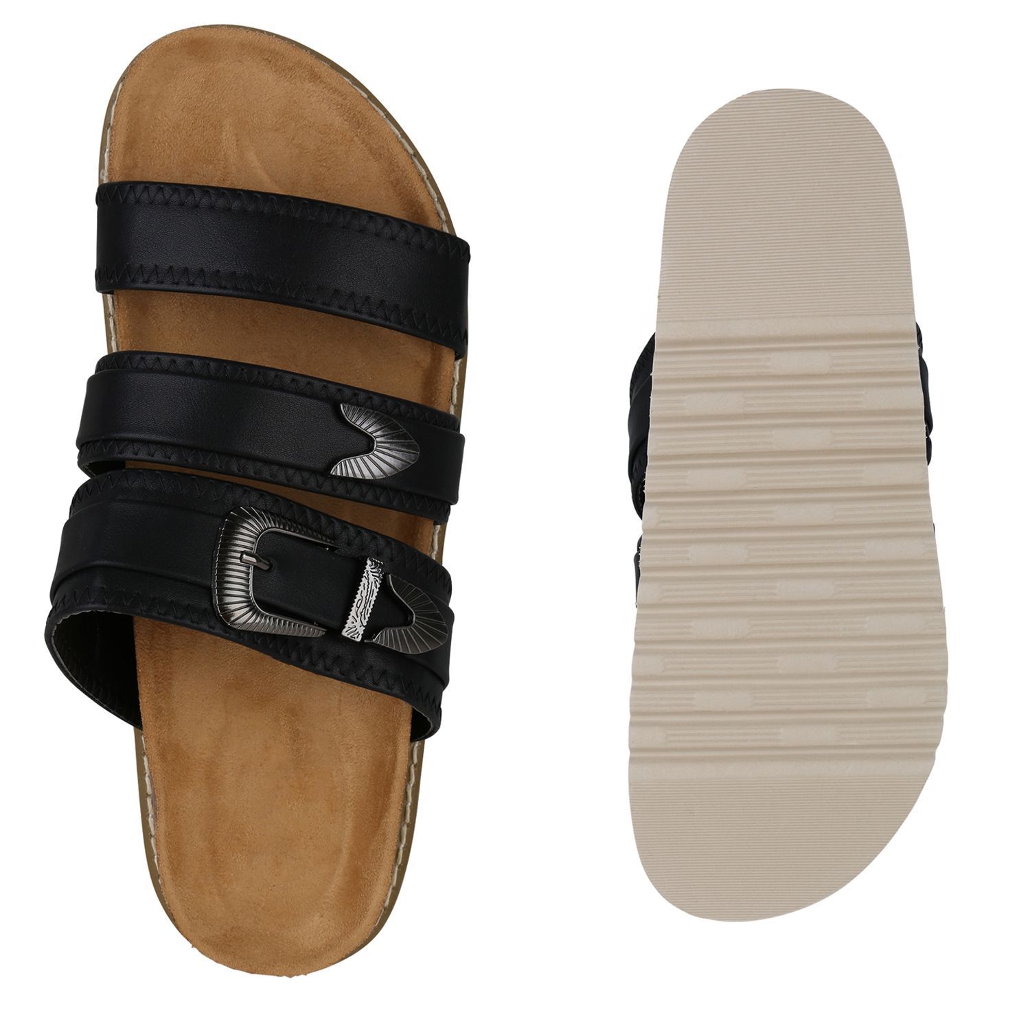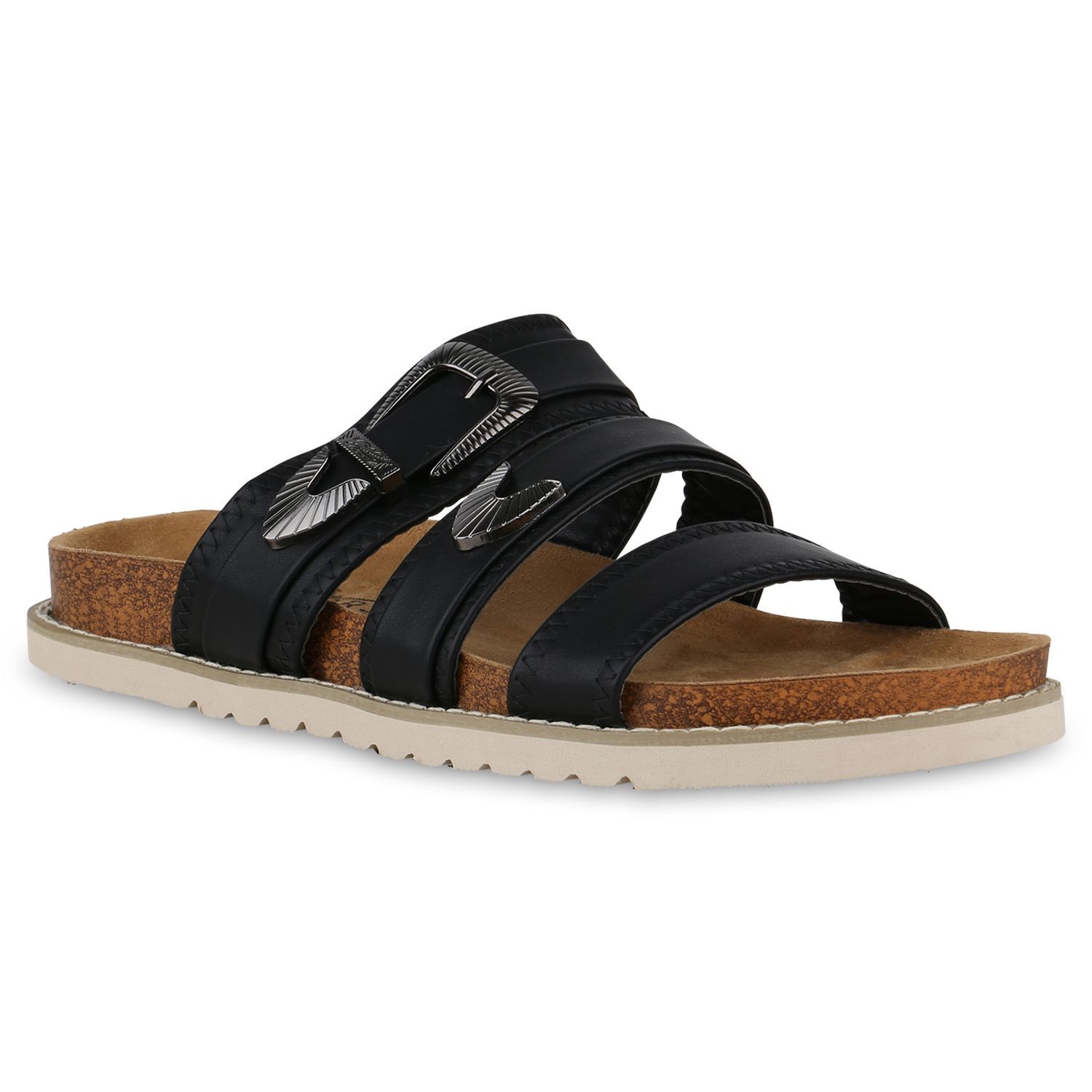 VAN HILL Damen Übergrößen Pantoletten Sandale Schnallen Profil-Sohle Schuhe 841271