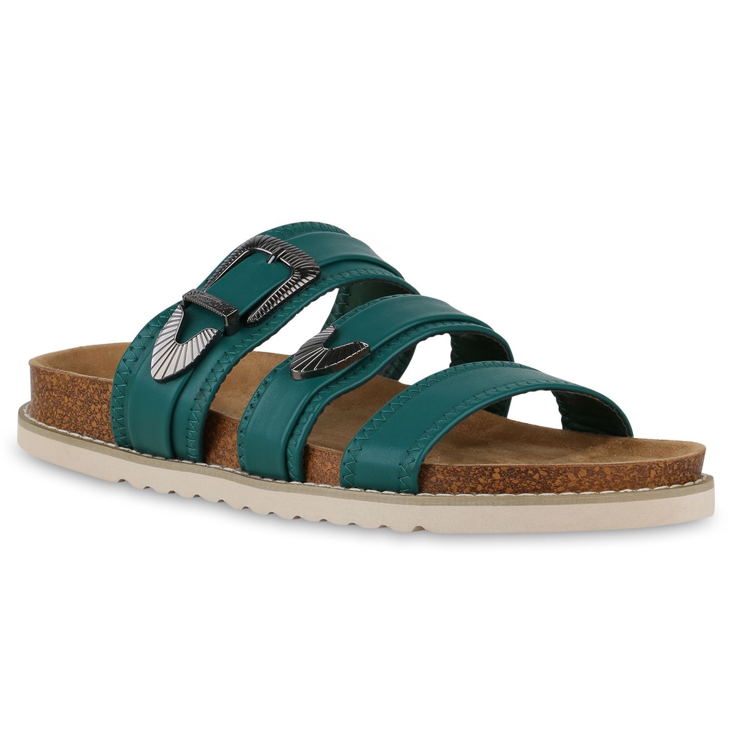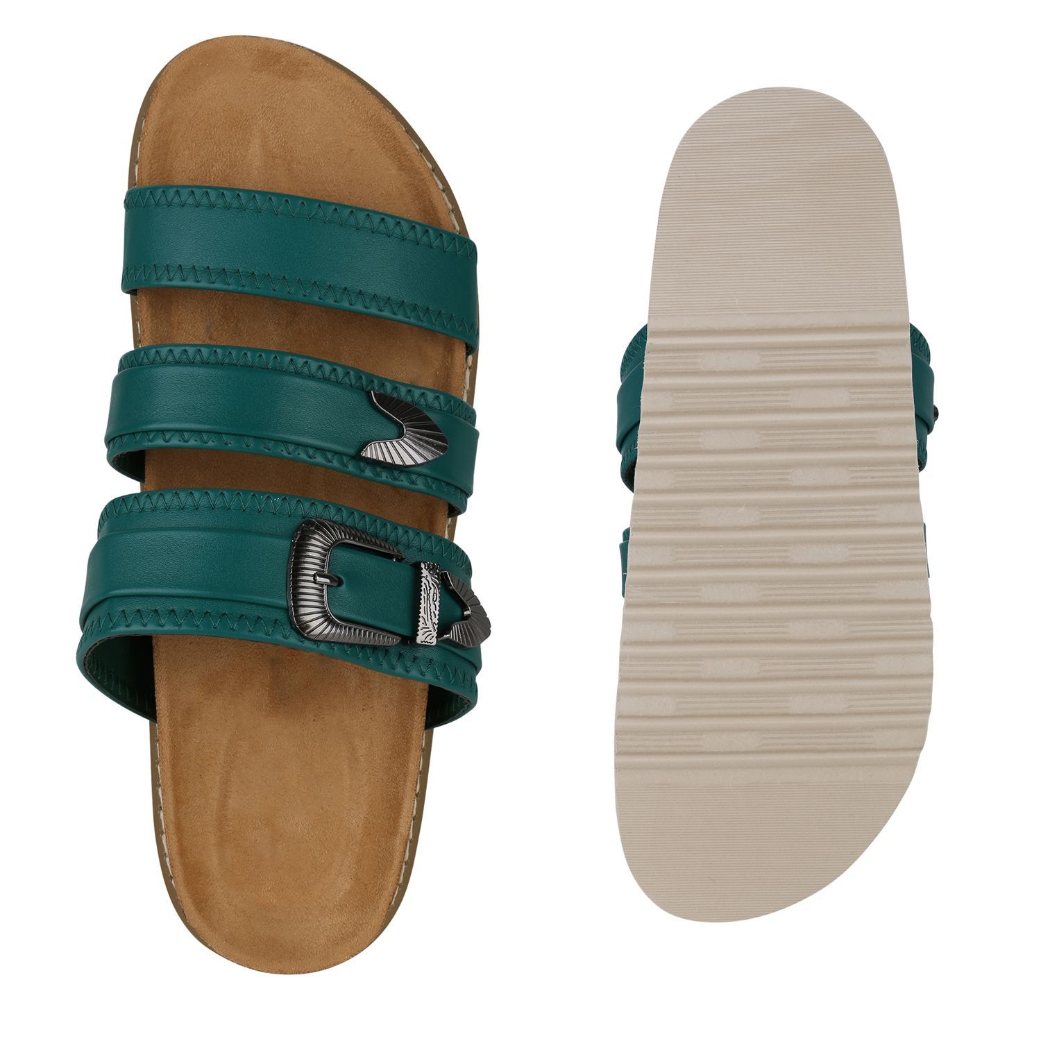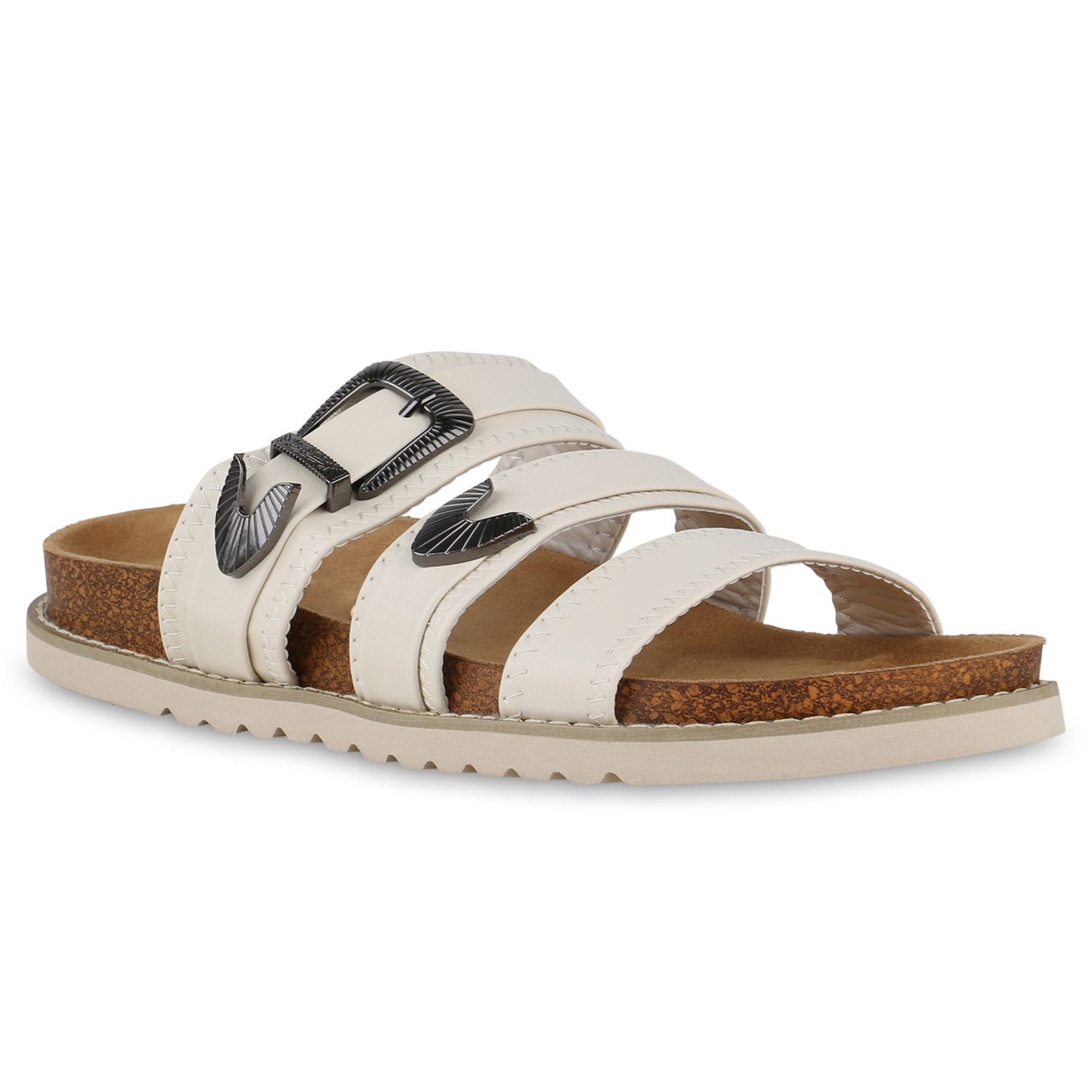 VAN HILL Damen Übergrößen Pantoletten Sandale Schnallen Profil-Sohle Schuhe 841271