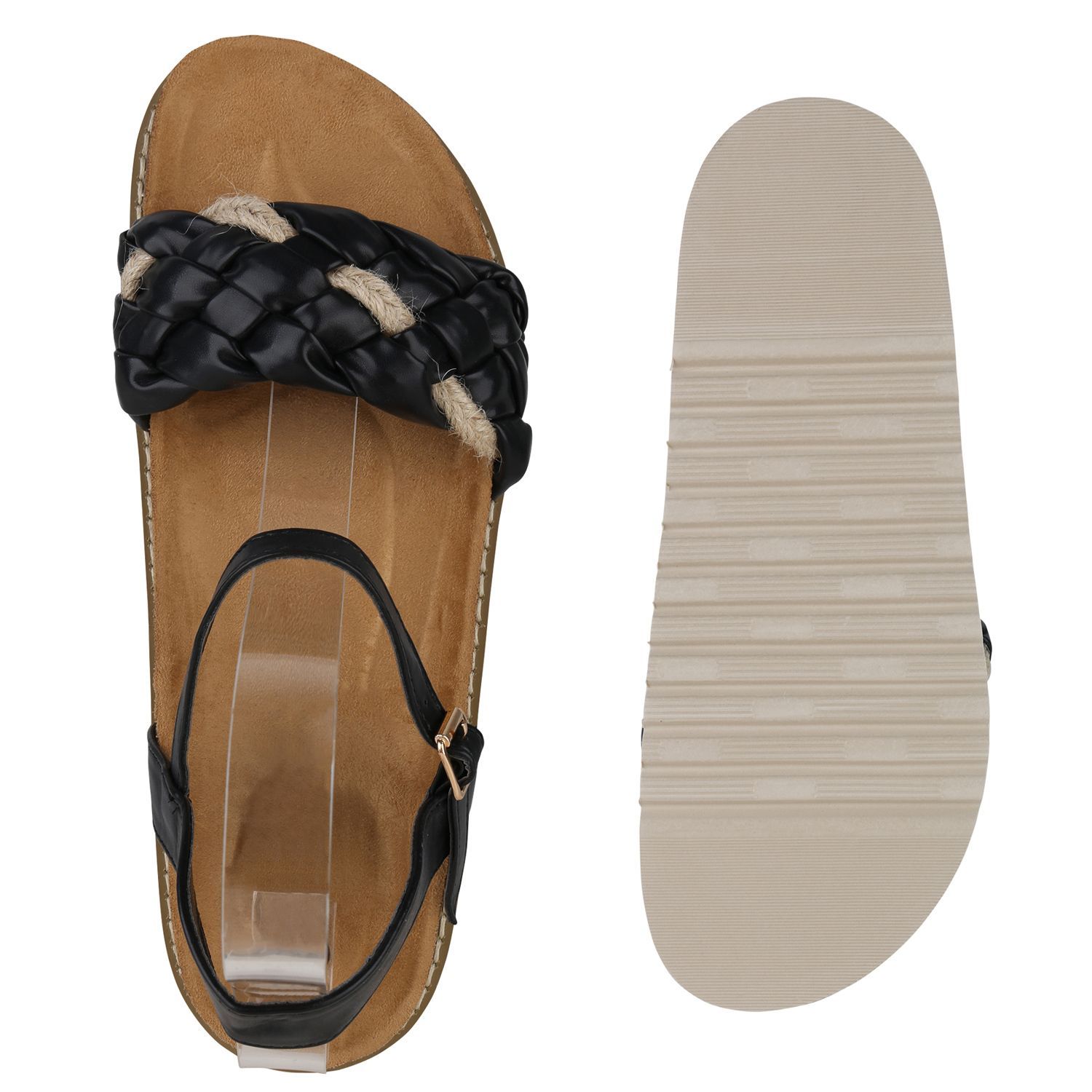 VAN HILL Damen Übergrößen Riemchensandalen Sandale Bast Profil-Sohle Schuhe 841270