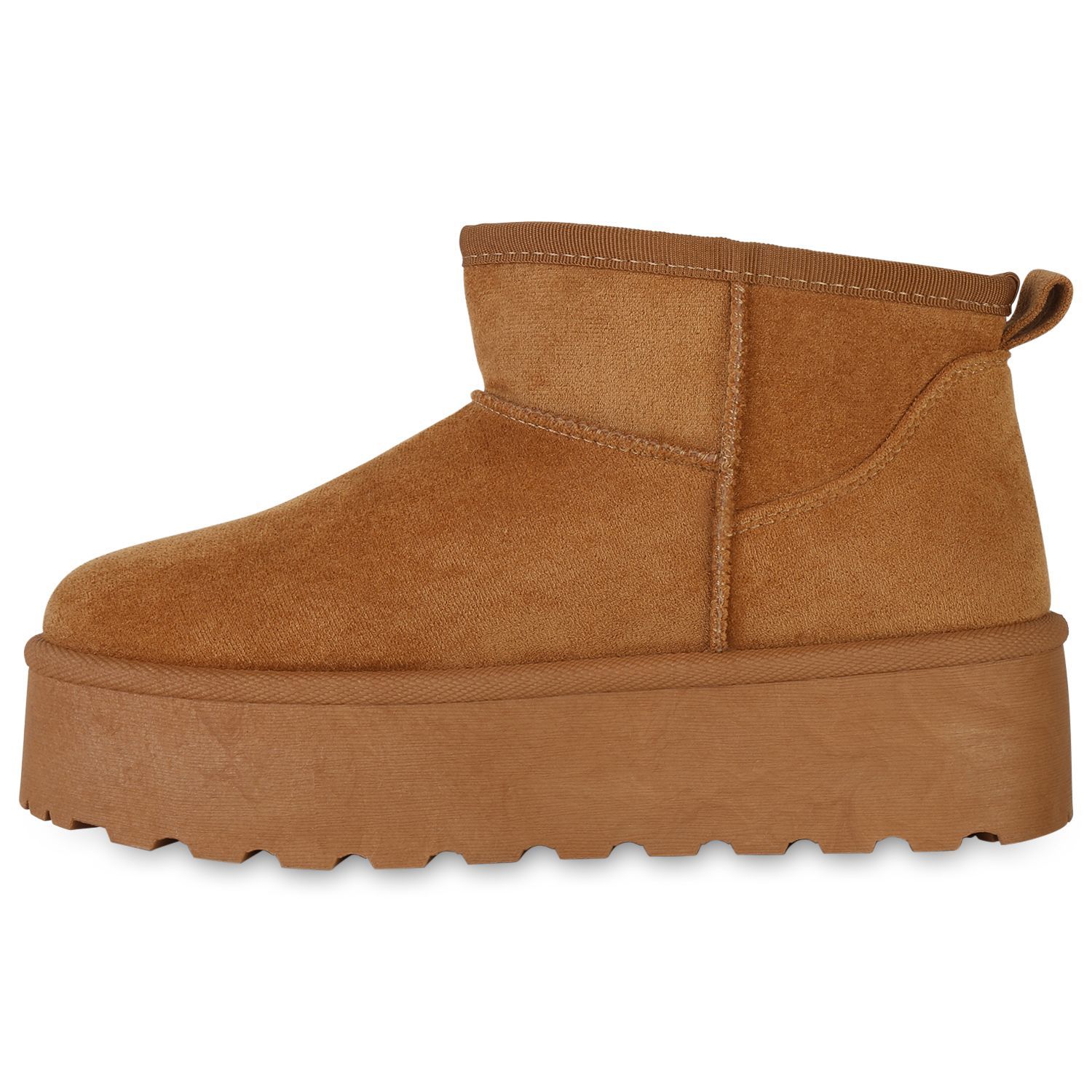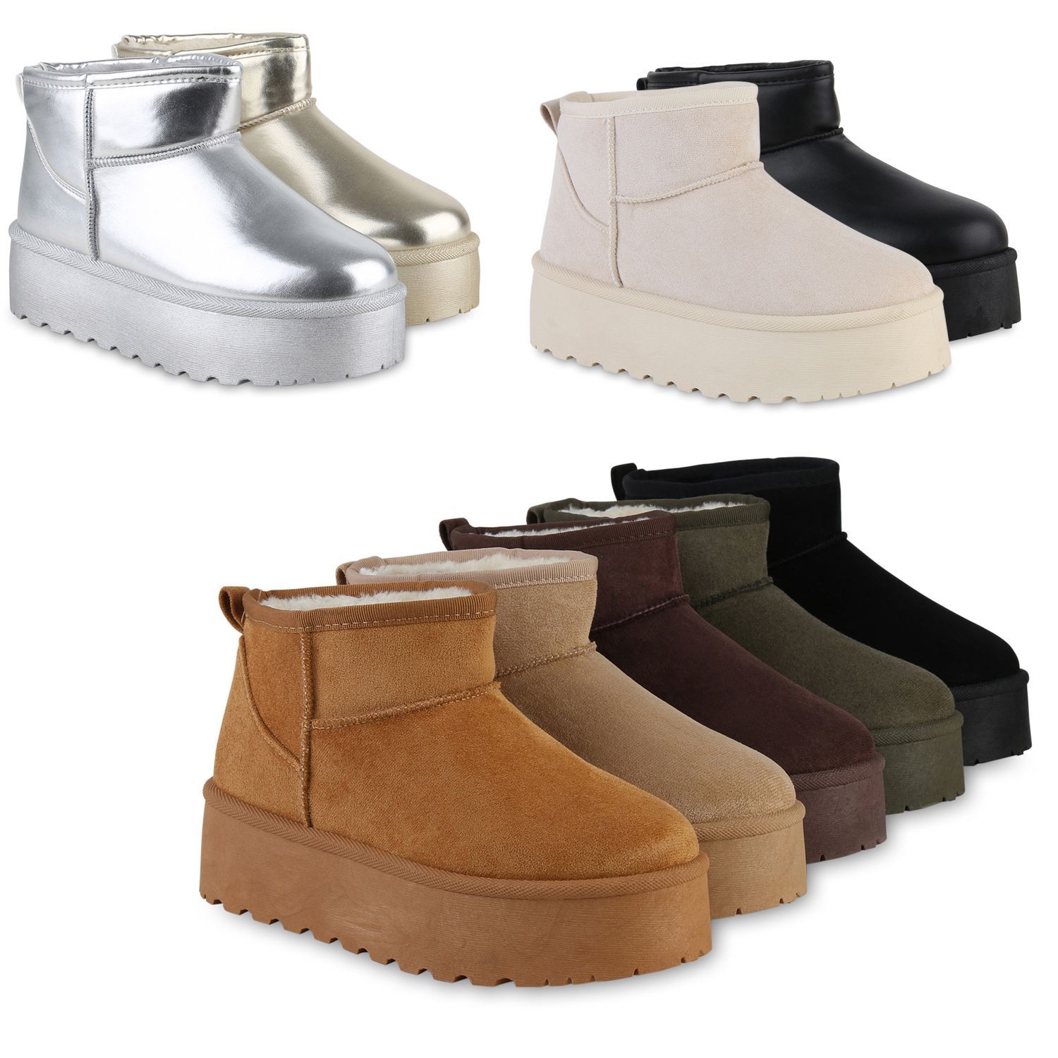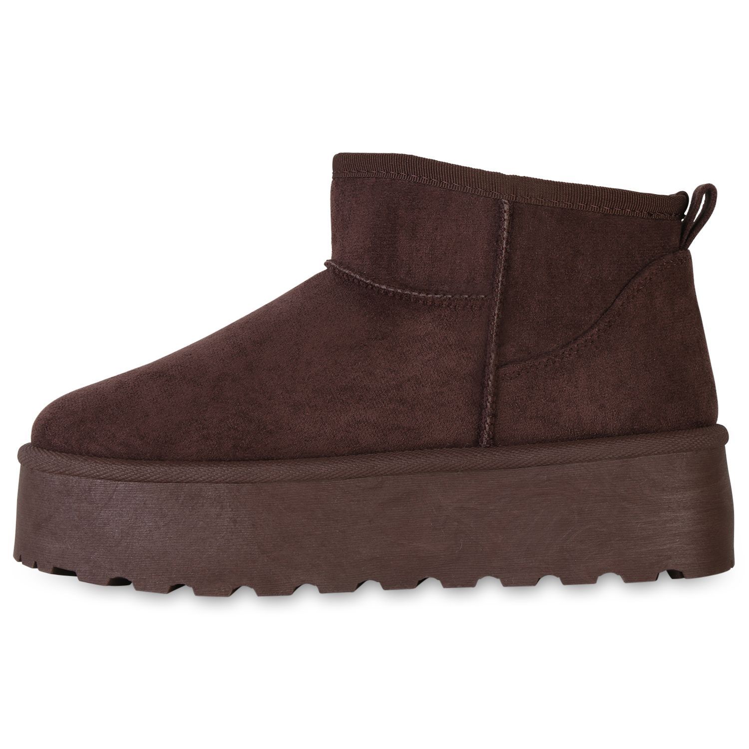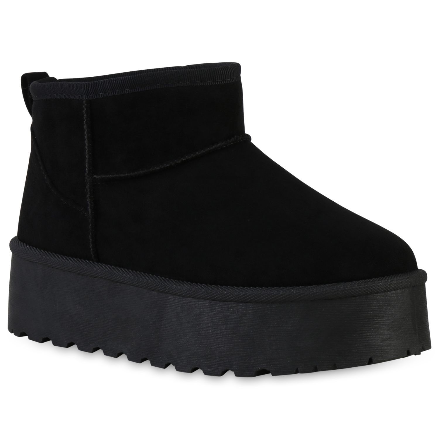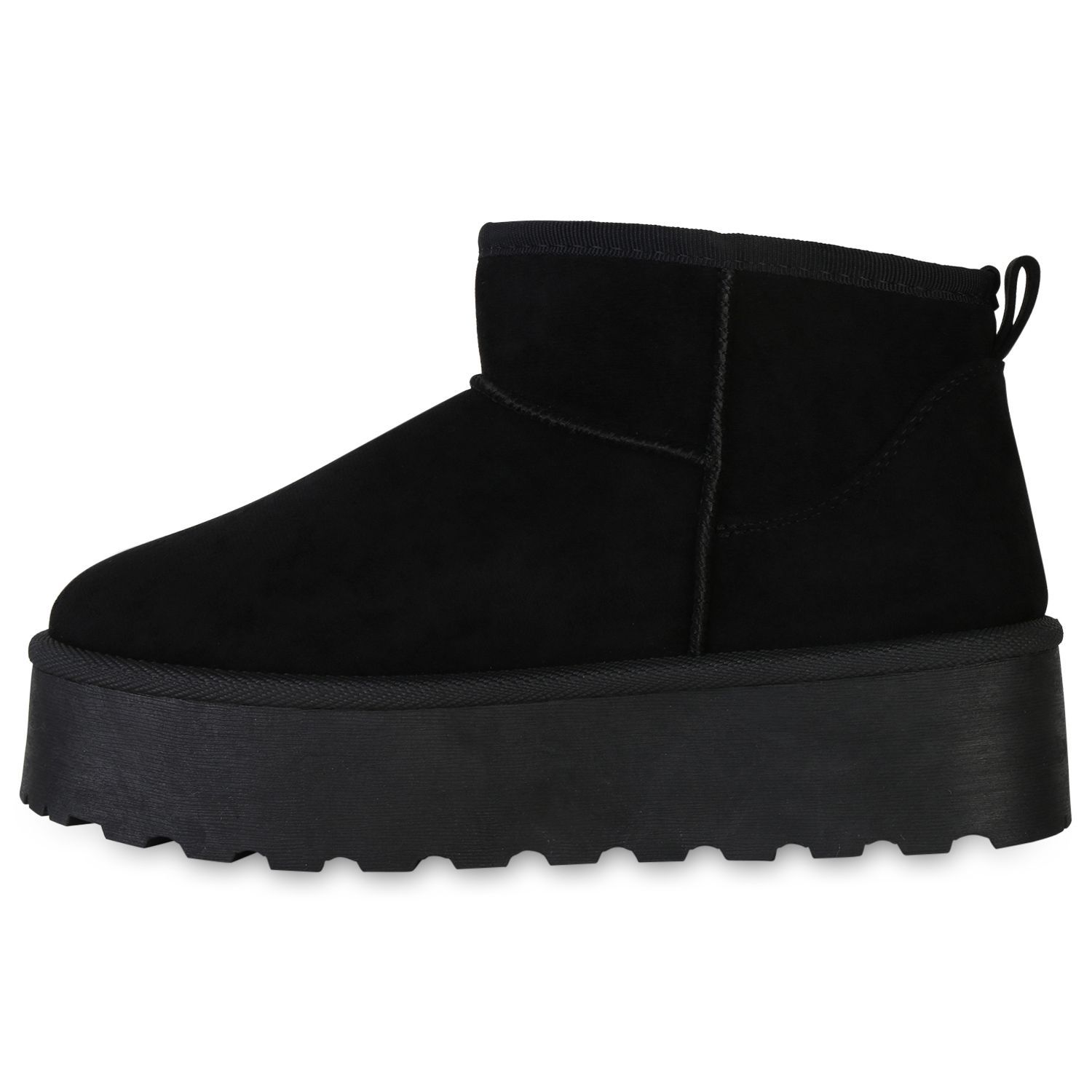 VAN HILL Damen Warm Gefütterte Plateau Boots Profil-Sohle Winter Schuhe 840609