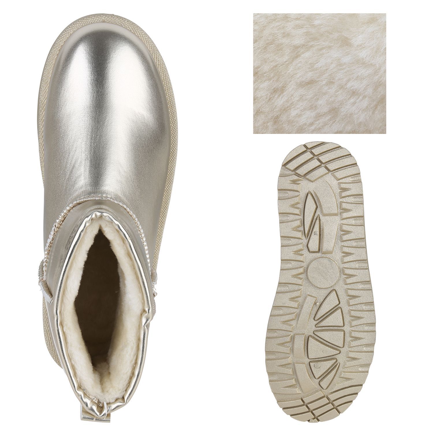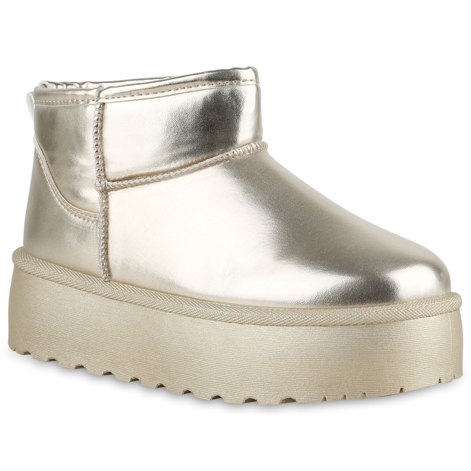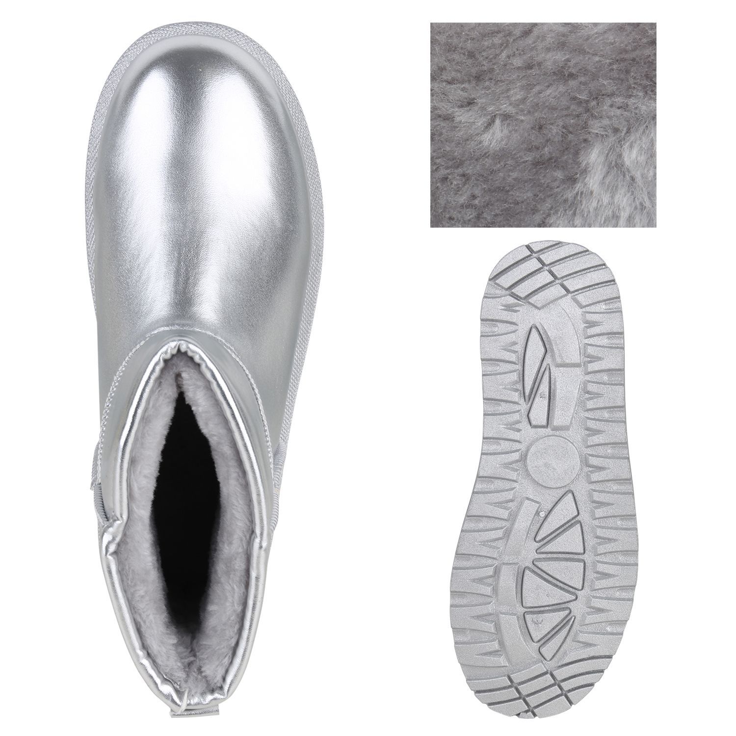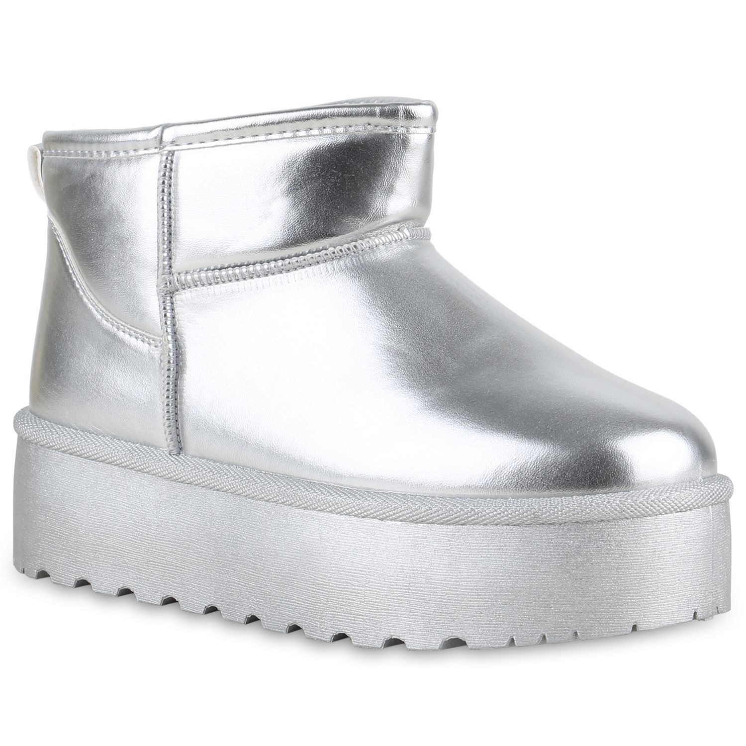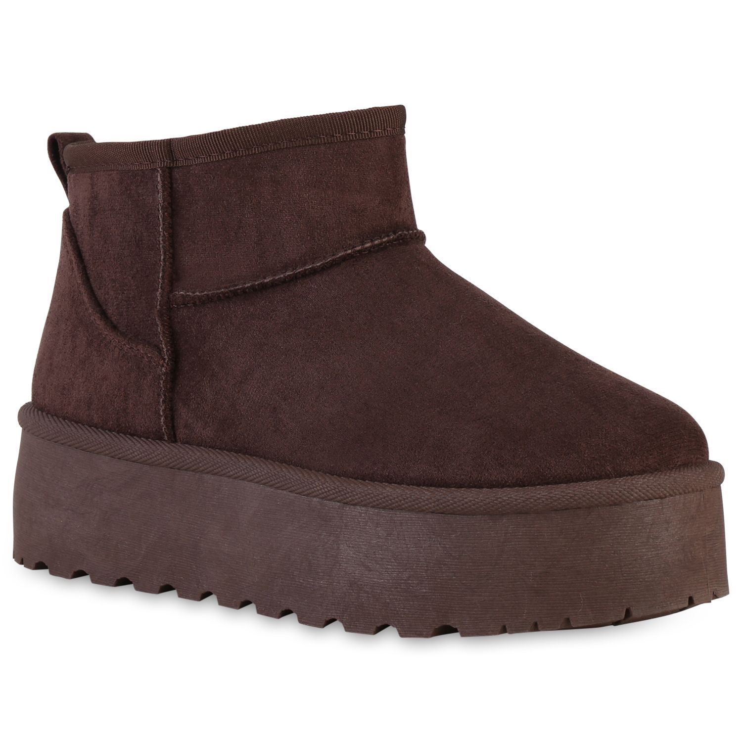 VAN HILL Damen Warm Gefütterte Plateau Boots Profil-Sohle Winter Schuhe 840609