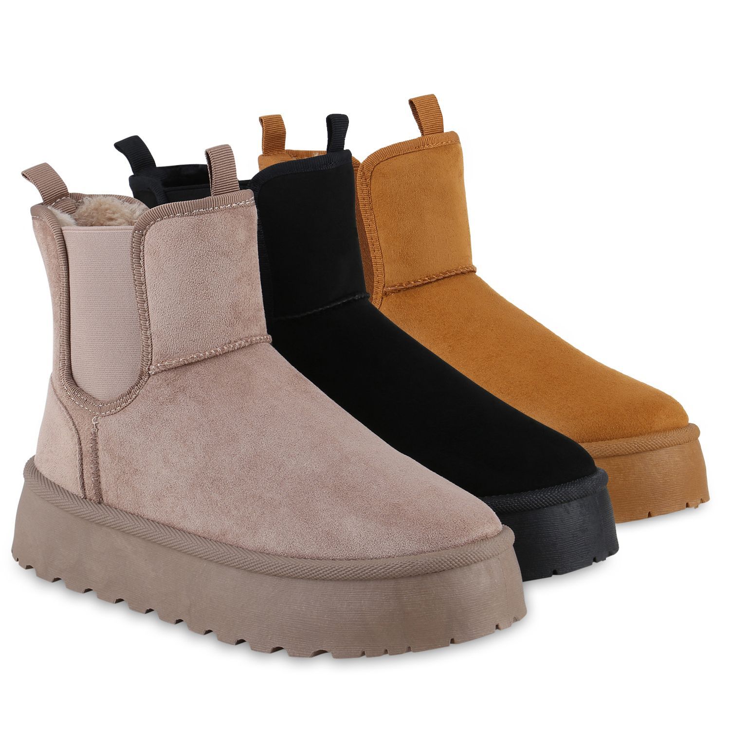 VAN HILL Damen Warm Gefütterte Plateau Boots Stiefeletten Winter Schuhe 840621