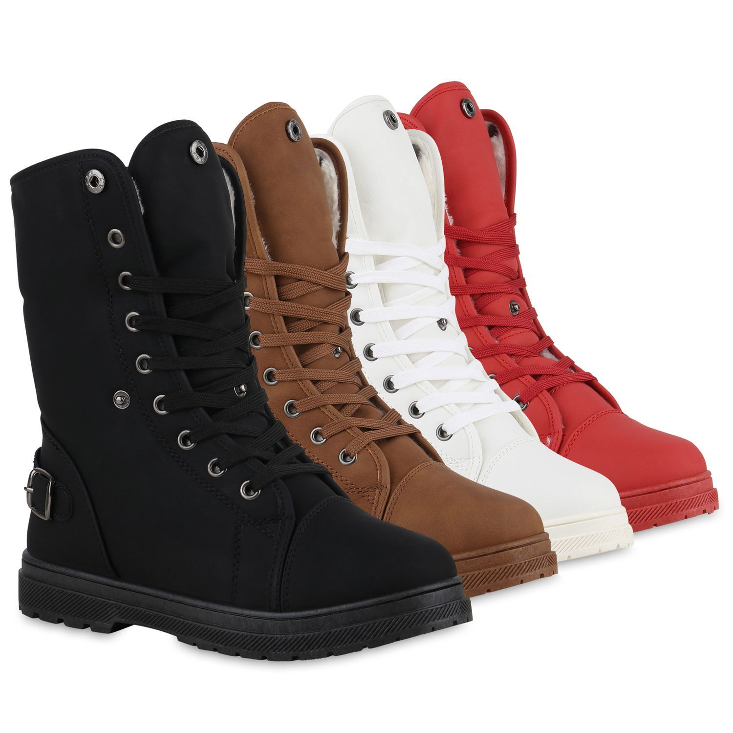 VAN HILL Damen Warm Gefütterte Sneaker High Bequeme Schnallen Schnür-Schuhe 840859