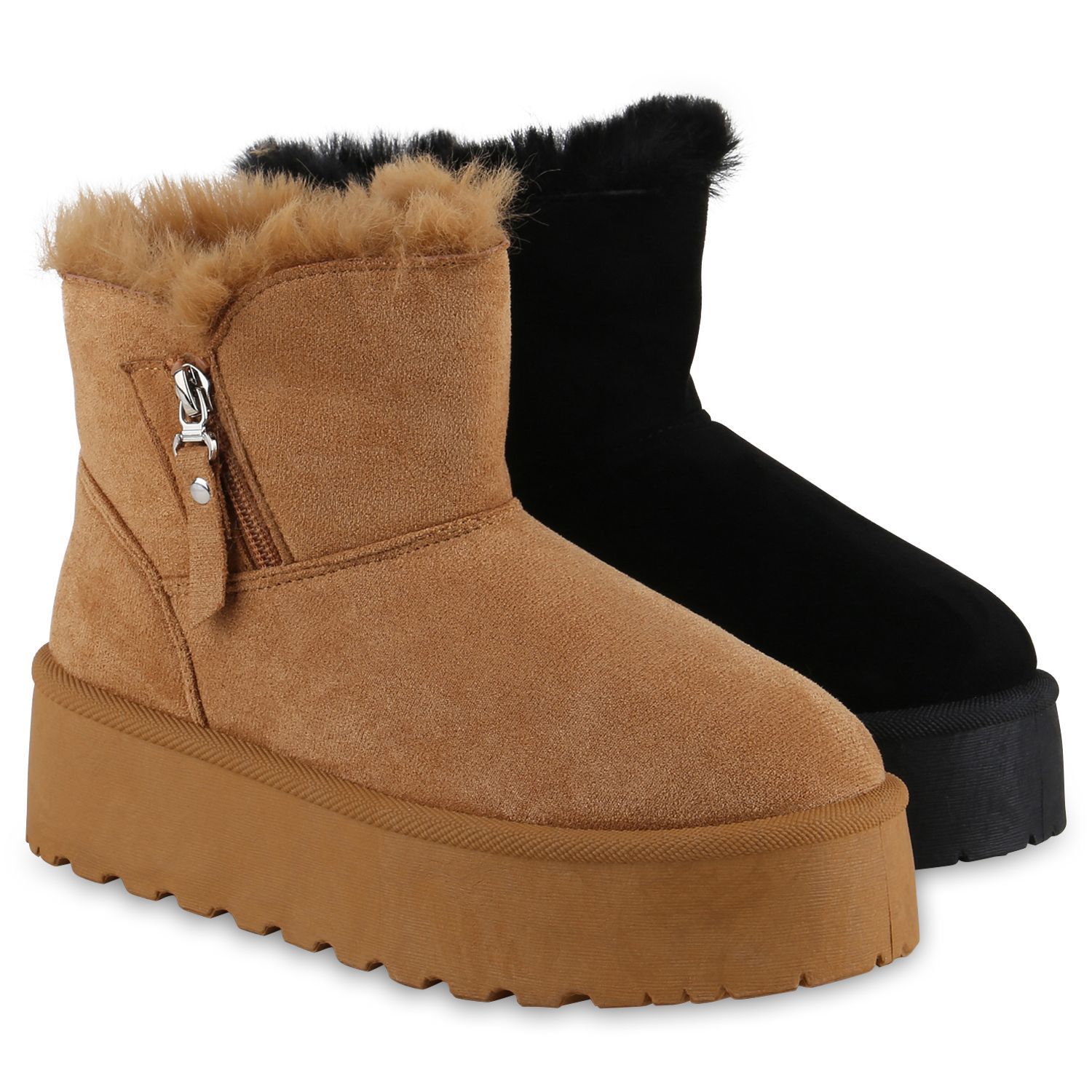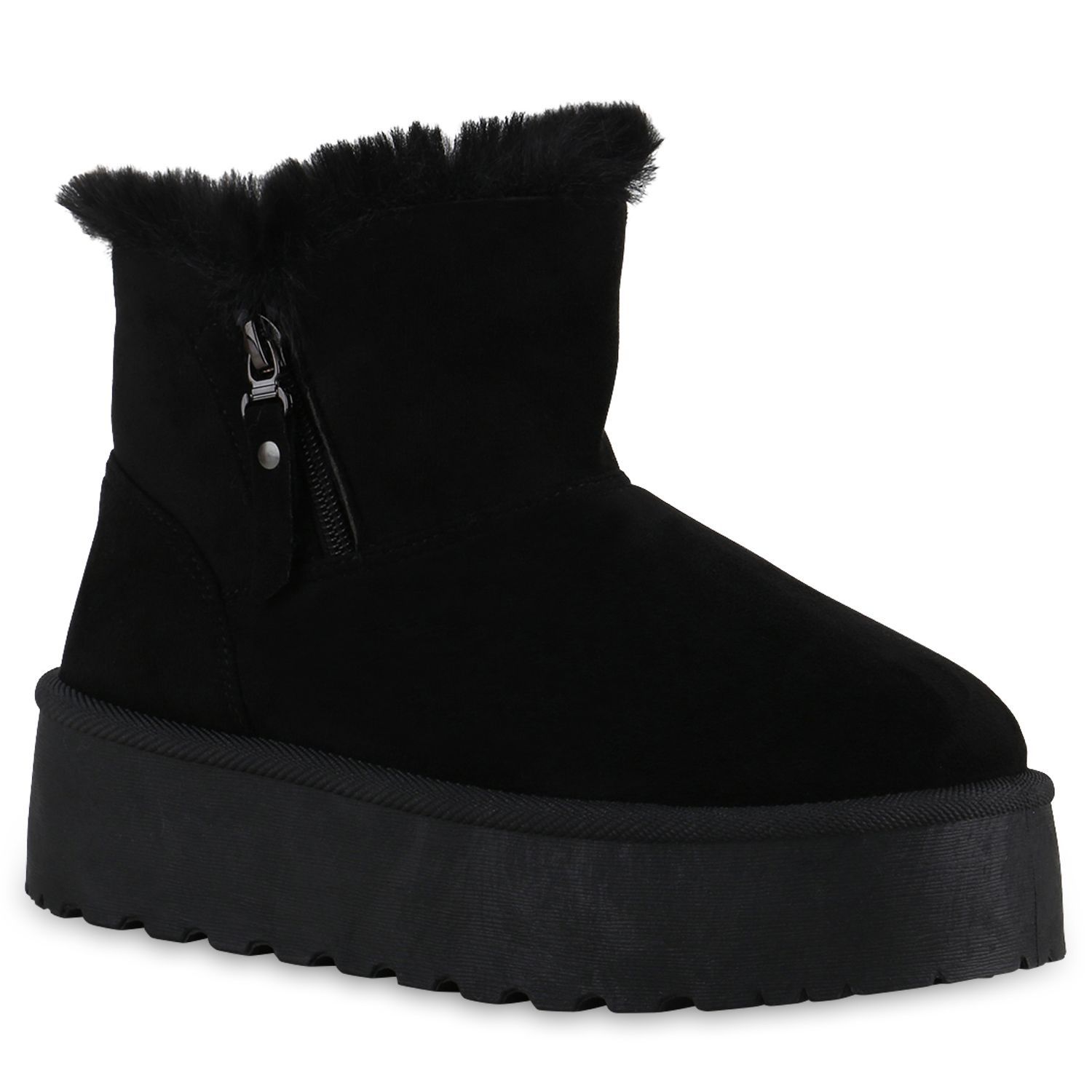 VAN HILL Damen Warm Gefütterte Winter Boots Bequeme Zipper Plateau Schuhe 840870