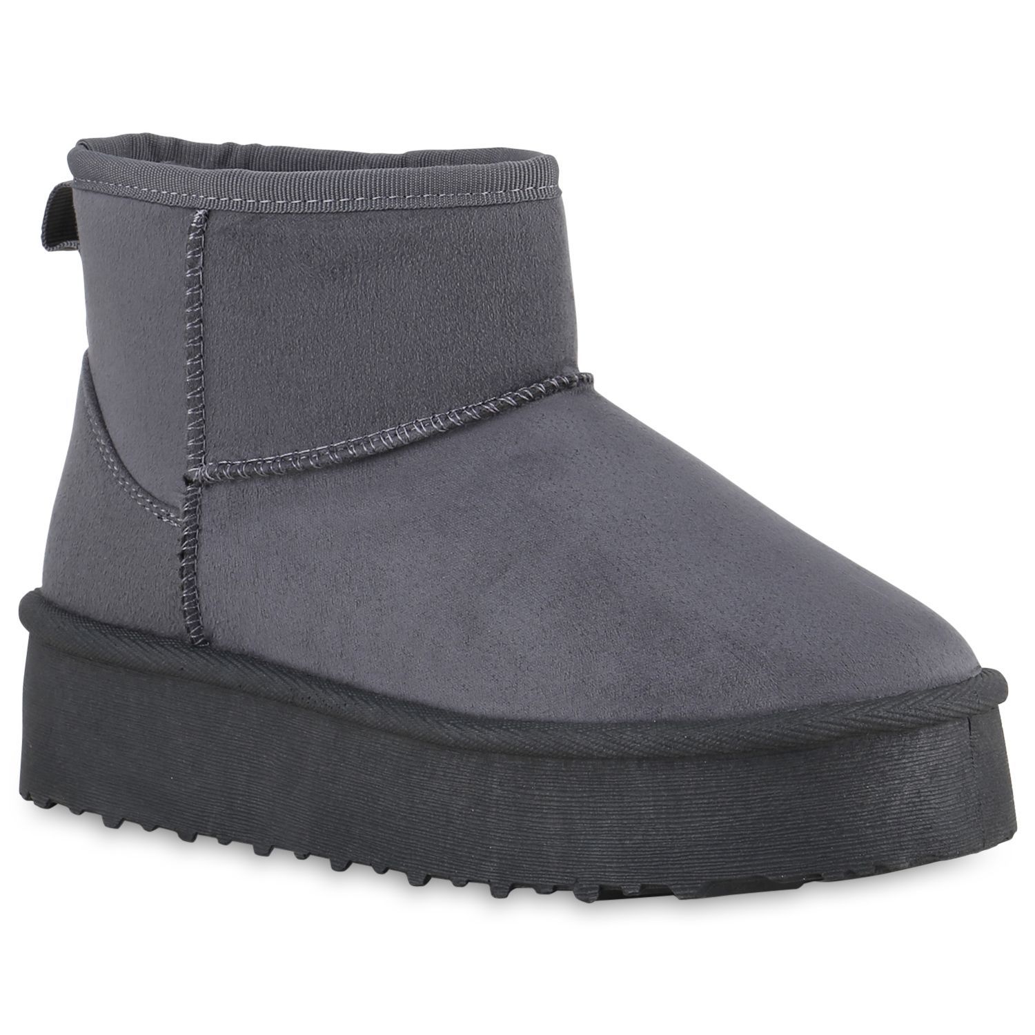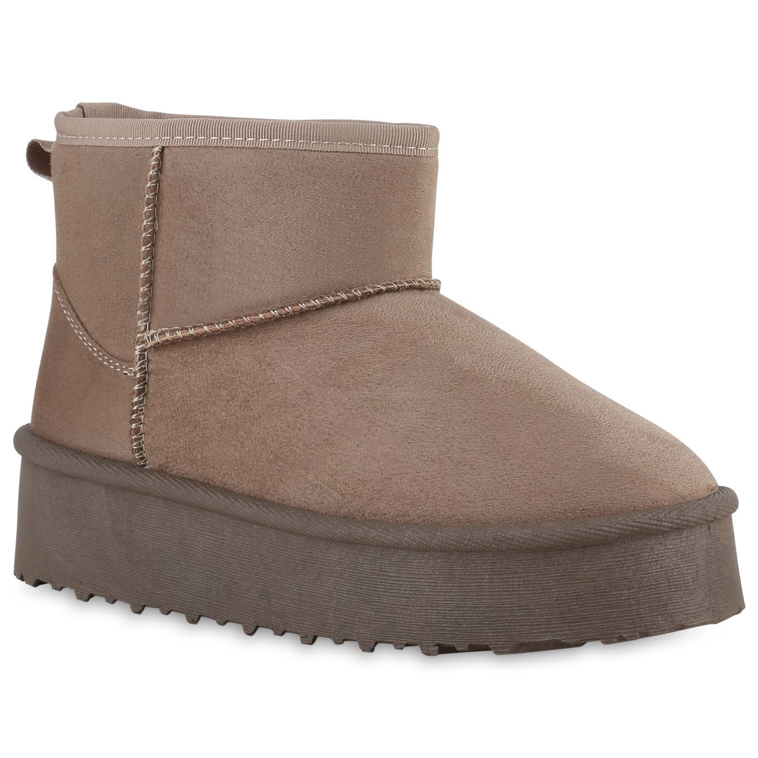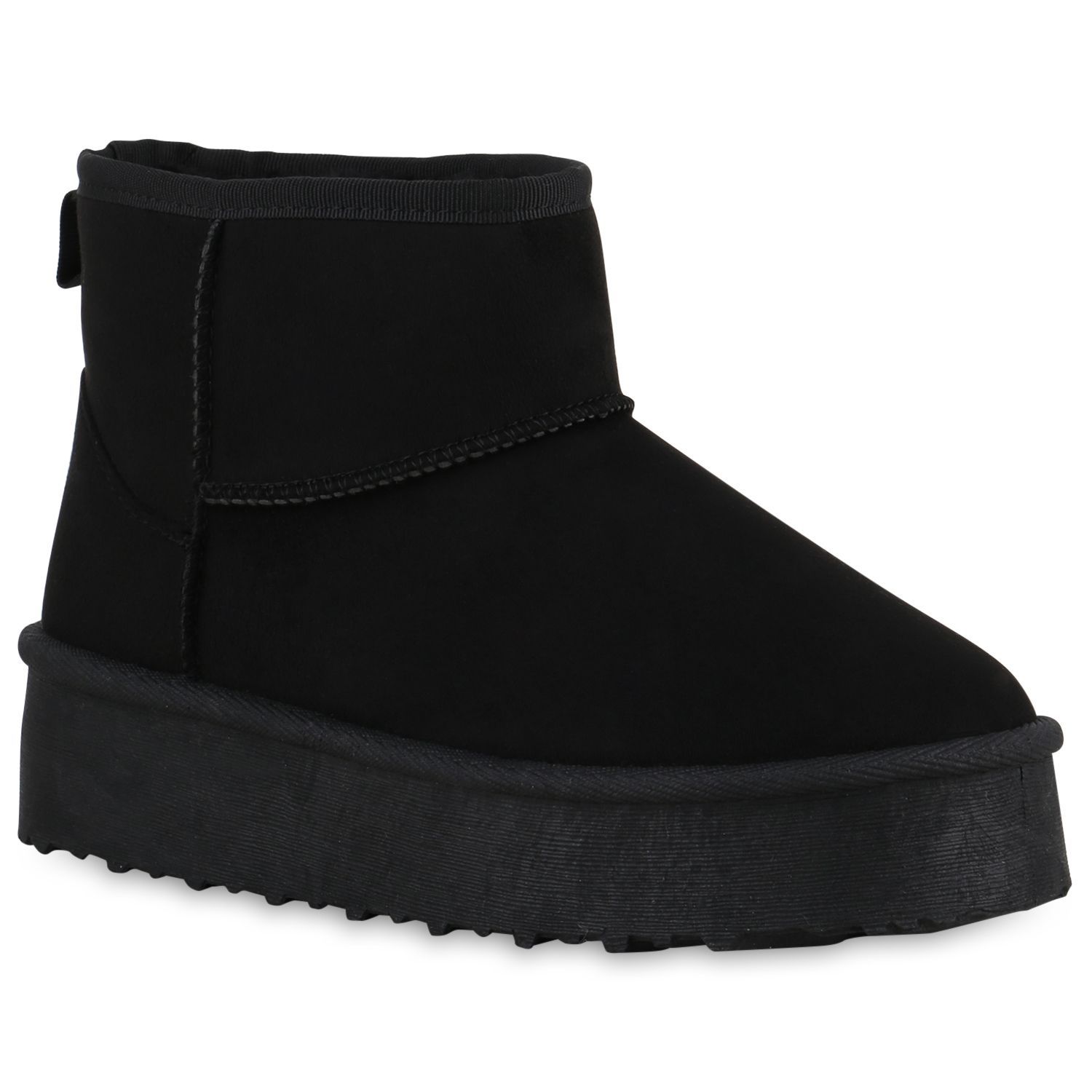 VAN HILL Damen Warm Gefütterte Winter Boots Profil-Sohle Plateau-Schuhe 840765