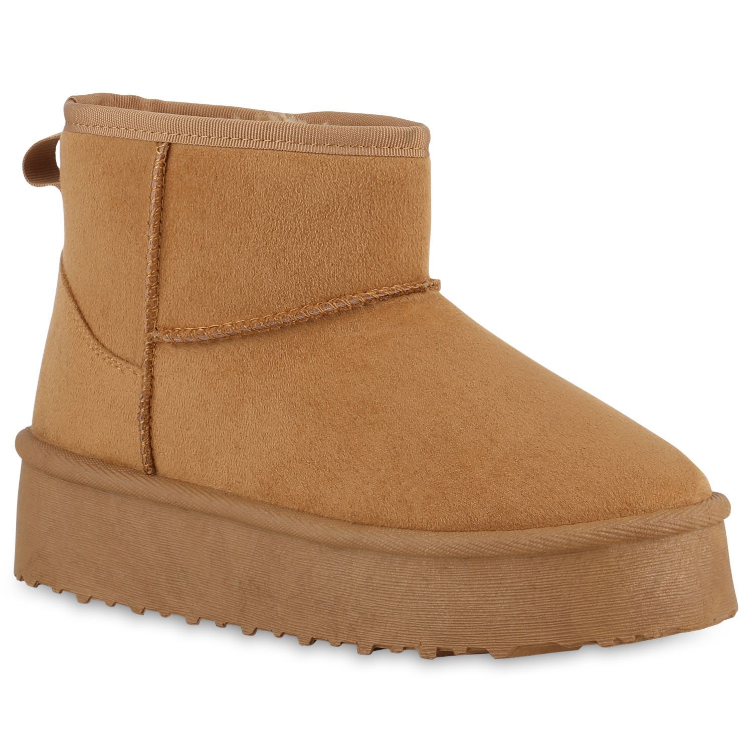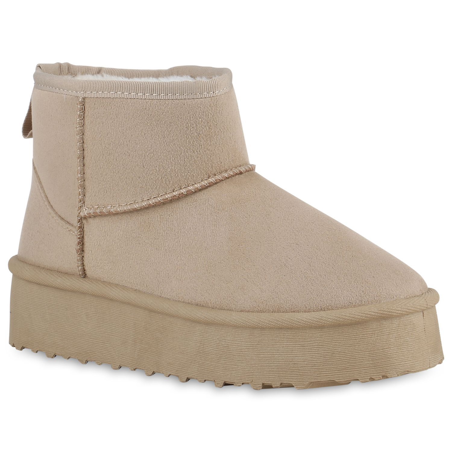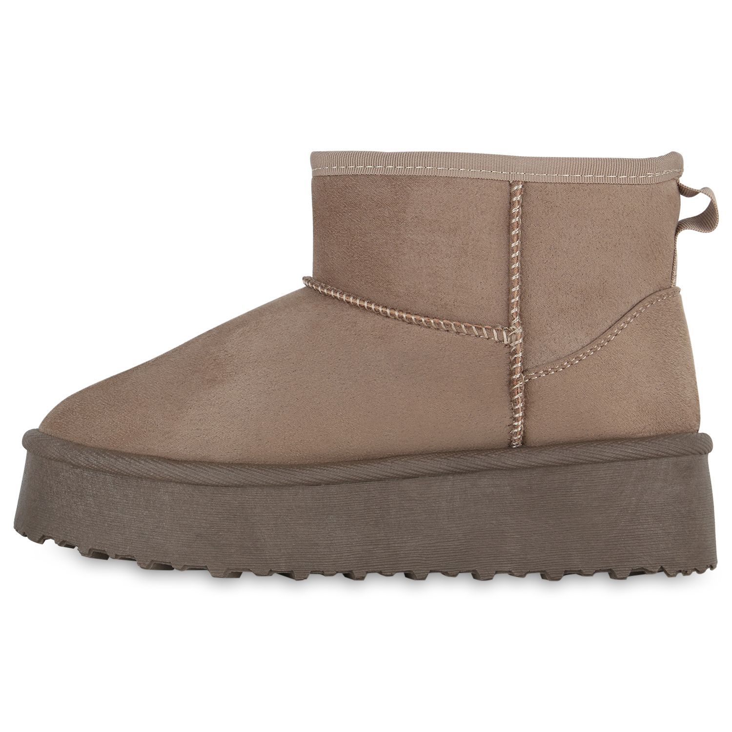 VAN HILL Damen Warm Gefütterte Winter Boots Profil-Sohle Plateau-Schuhe 840765