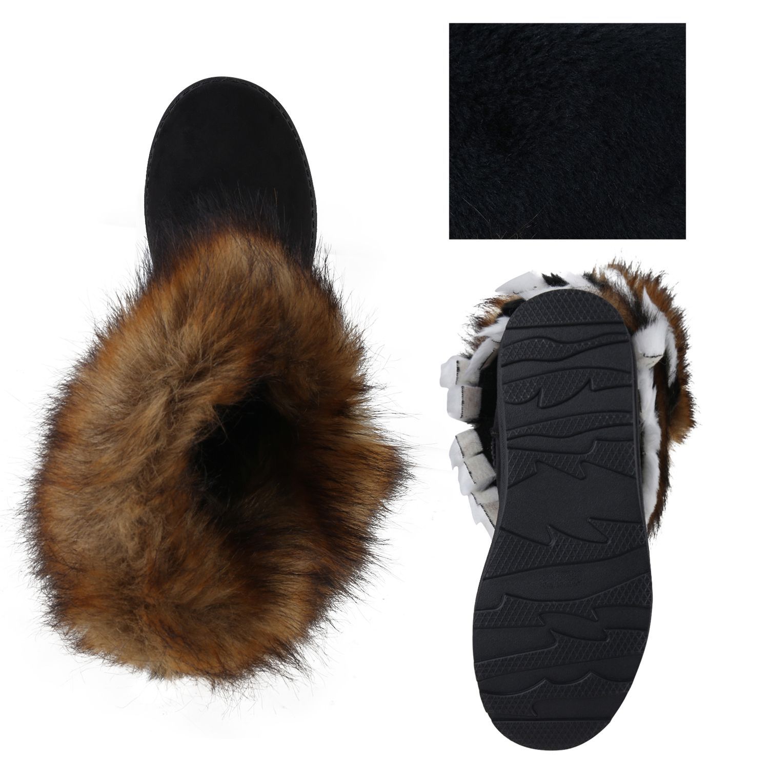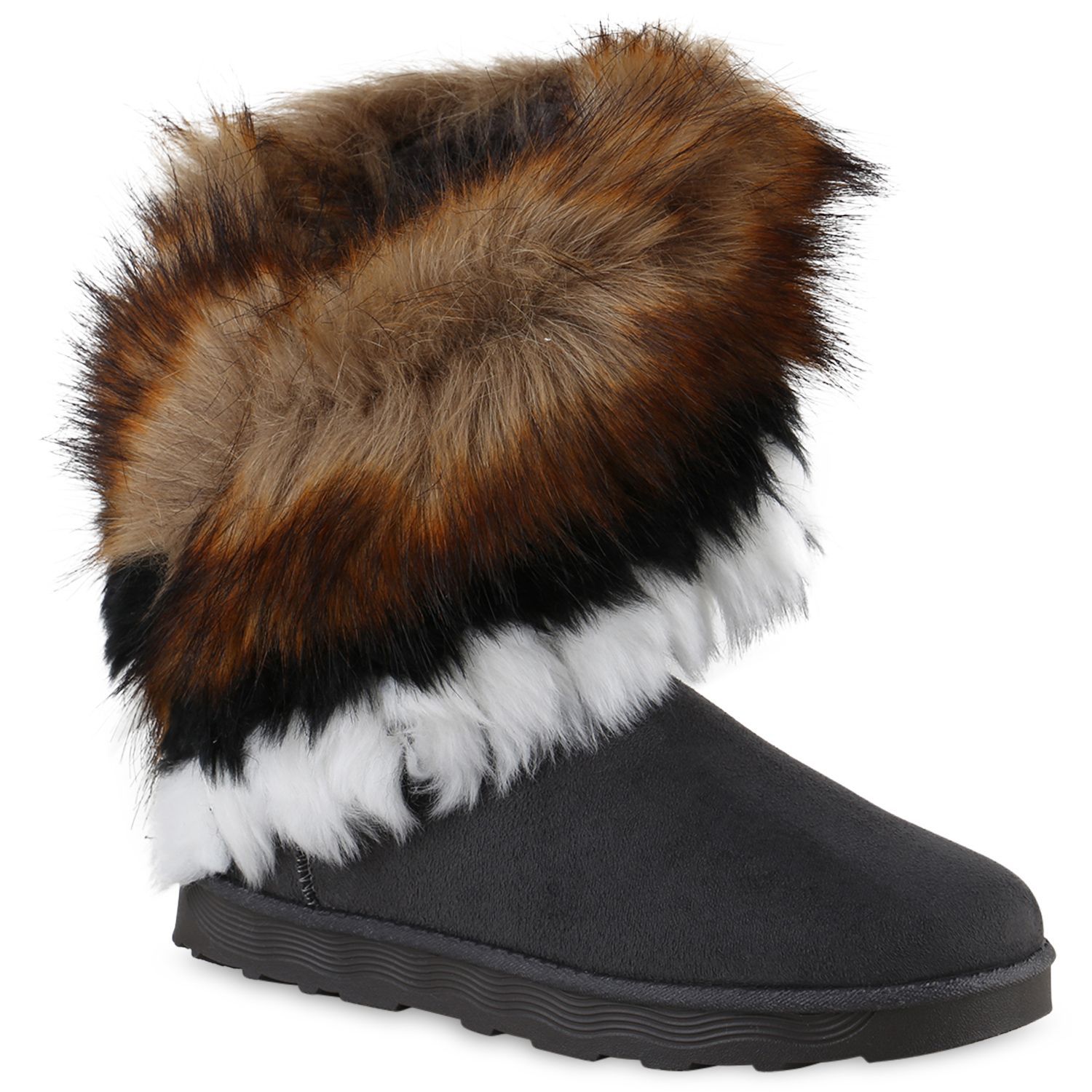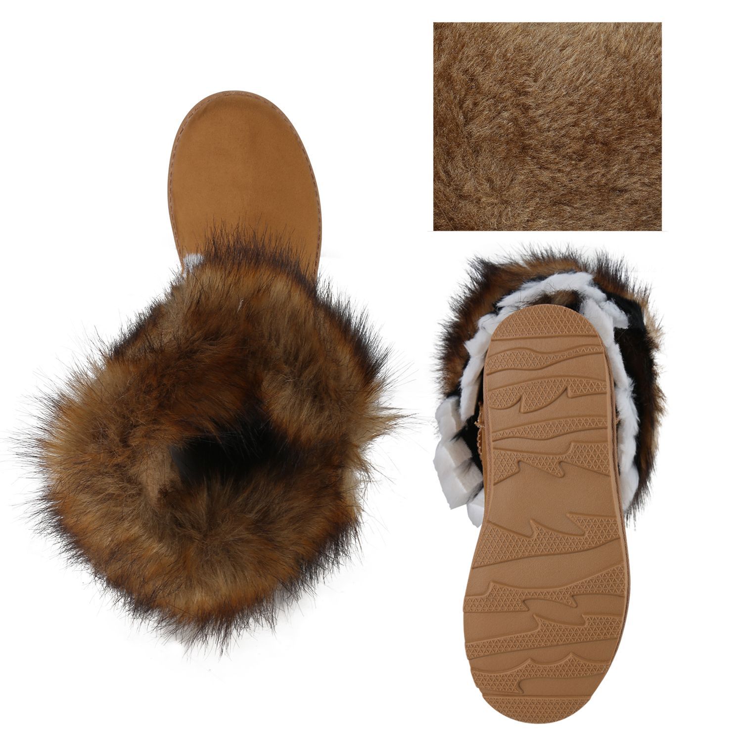VAN HILL Damen Warm Gefütterte Winter Boots Stiefeletten Kunstfell Schuhe 839605