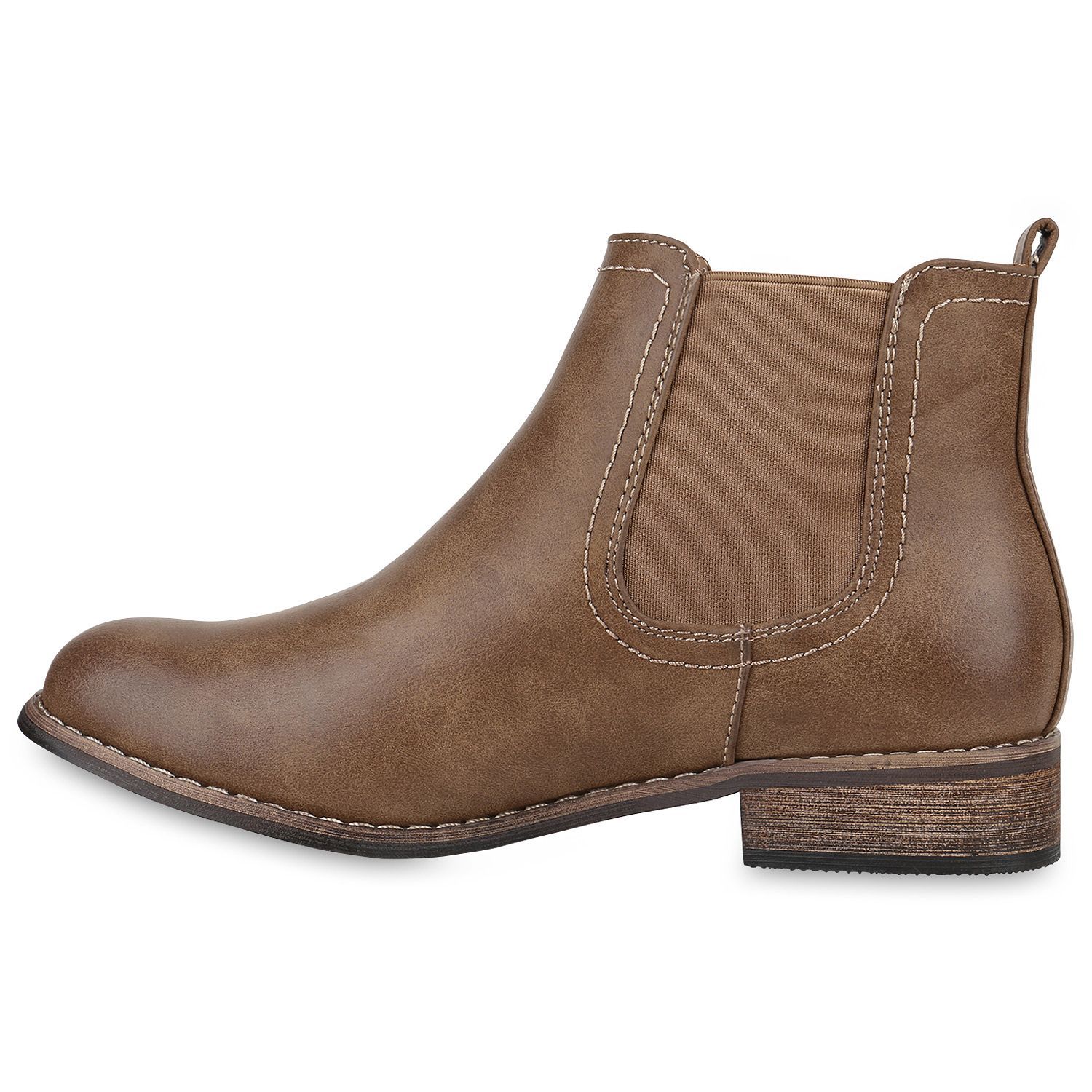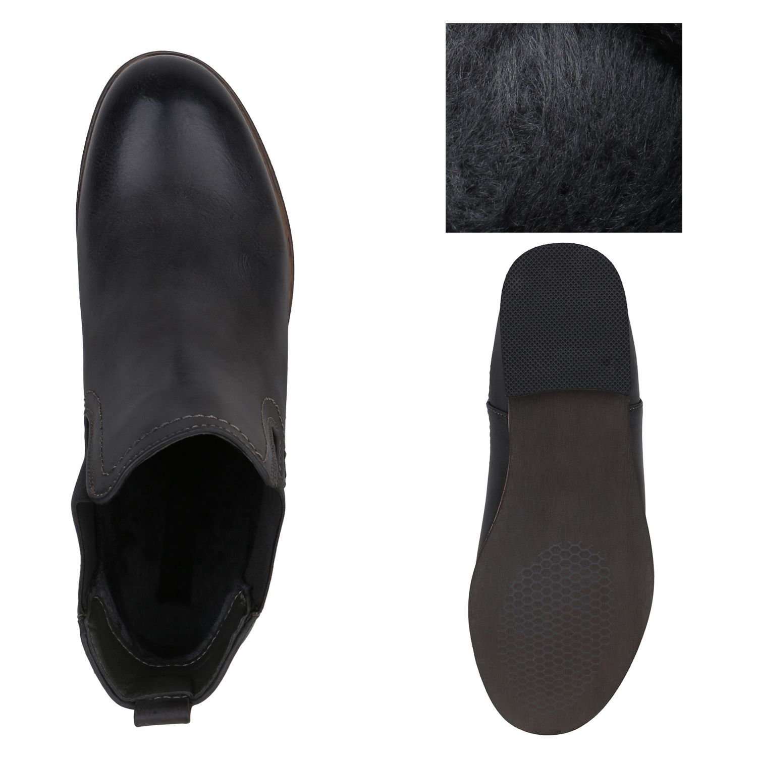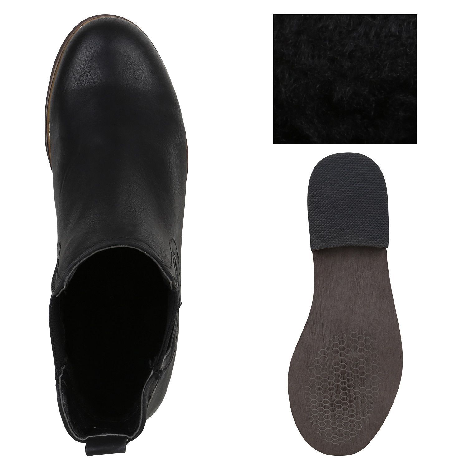 VAN HILL Gefütterte Damen Chelsea Boots Leder-Optik Stiefeletten 811822