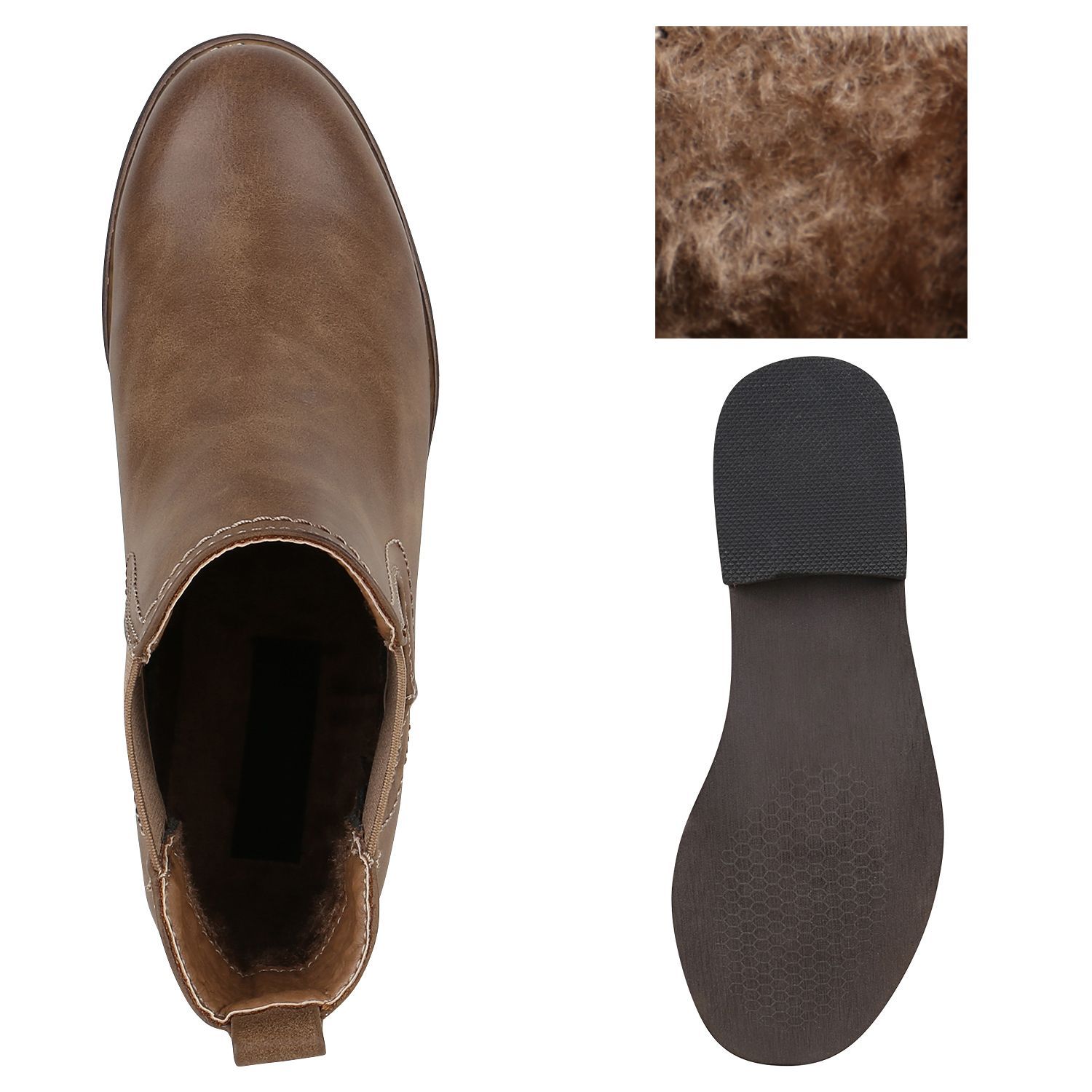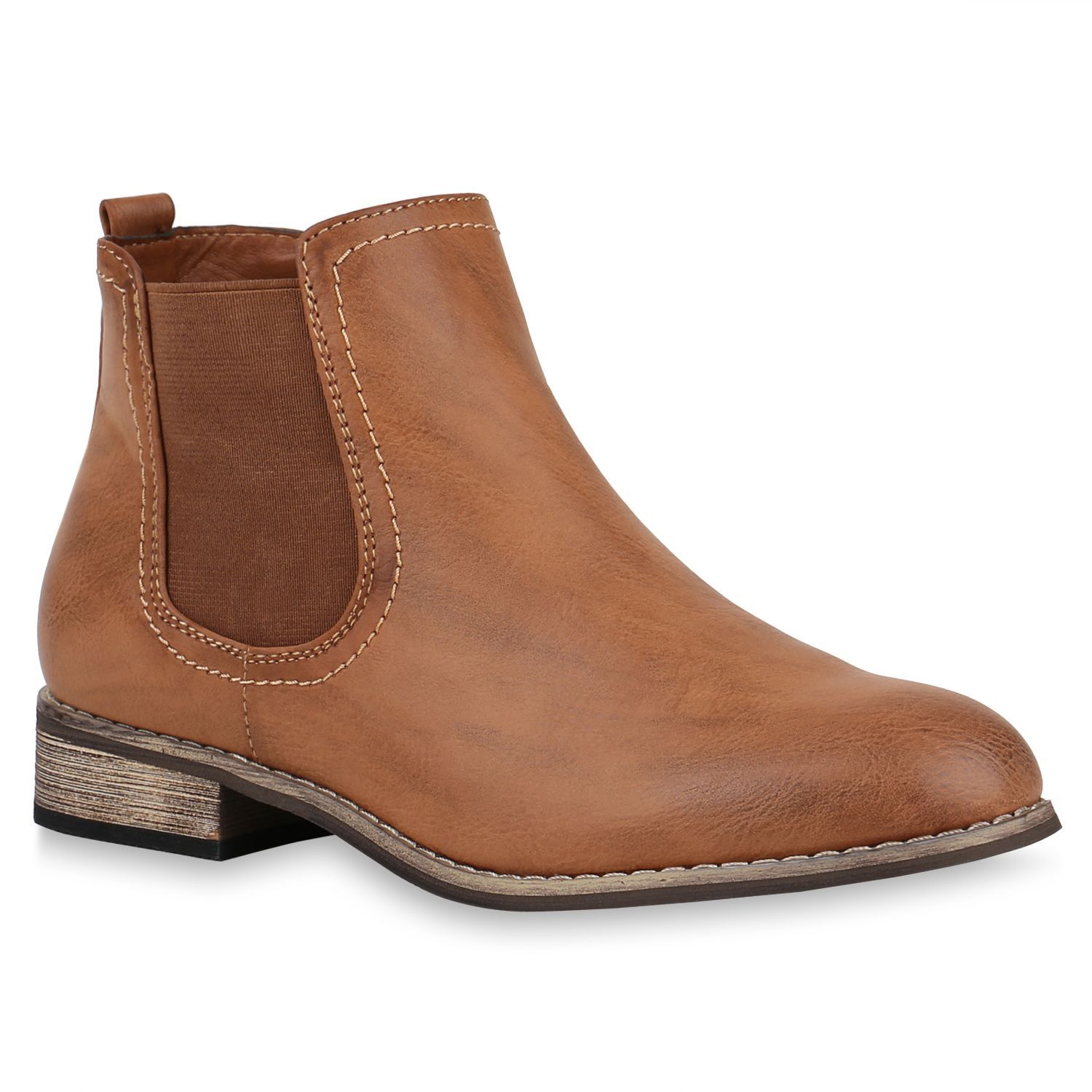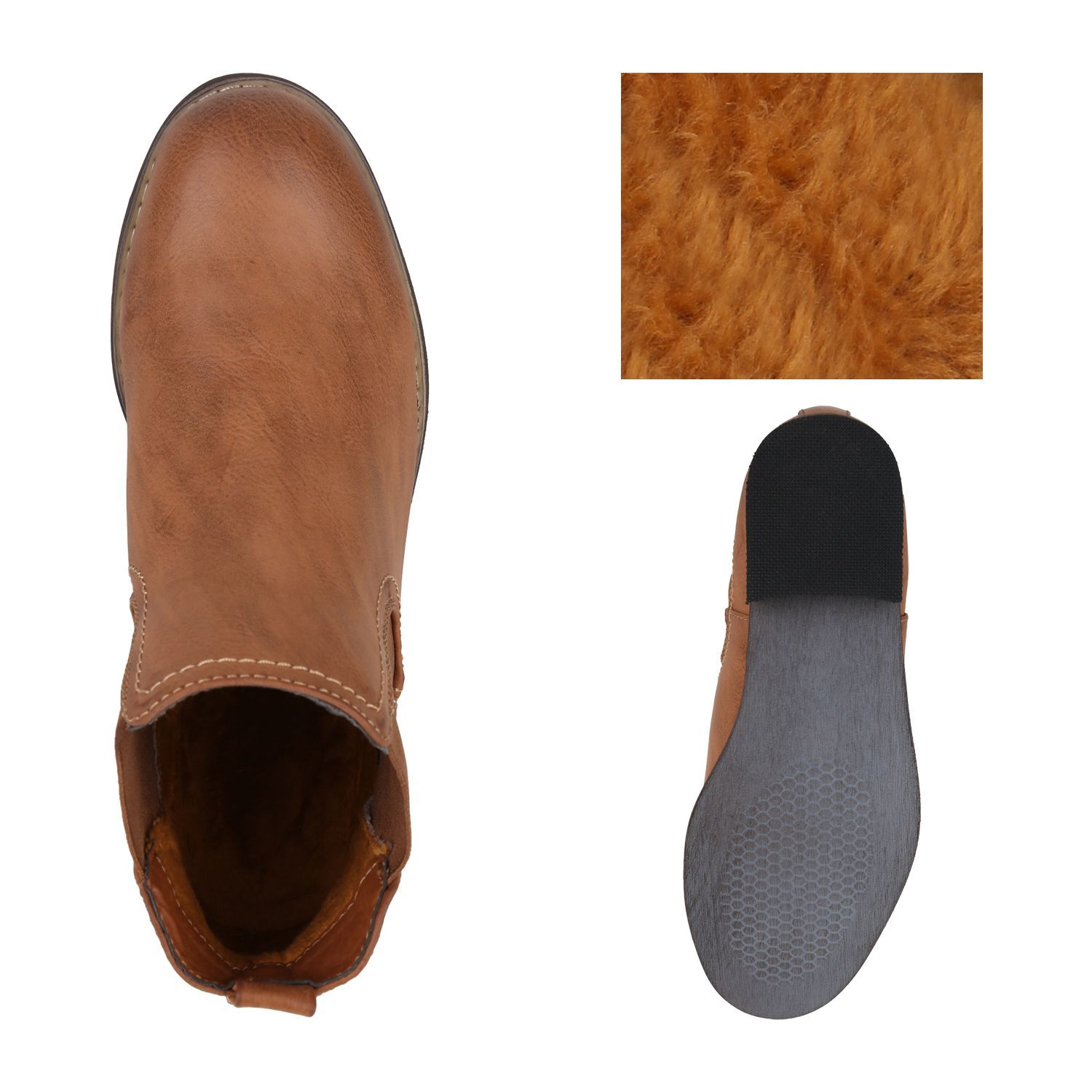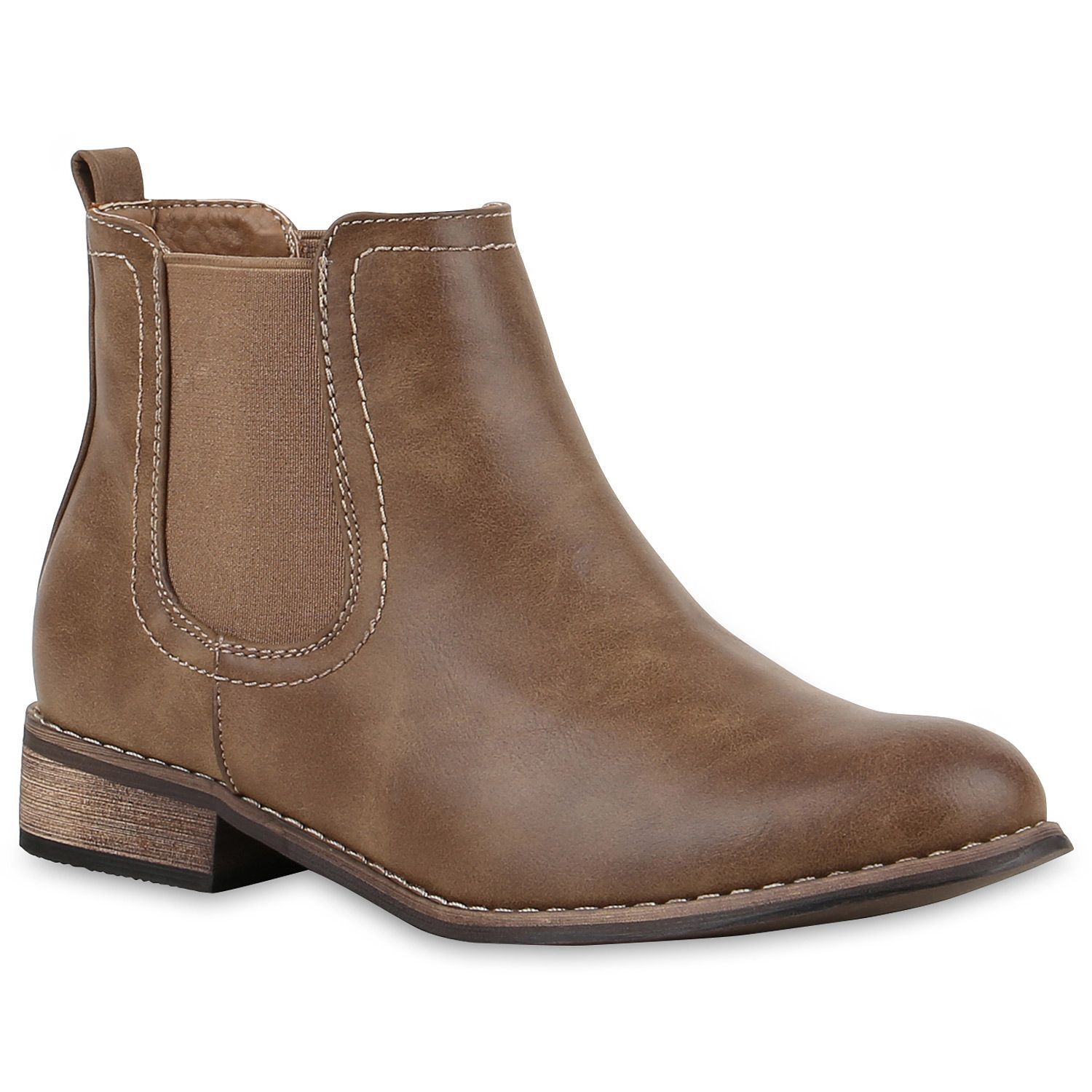 VAN HILL Gefütterte Damen Chelsea Boots Leder-Optik Stiefeletten 811822