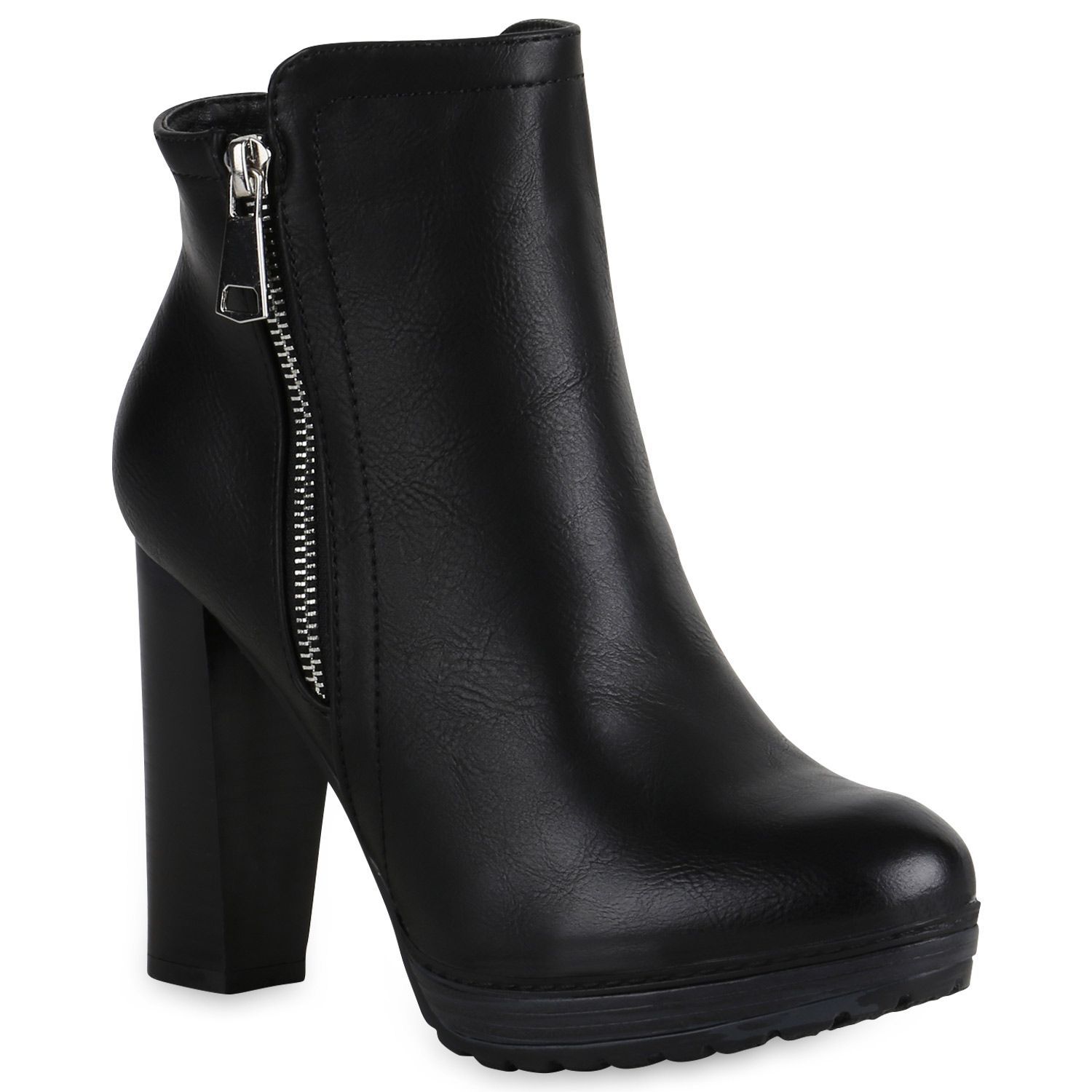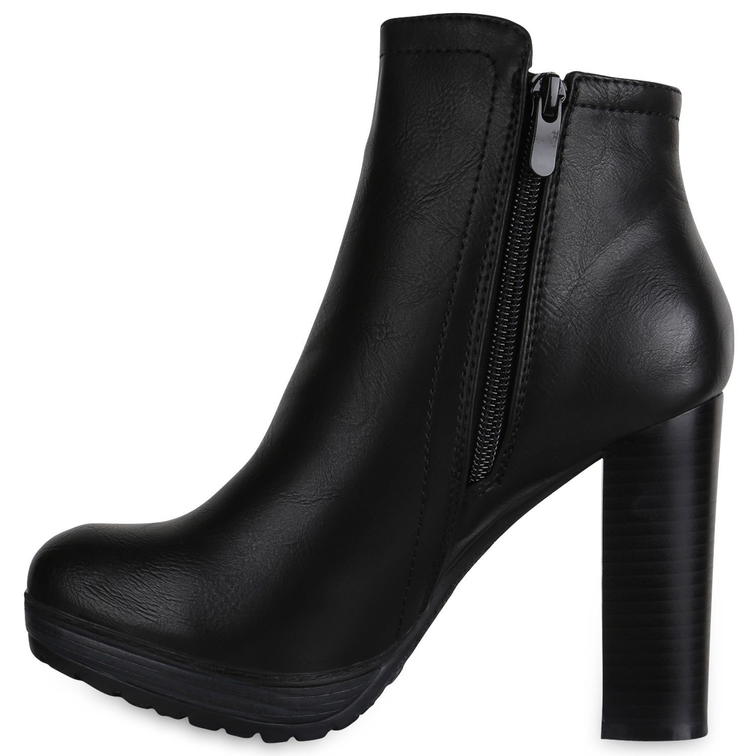 VAN HILL Gefütterte Damen Plateau Boots Leder-Optik High Heels Stiefeletten 819927