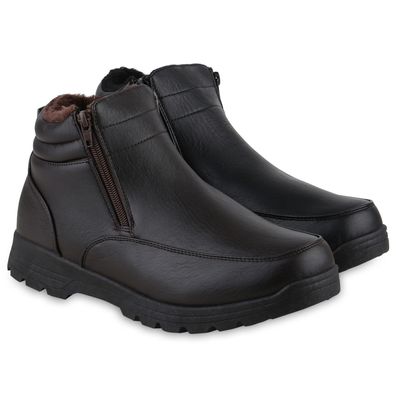 • VAN HILL Herren Warm Gefütterte Worker Boots Bequeme Profil-Sohle Schuhe 840855