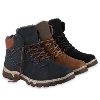 • VAN HILL Herren Warm Gefütterte Outdoor Boots Bequeme Profil-Sohle Schuhe 840854