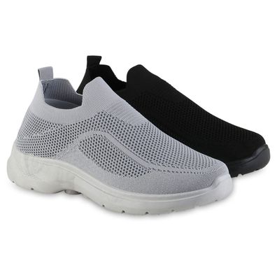 • VAN HILL Herren Slip Ons Sportschuhe Sportliche Strick Profil-Sohle Schuhee 841706