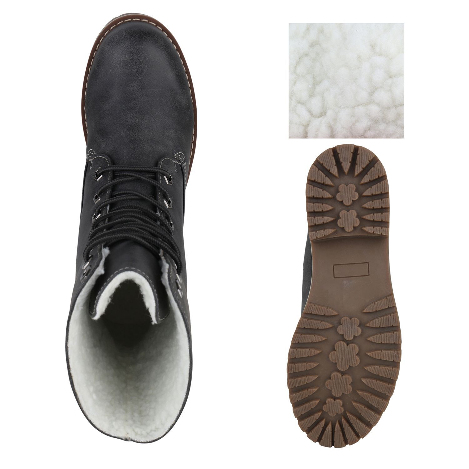 VAN HILL Schnürstiefeletten Damen Warm Gefütterte Stiefeletten Stiefel 813135