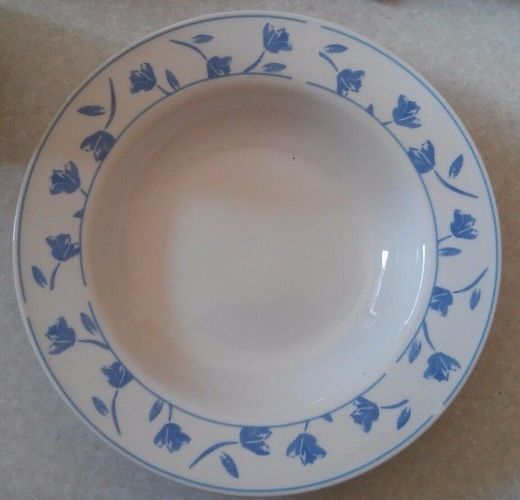 van Well Wellco Design Suppenteller hellblaue Blüten hellblaue Blumen Ø 22 cm Höhe 4 cm Beachten Sie bitte auch meine Auktion mit gleichem(n) Speiseteller(n) Zustand: Siehe Original-Foto – Die Versandkosten trägt der Käufer - Das Risiko des Verlustes bzw. der Beschädigung gehen bei unve