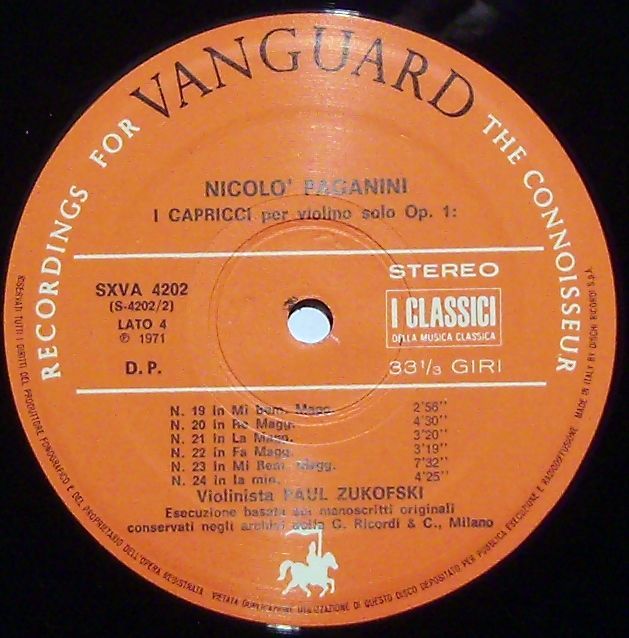 Vanguard SXVA 4201/2 - Niccolò Paganini, Paul Zukofsky - The 24 Caprices For So