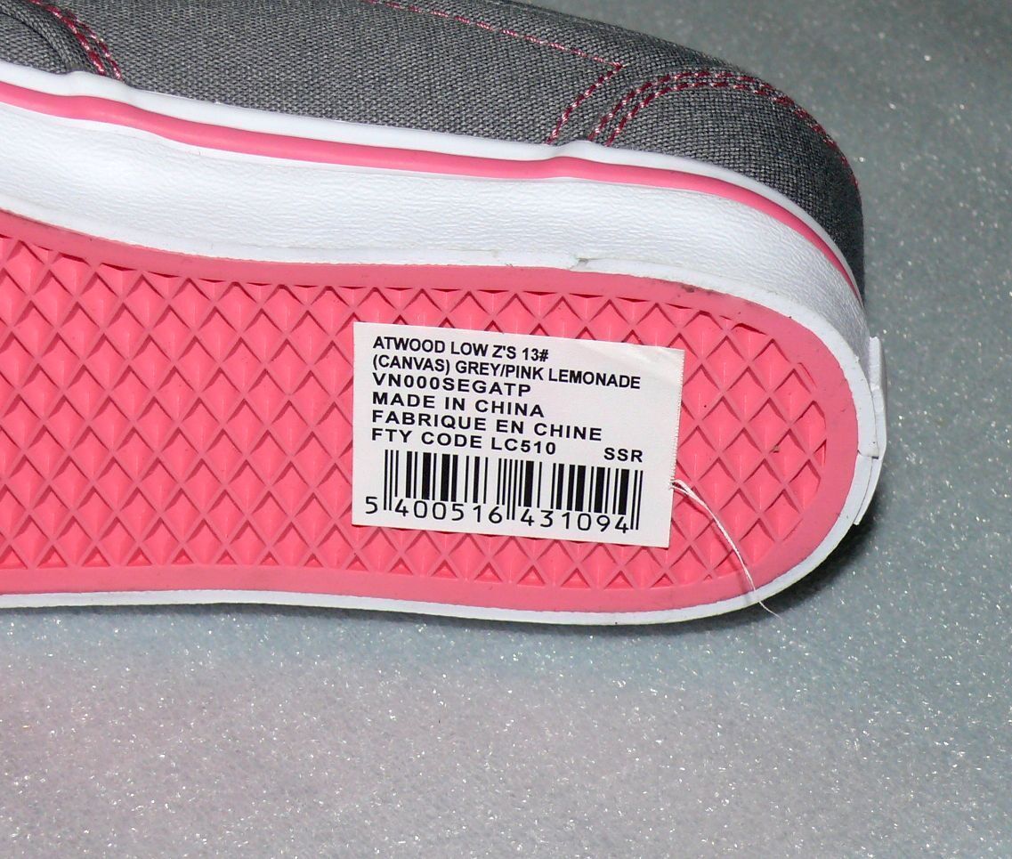 VANS Vans Atwood LOW Z'S Canvas Kinder Schuhe Freizeit Sneaker 31 UK13 Grau Pink Lemo
