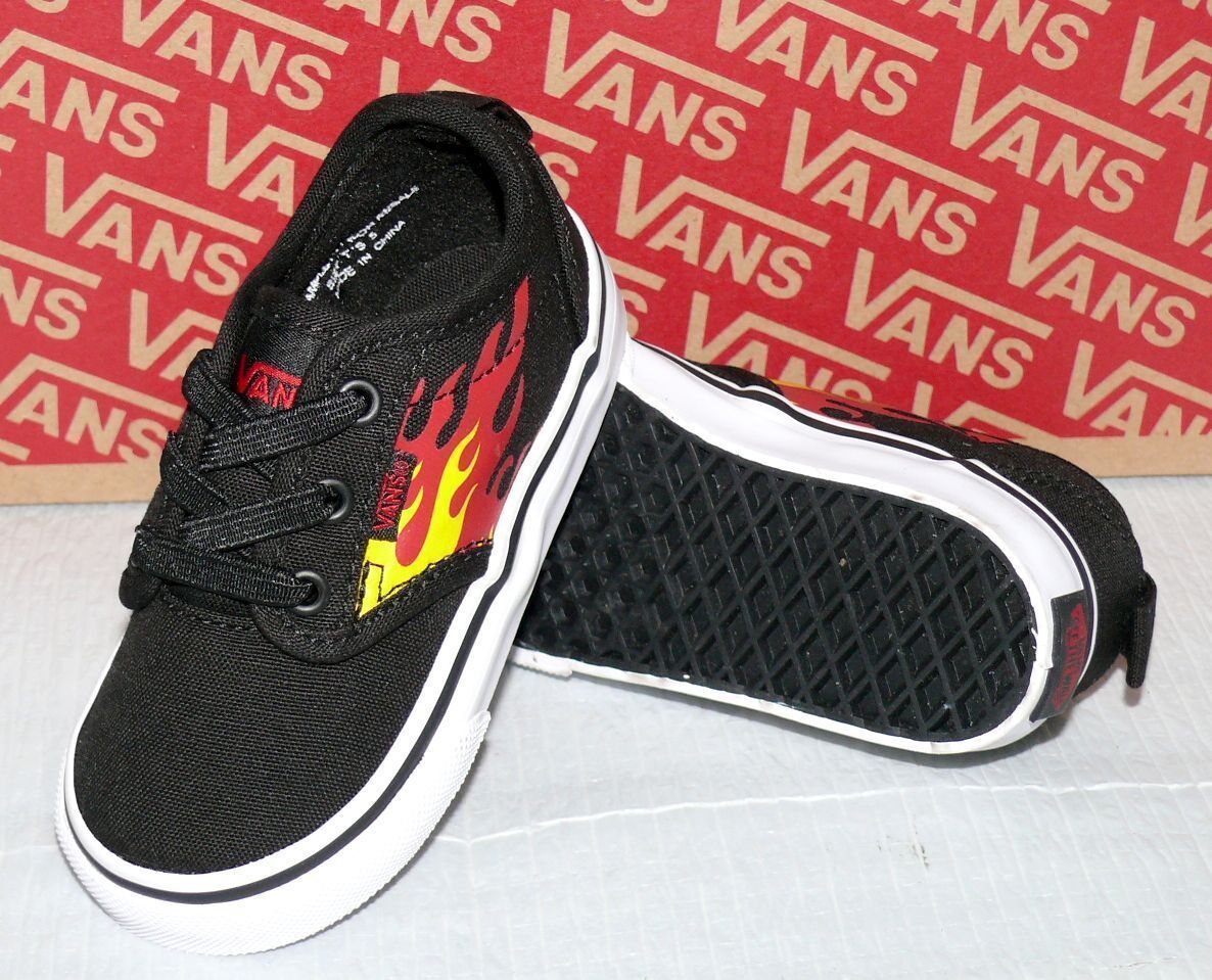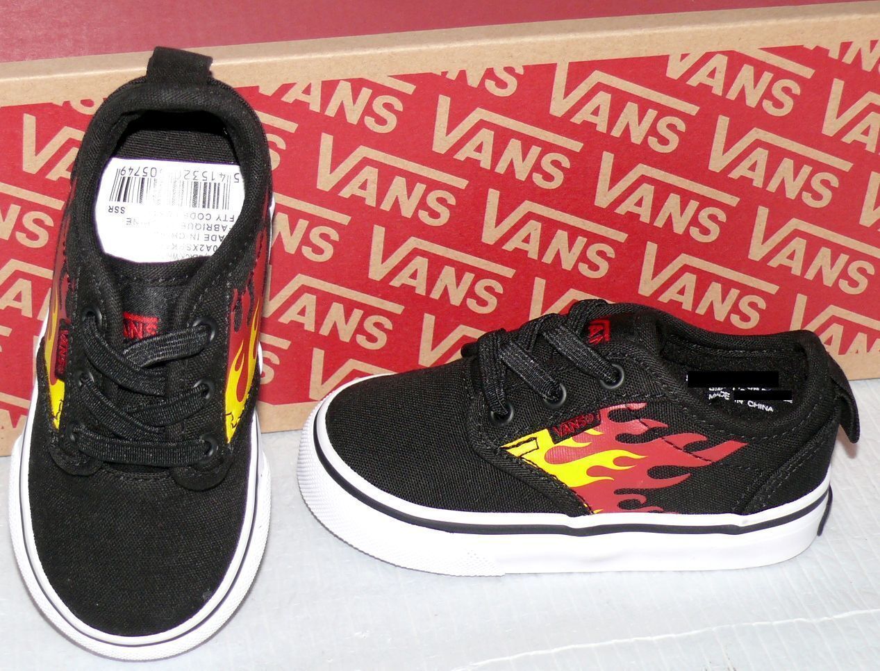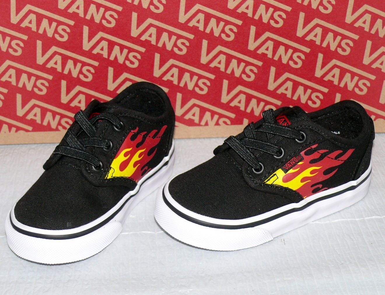 VANS Vans ATWOOD SLIP-ON T'S Canvas Kinder Schuhe Sneaker EU 21 Flame Black White