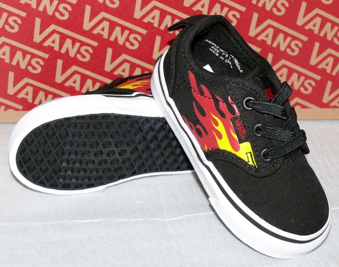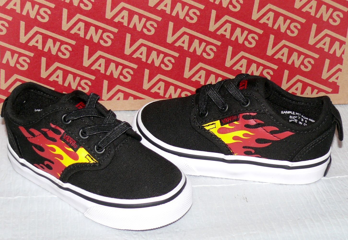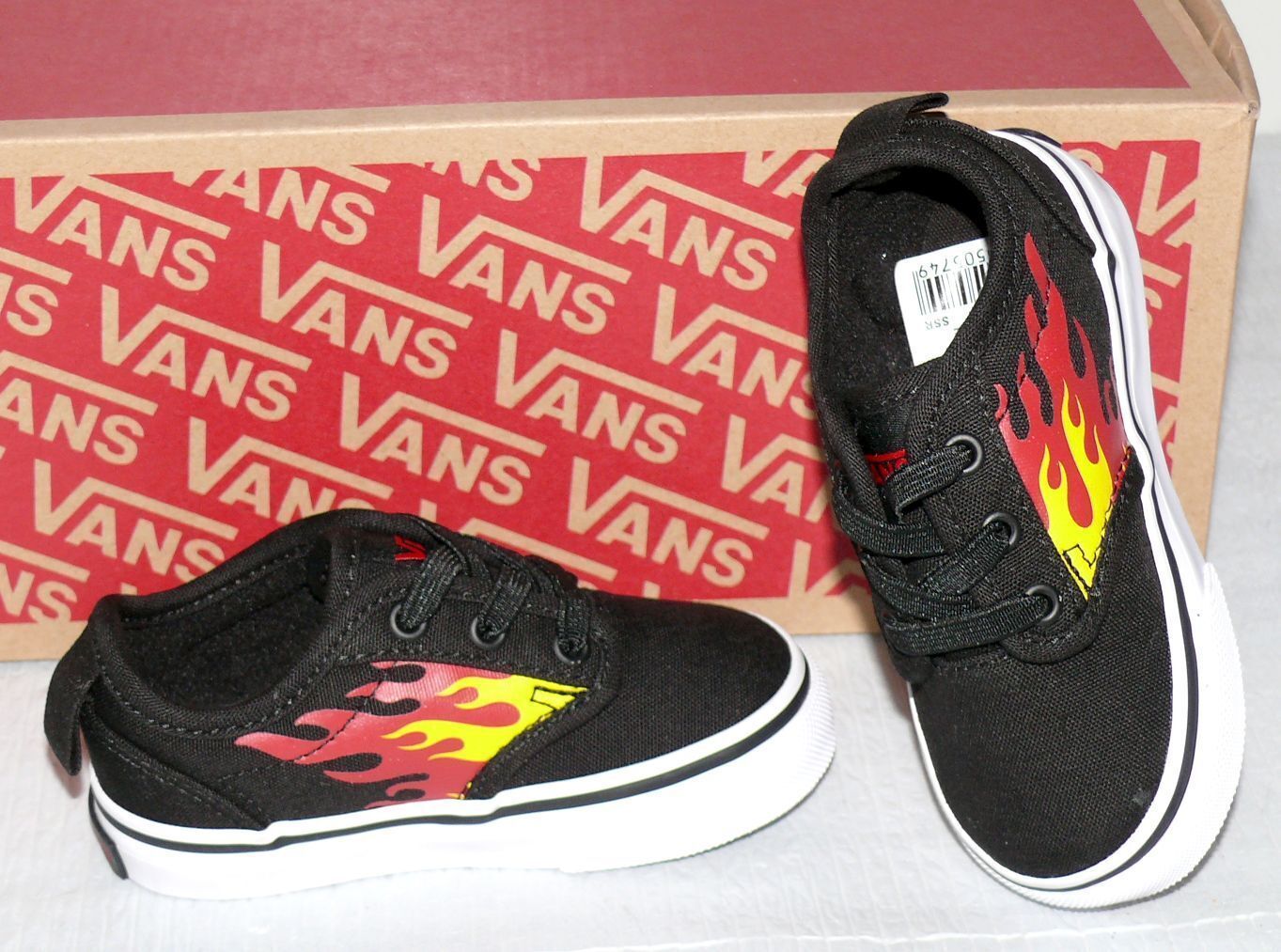 VANS Vans ATWOOD SLIP-ON T'S Canvas Kinder Schuhe Sneaker EU 21 Flame Black White
