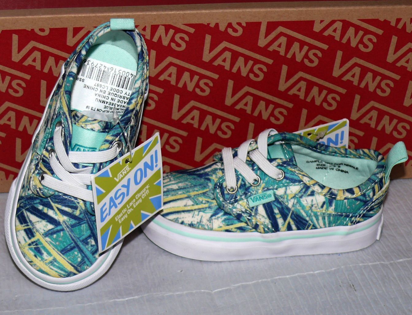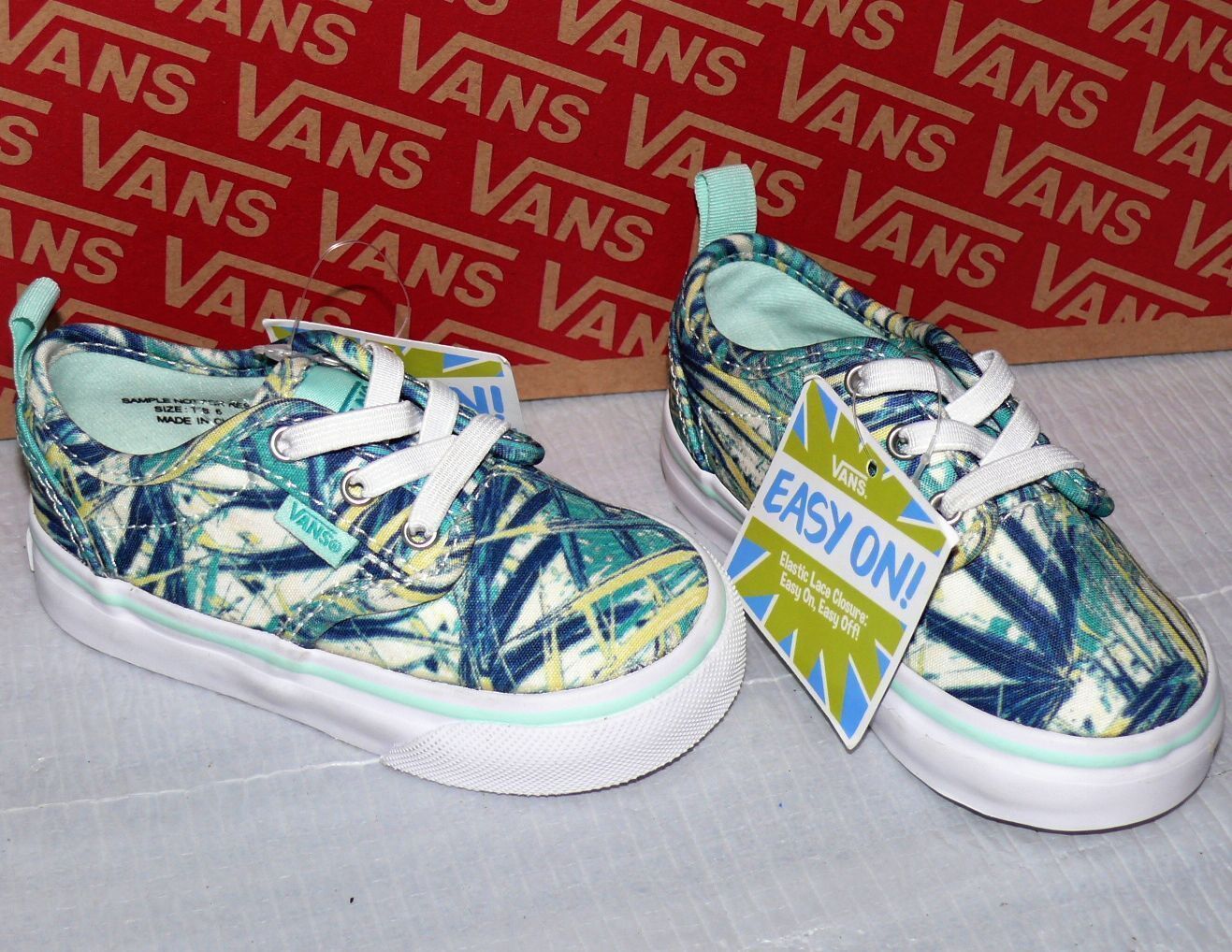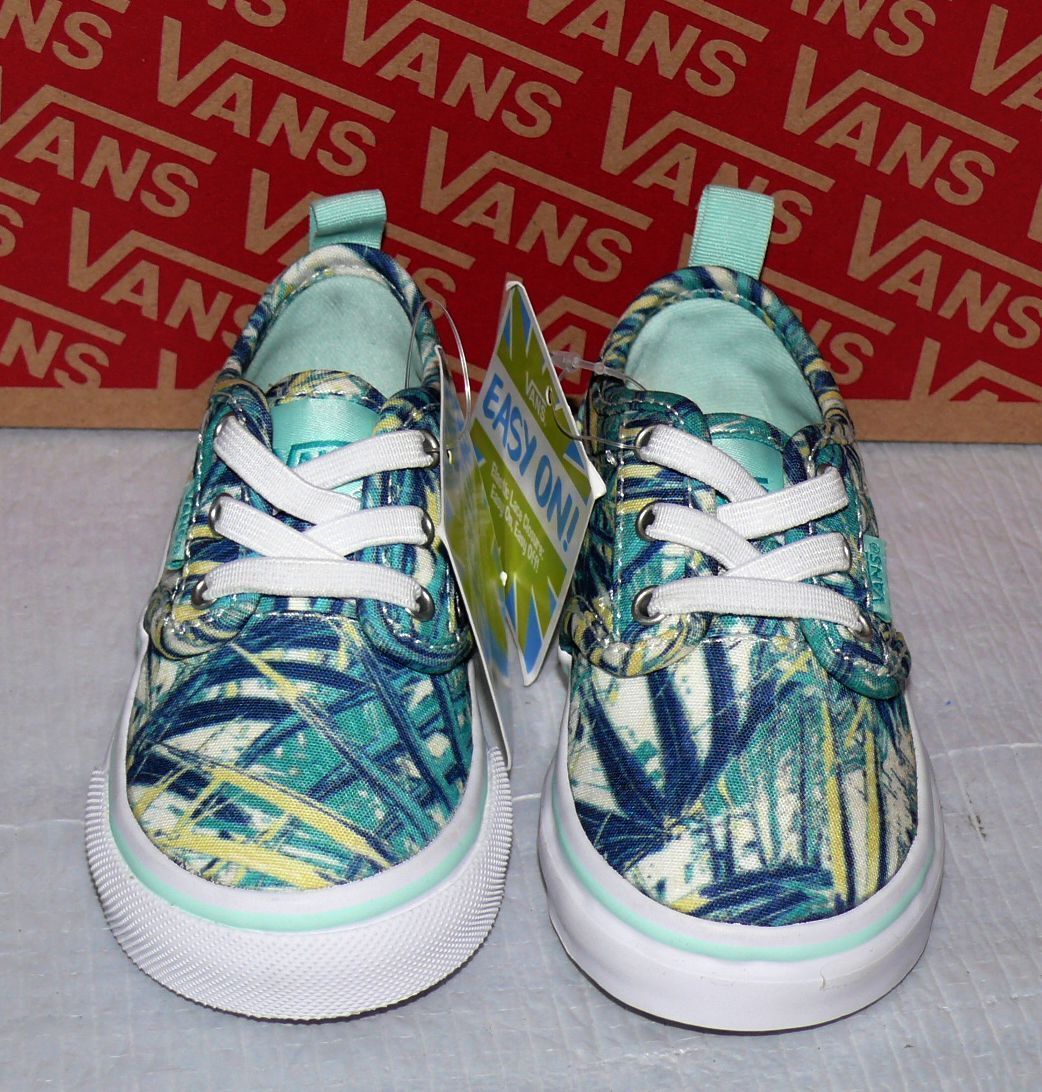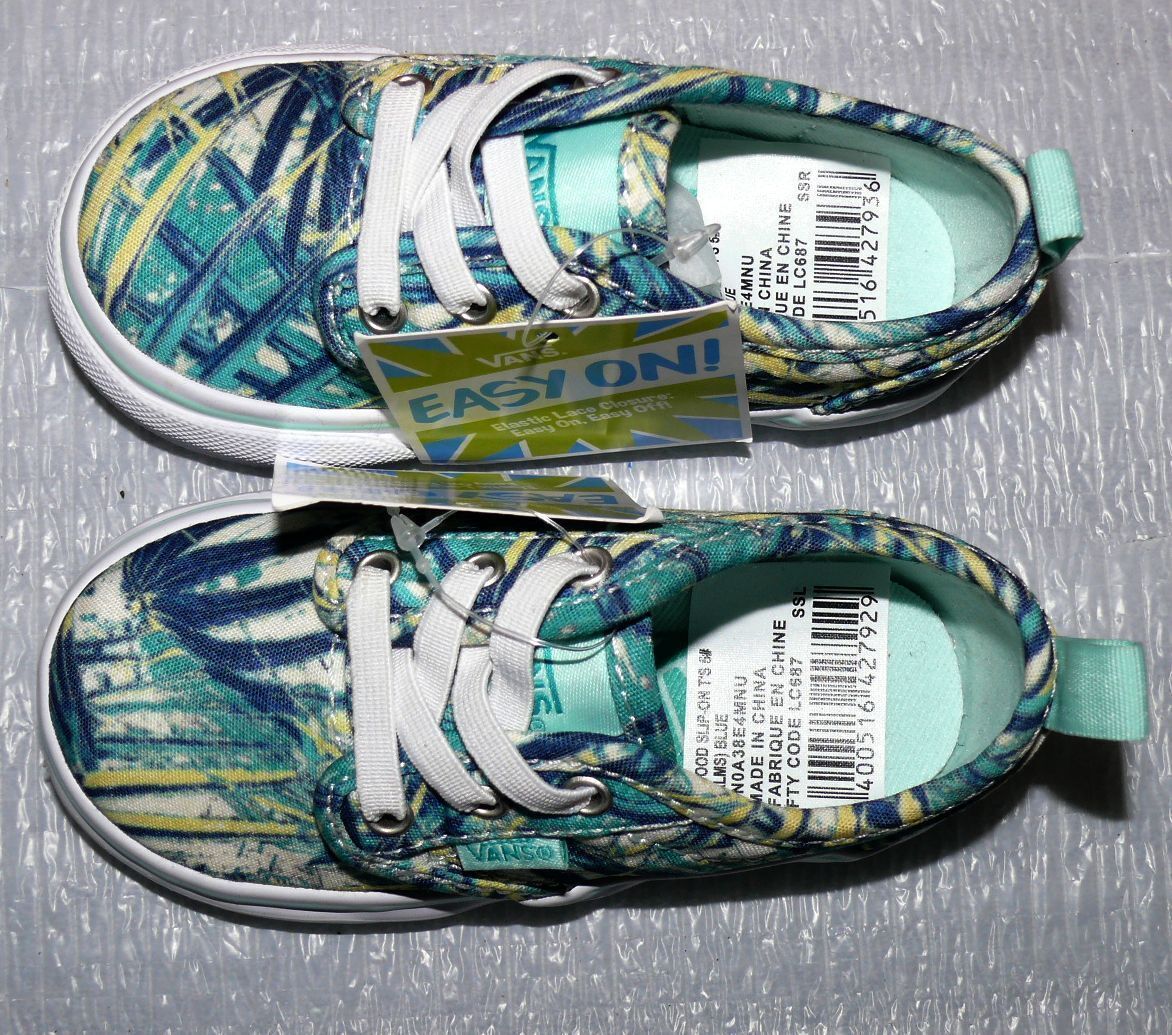 VANS Vans ATWOOD SLIP-ON T'S Canvas Kinder Schuhe Sneaker EU 21 PALMS Blue White