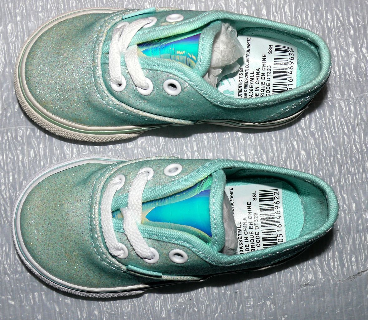 VANS Vans Authentic Glitter Iridescent T'S Canvas Kinder Schuhe Sneaker EU 21 Blue WH