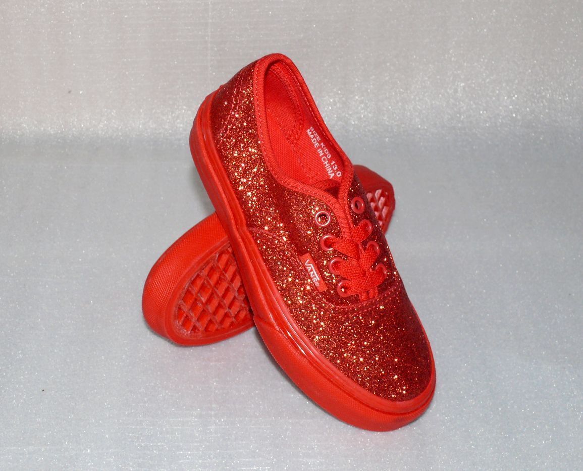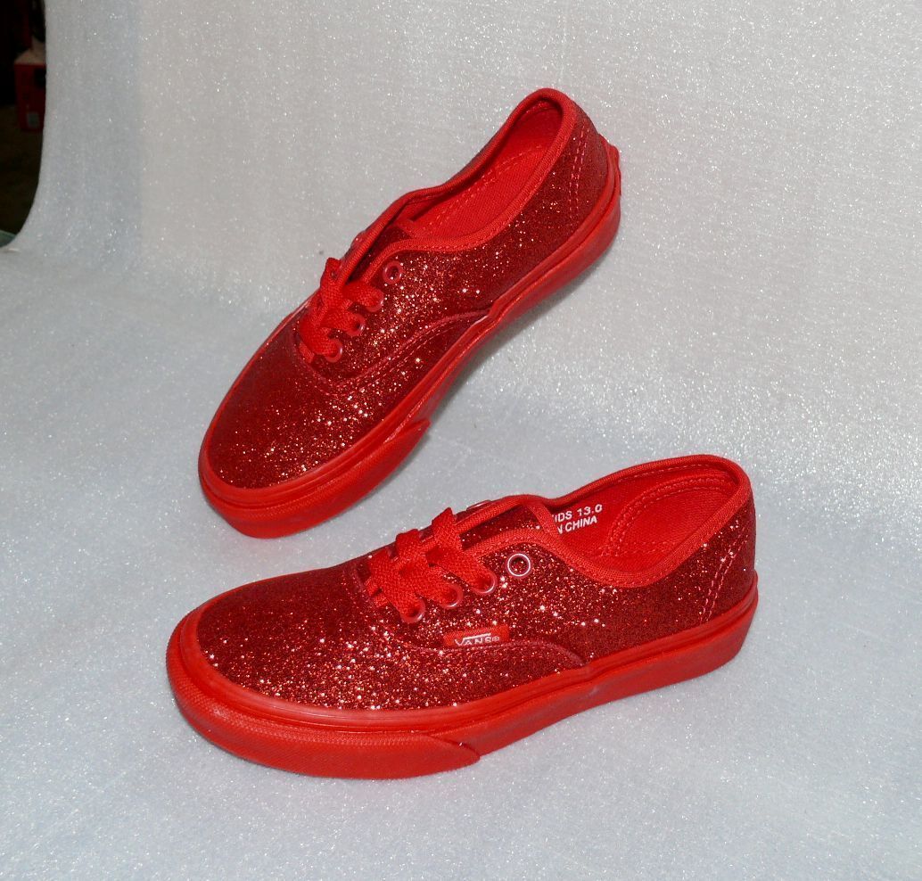 VANS Vans Authentic K'S Canvas Kinder Schuhe Sneaker 31 UK 13 Glitzern Shimmer Red