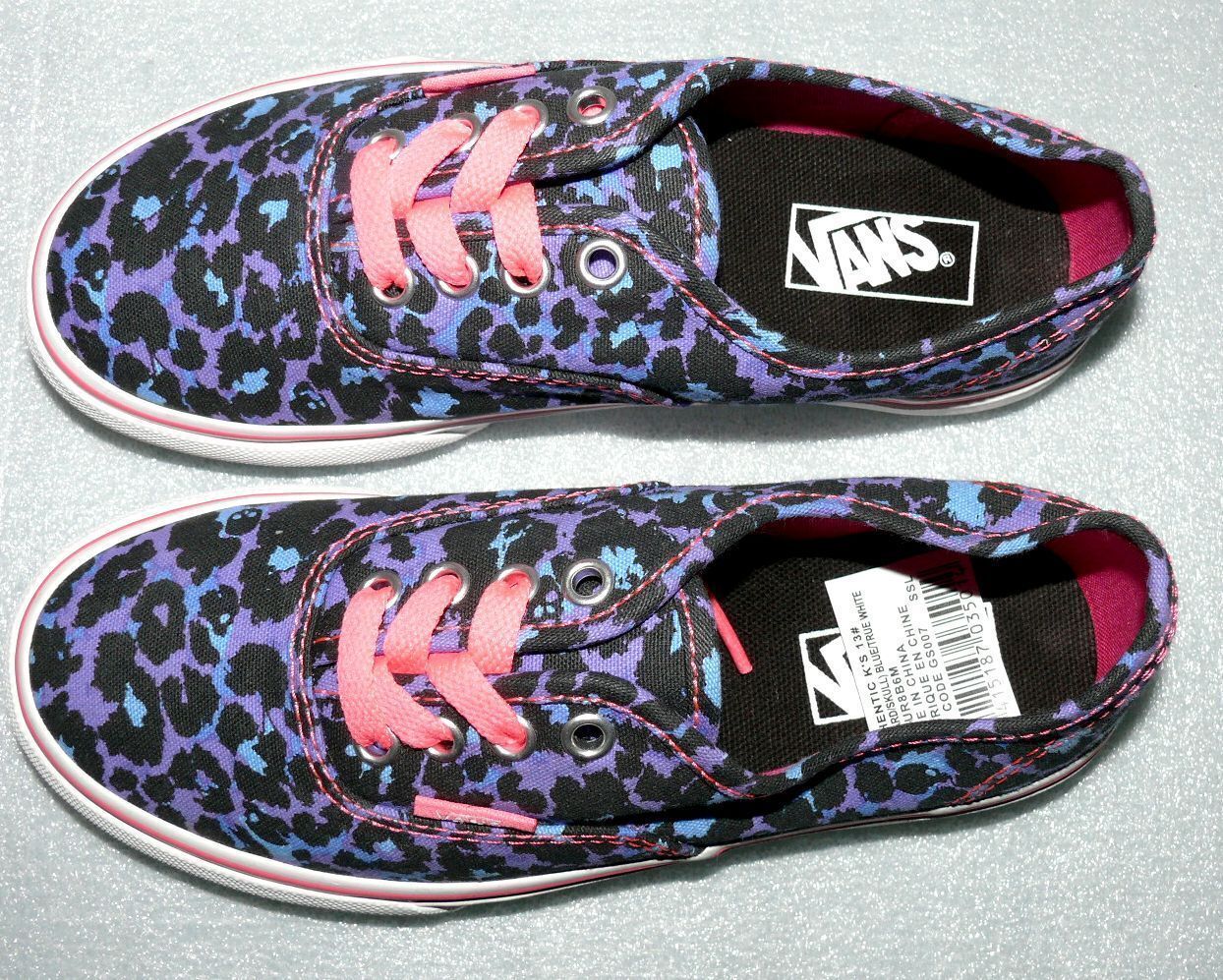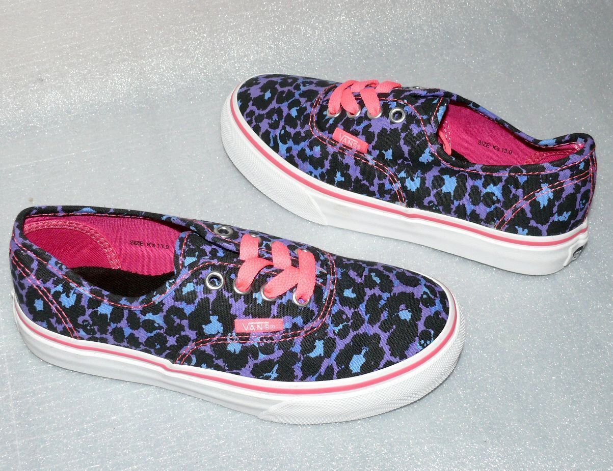 VANS Vans Authentic K'S Canvas Kinder Schuhe Sneaker 31 UK 13 Leopard Skull Blue Pink