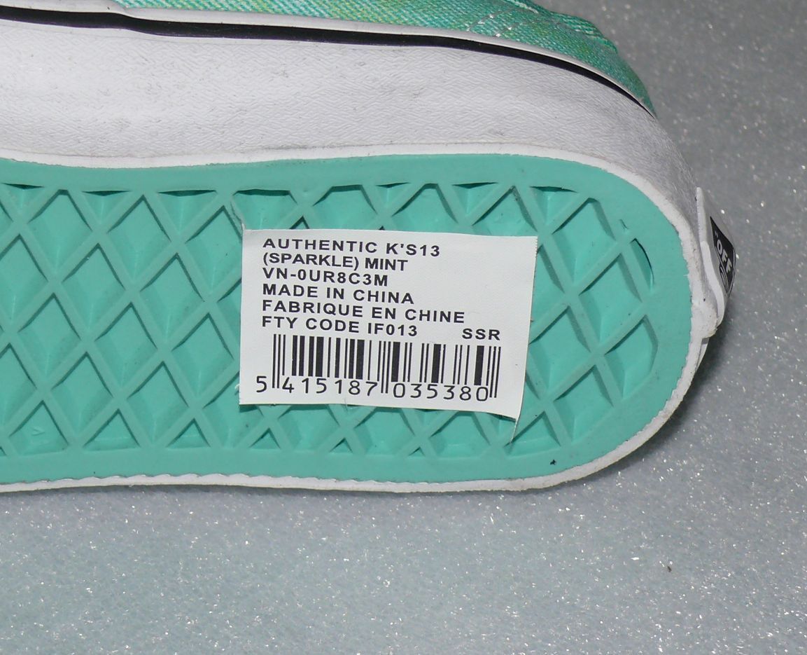 VANS Vans Authentic K'S Canvas Schuhe Freizeit Sneaker Gr 31 UK13 Sparkle Mint Weiß