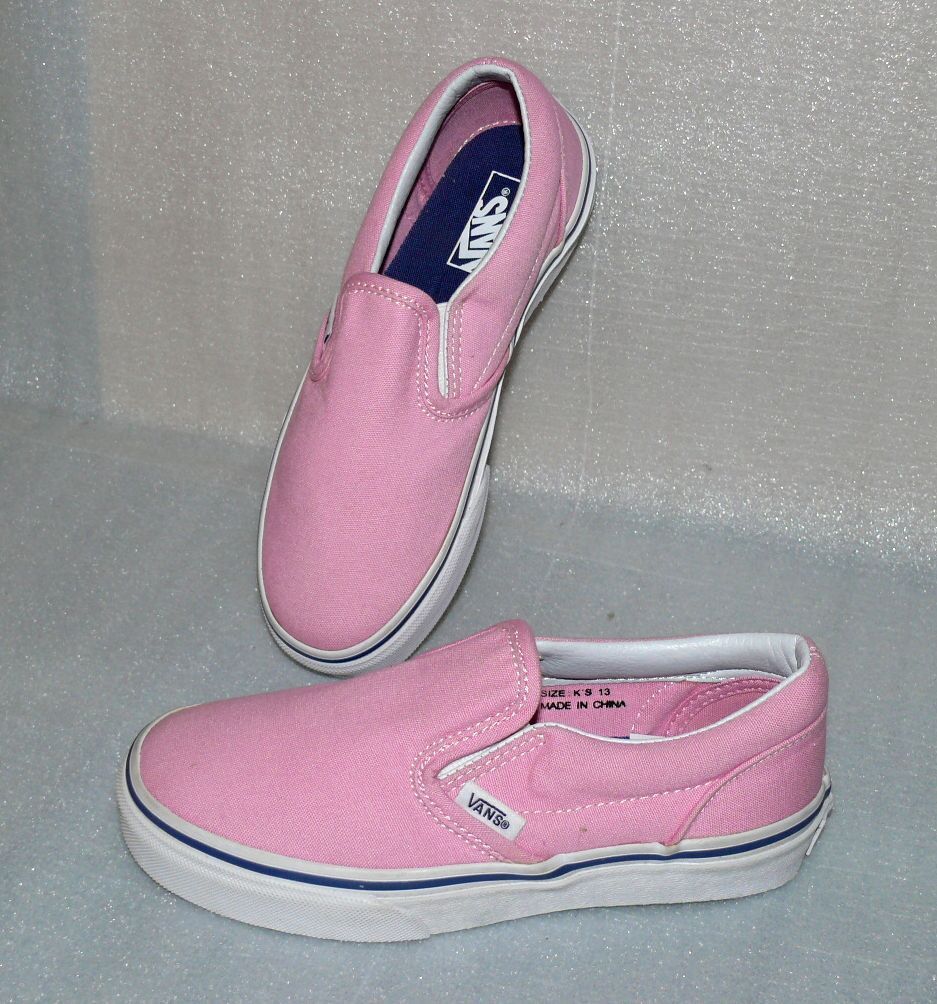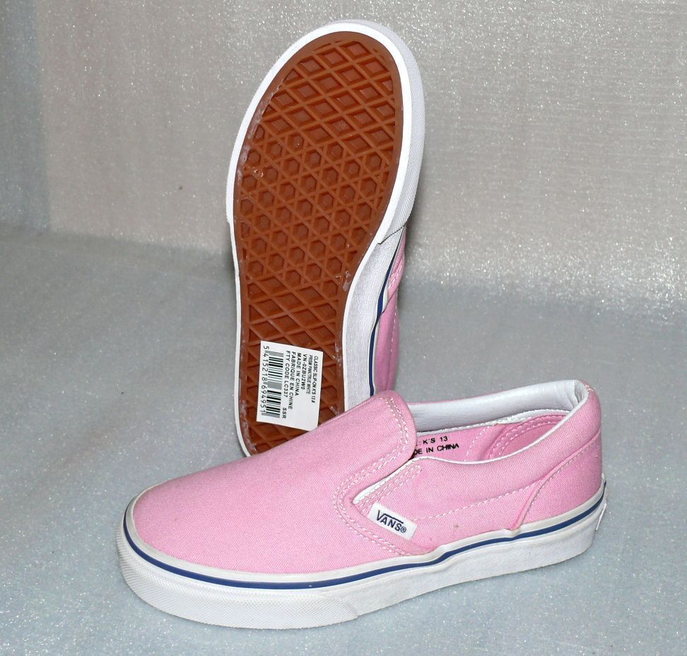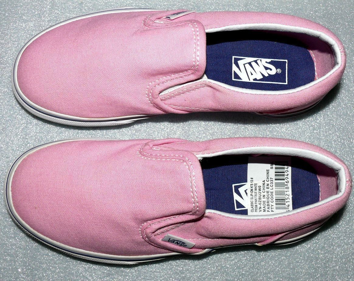 VANS Vans Calssic Slip On K'S Canvas Kinder Schuhe Sneaker 31 UK 13 Prism Pink White
