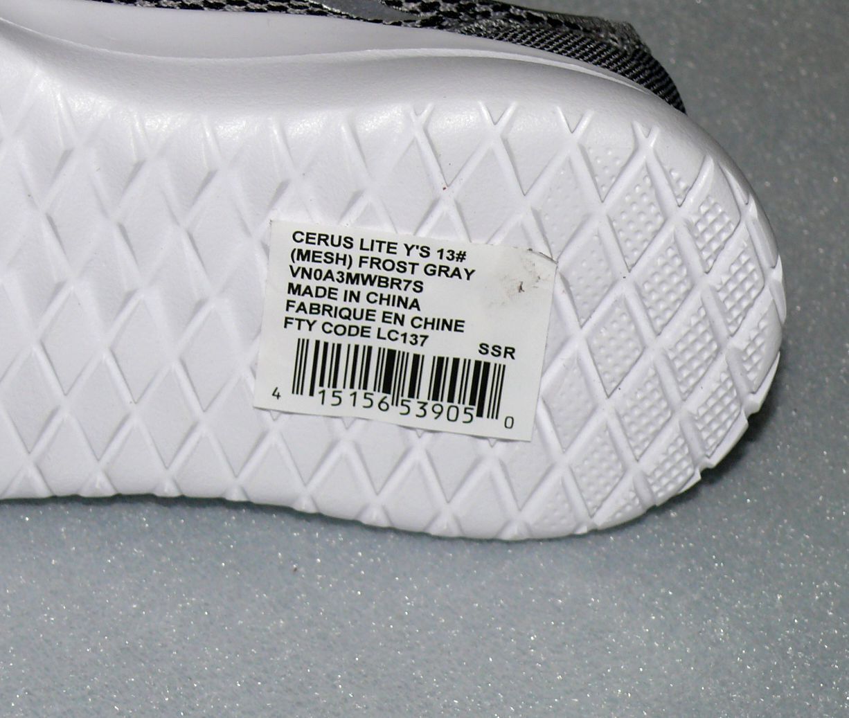 VANS Vans Cerus Super Lite Y'S Mesh Textil Kinder Schuhe Sneaker Gr 31 UK13 Grau Weis