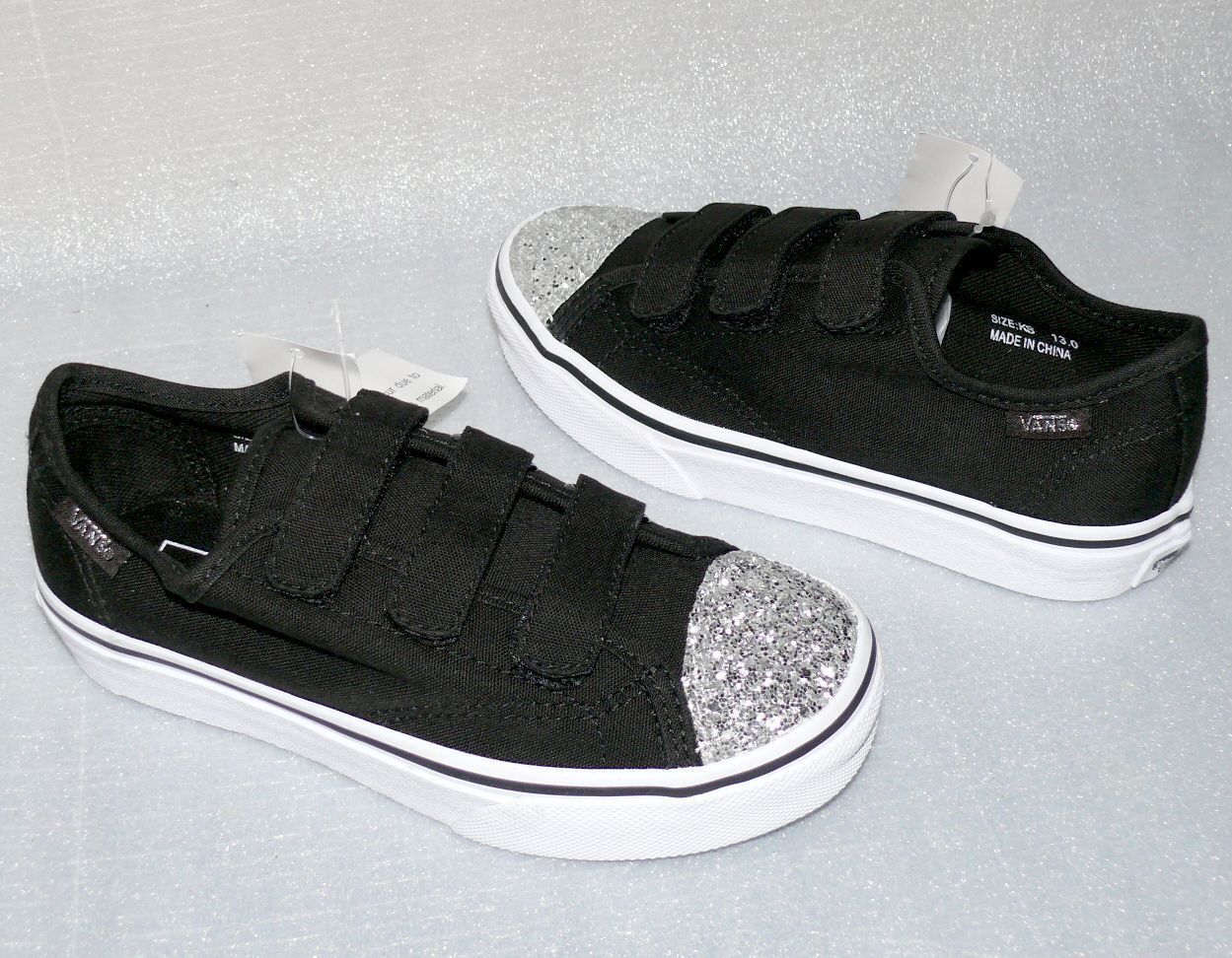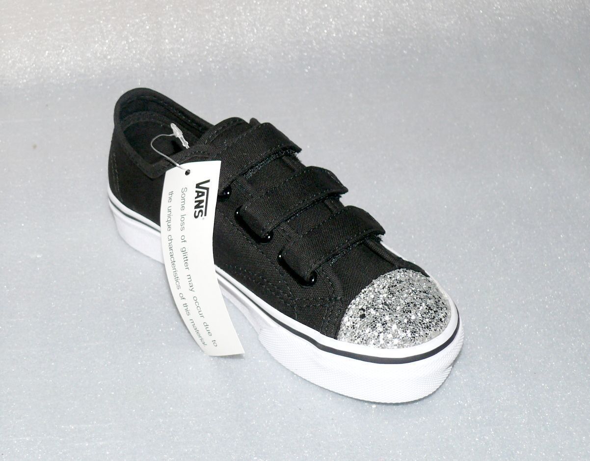 VANS Vans Style 23 V K'S Canvas Kinder Schuhe Sneaker 31 UK 13 Glitter Toe Black Whi