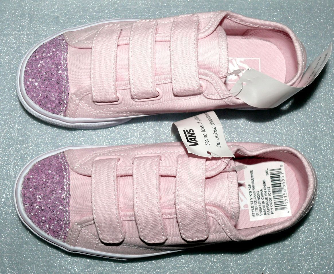VANS Vans Style 23 V K'S Canvas Kinder Schuhe Sneaker 31 UK 13 Glitter Toe Chalk Pink