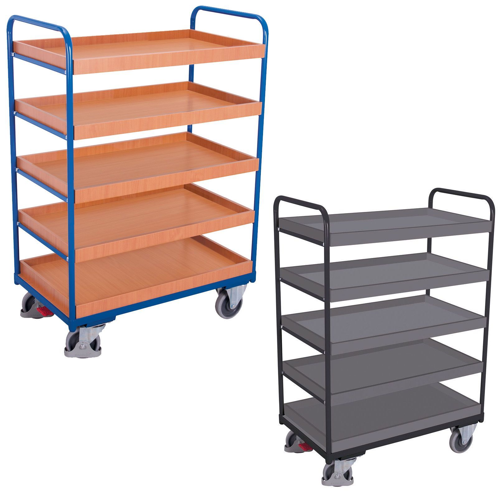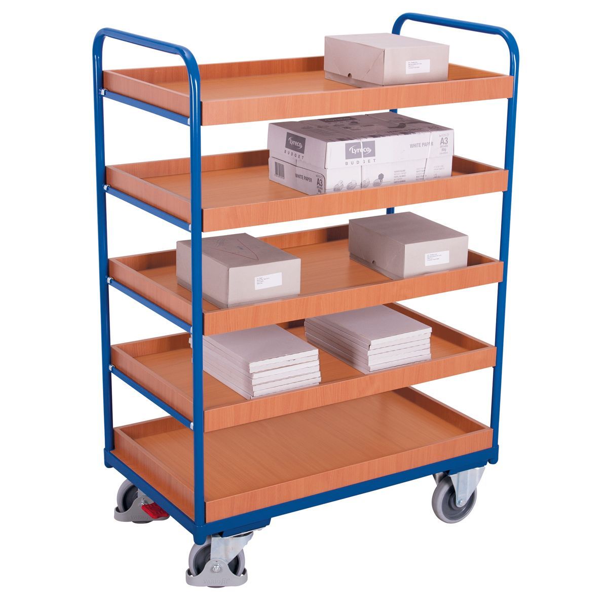 VARIOfit Etagenwagen, hoch mit 5 Ladeflaechen, umrandet 1165x755mm Enzianblau RAL 50