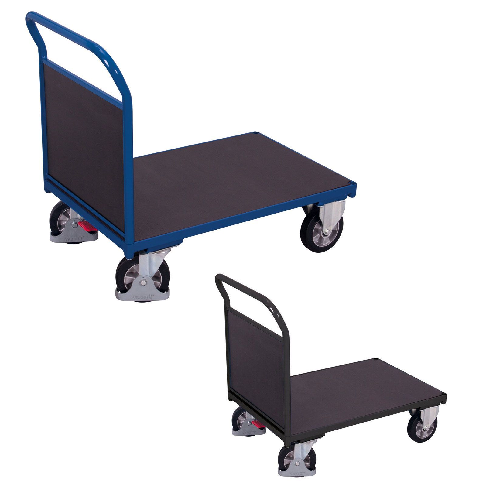 VARIOfit Stirnwandwagen mit Siebdruckplatte 1000kg Tragkraft 1225x800mm Enzianblau R