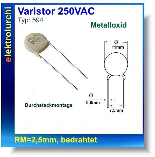 Varistor, Metalloxid 250VAC, Typ 594, Überspannungsschutz, Epcos, 3St.