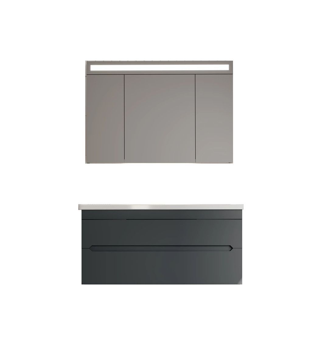 Varna Badmöbel 80 cm Keramikbecken LED Spiegelschrank Grau