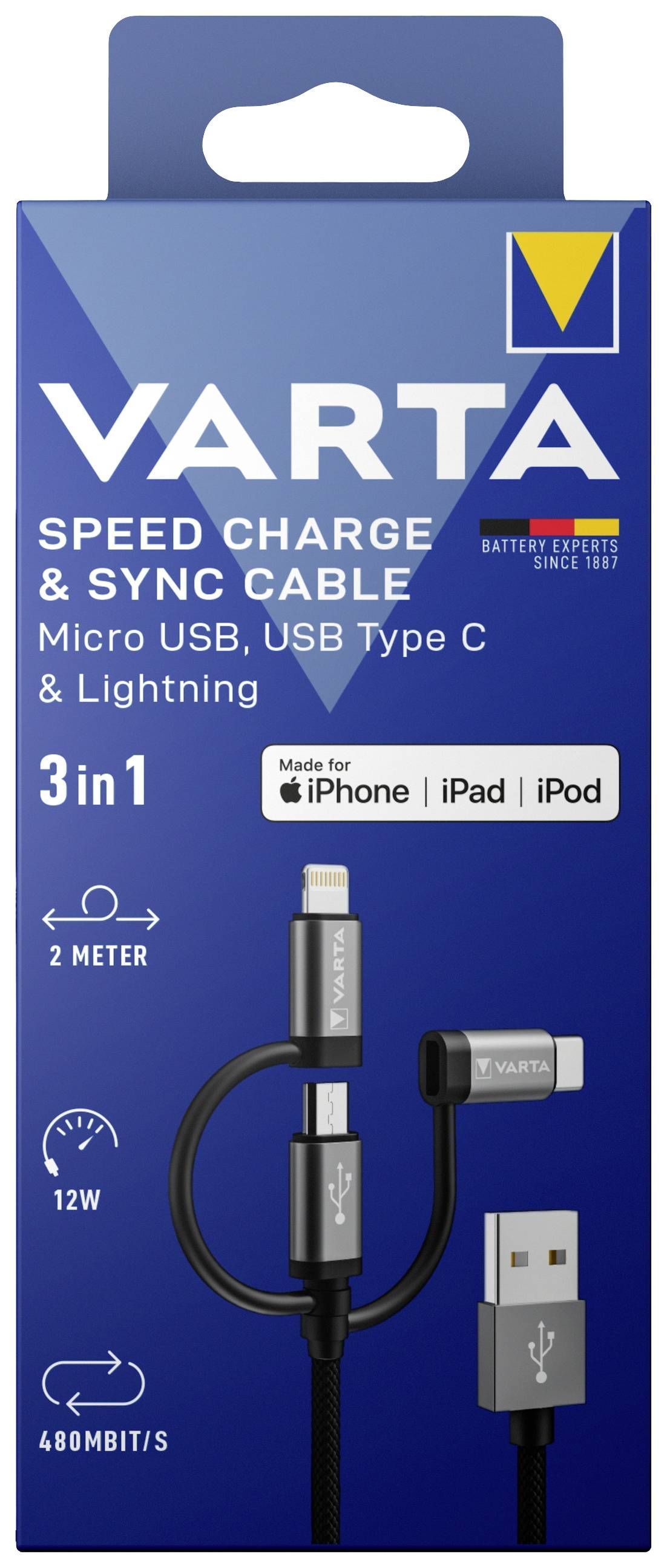 Varta Varta 57937 101 111 Speed Charge & Sync Kabel 3in1 USB , 2 m, schwarz