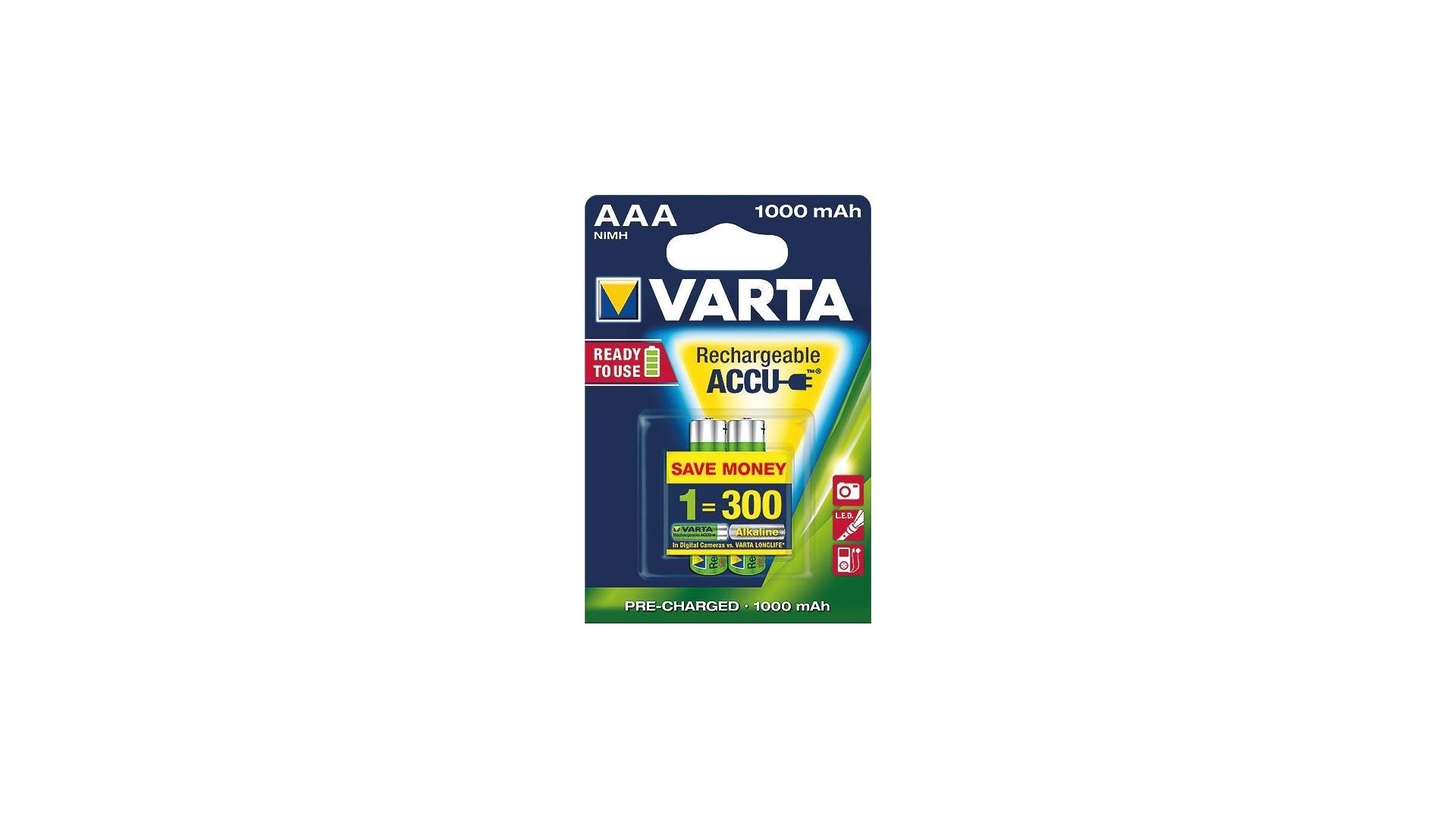 Varta VARTA Akku "Rechargeable" Nickel-Metall- Micro (AAA HR03), 1000 mAh, 2 Stück