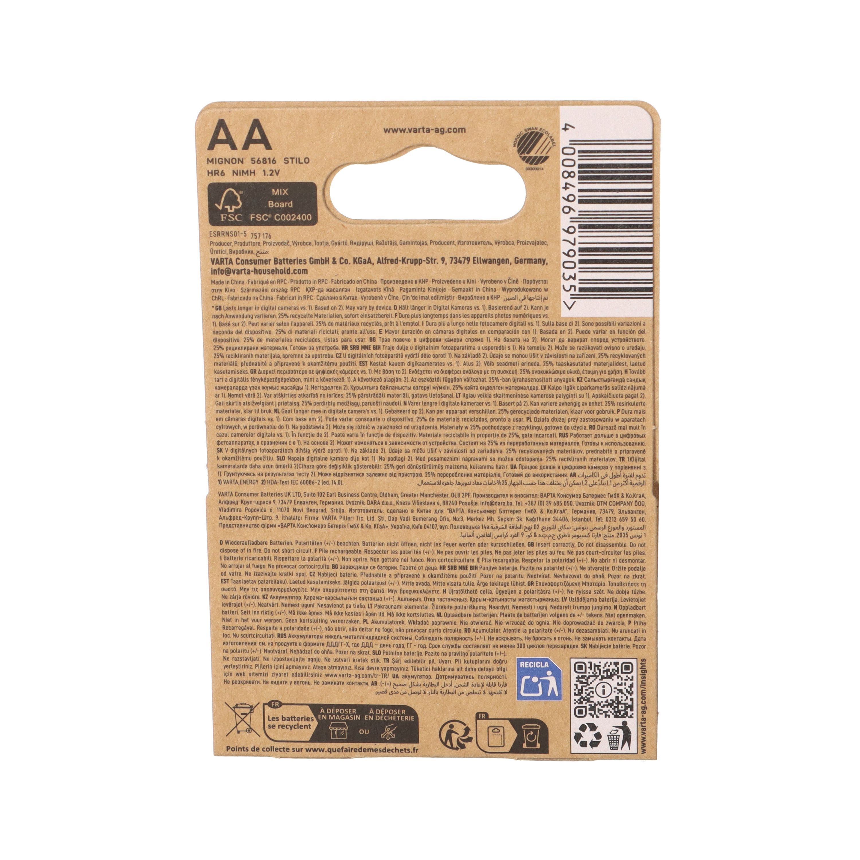 Varta Varta Recharge AA Mignon Accu Recyled Ni-MH 1,2V 2100mAh 2er Blister