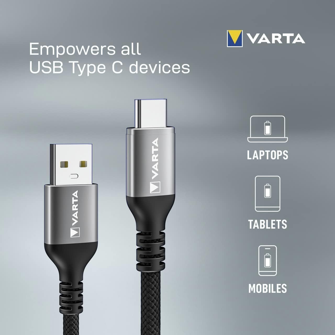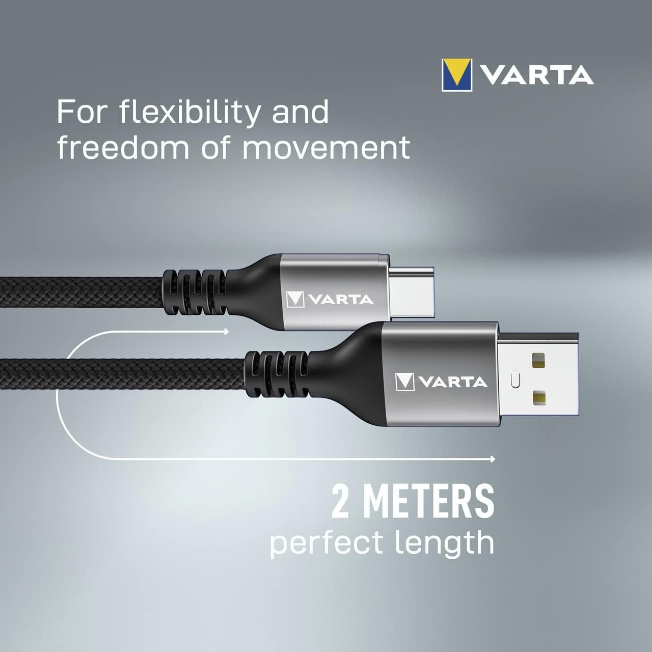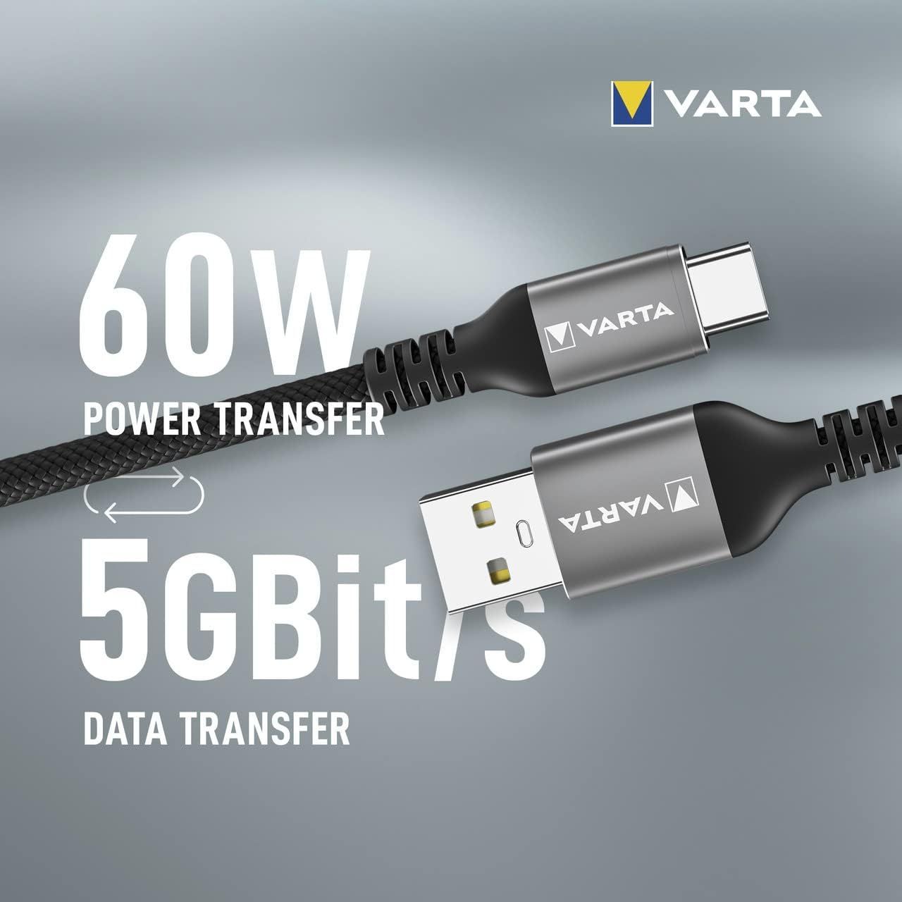 Varta Varta USB-Kabel USB zu USB-C – 60W Ladeleistung, 2 Meter, Schwarz