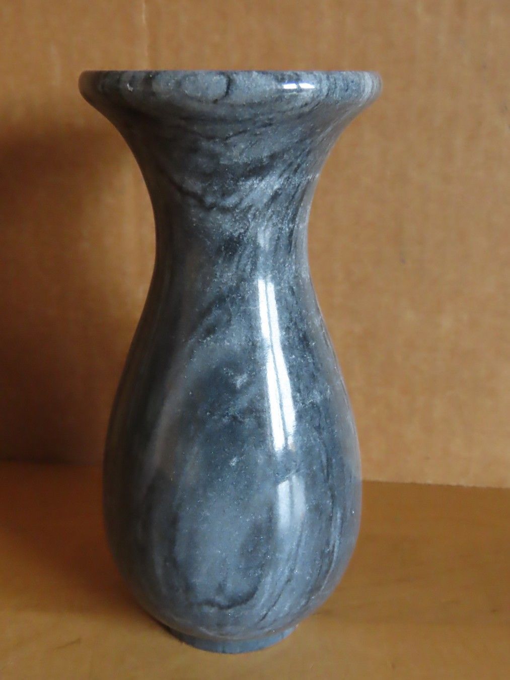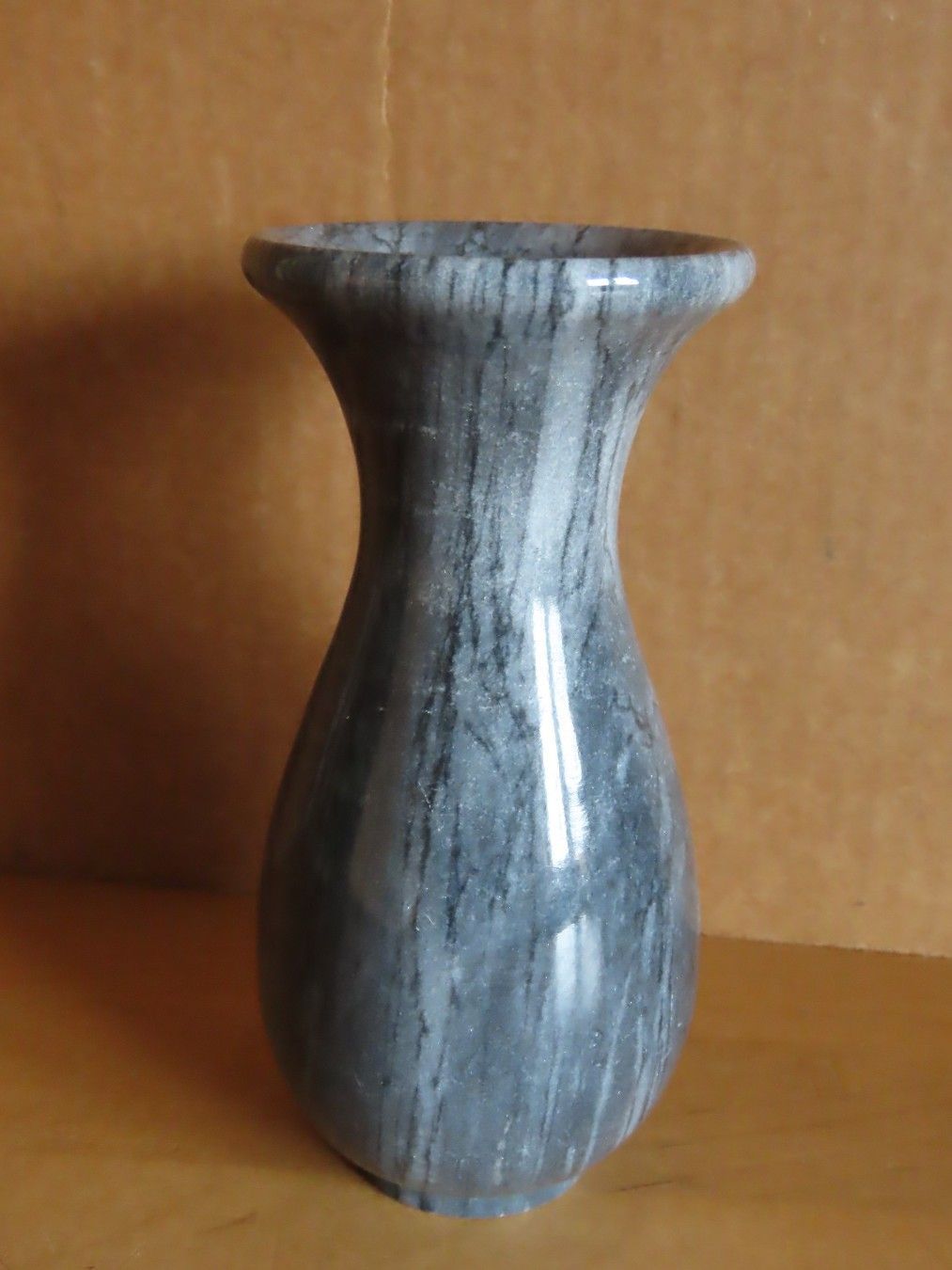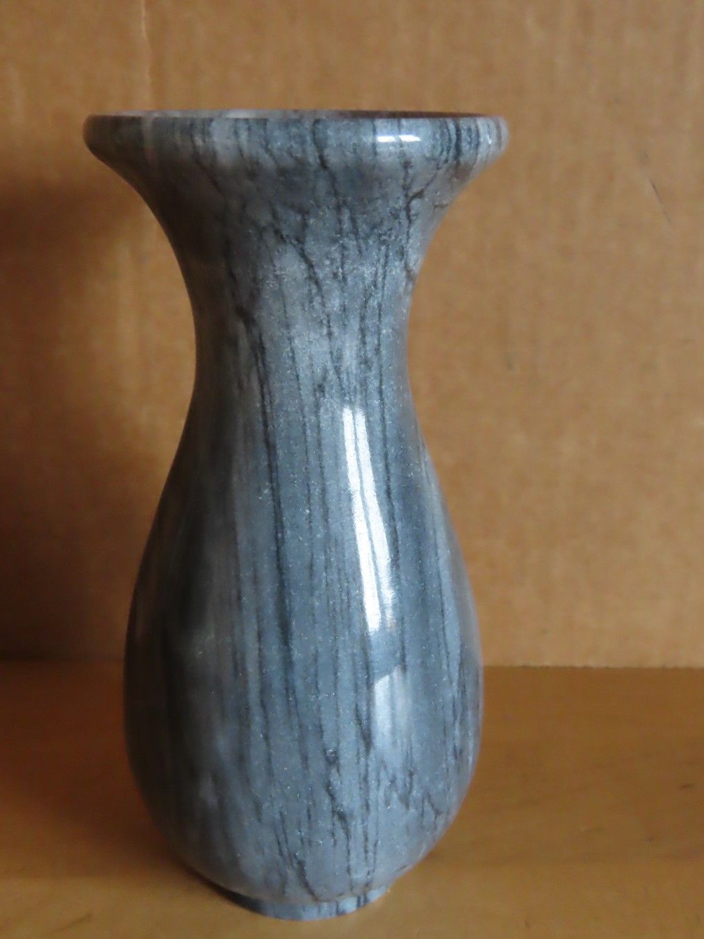 Vase Alabaster Stein rund mit schwarz grau 13 cm H