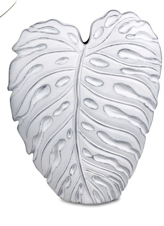 Vase Blatt 42cm Dekovase antik weiss mit silber Blumenvase aus Keramik