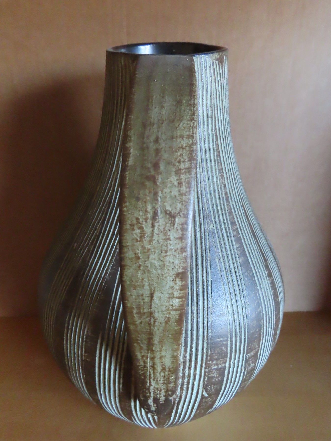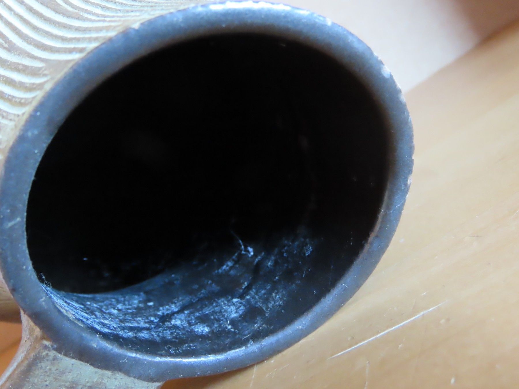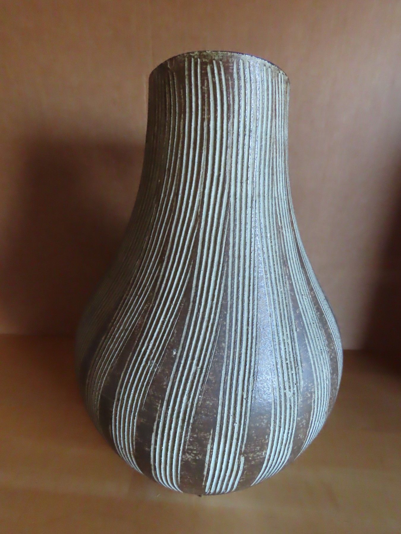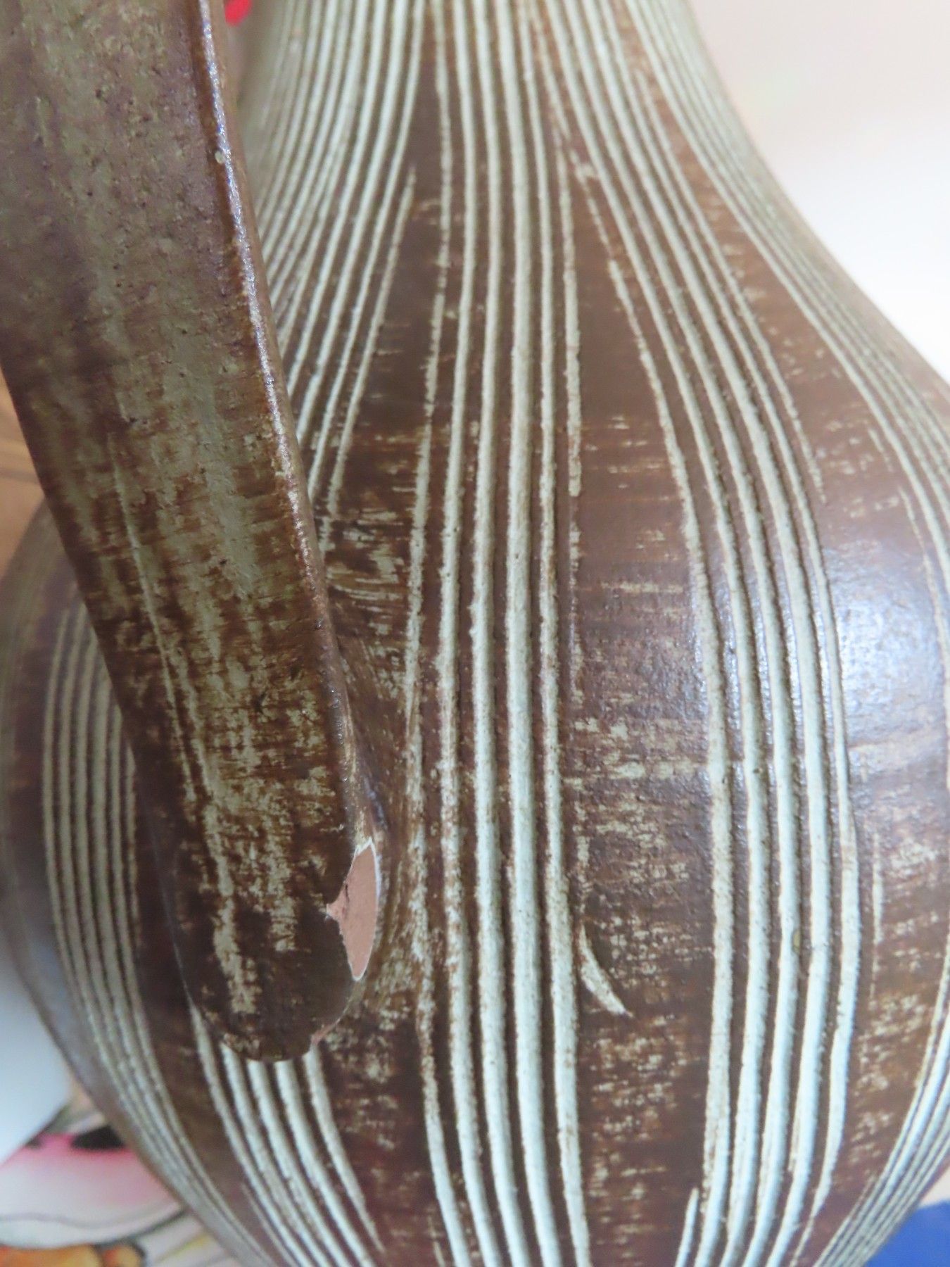 Maße: ca. 29 cm hoch und hat einen Durchmesser von ca. 19 cm ---immer an der breiteten Stelle gemessen aber ohne Griff die Öffnung hat einen Durchmesser von ca.6,5 cm und der Boden hat einen Durchmesser von ca. 9 cm Material: Keramik ist innen verschmutzt und hat zwei kleine Absplitterung... Mehr