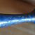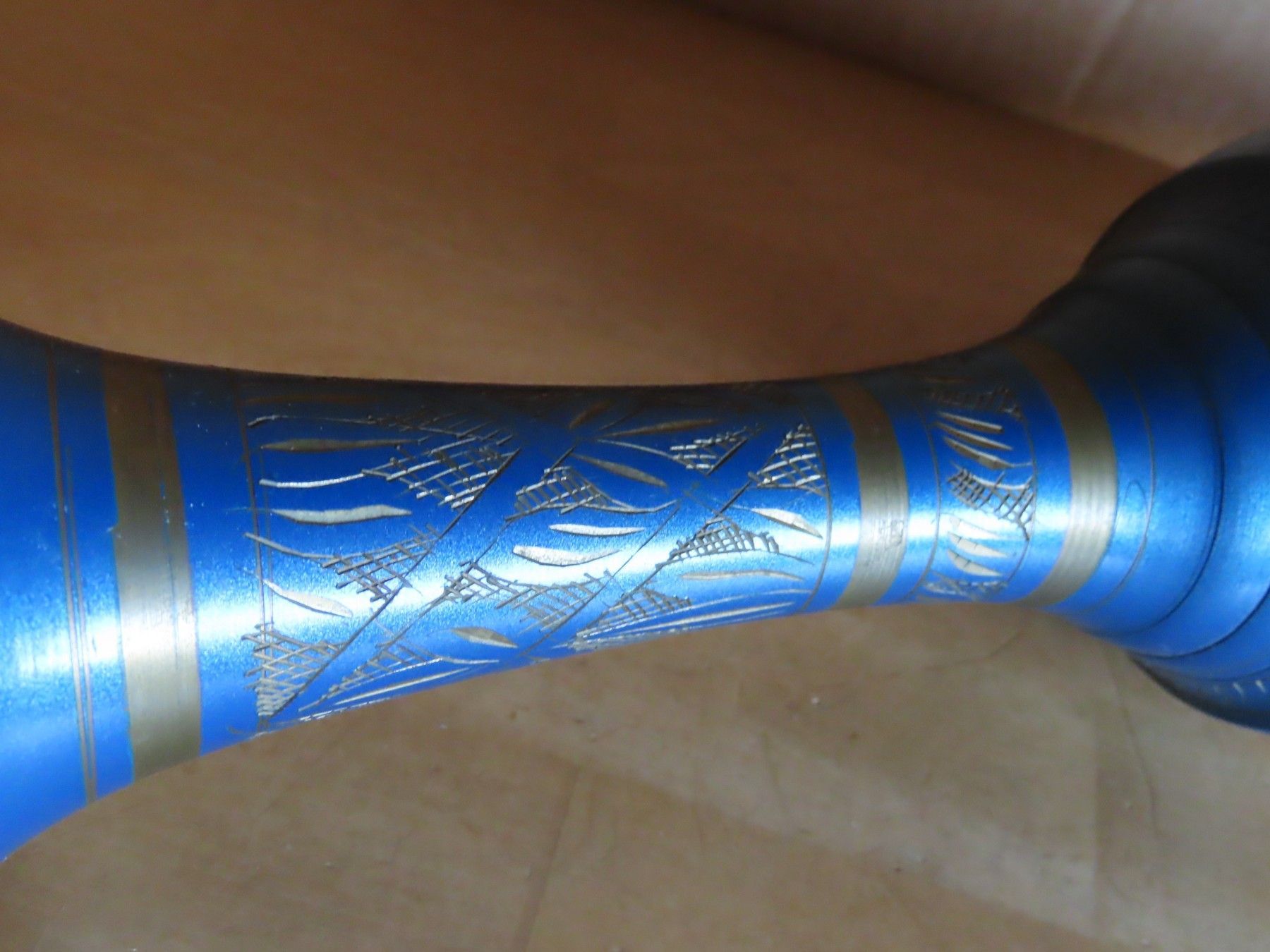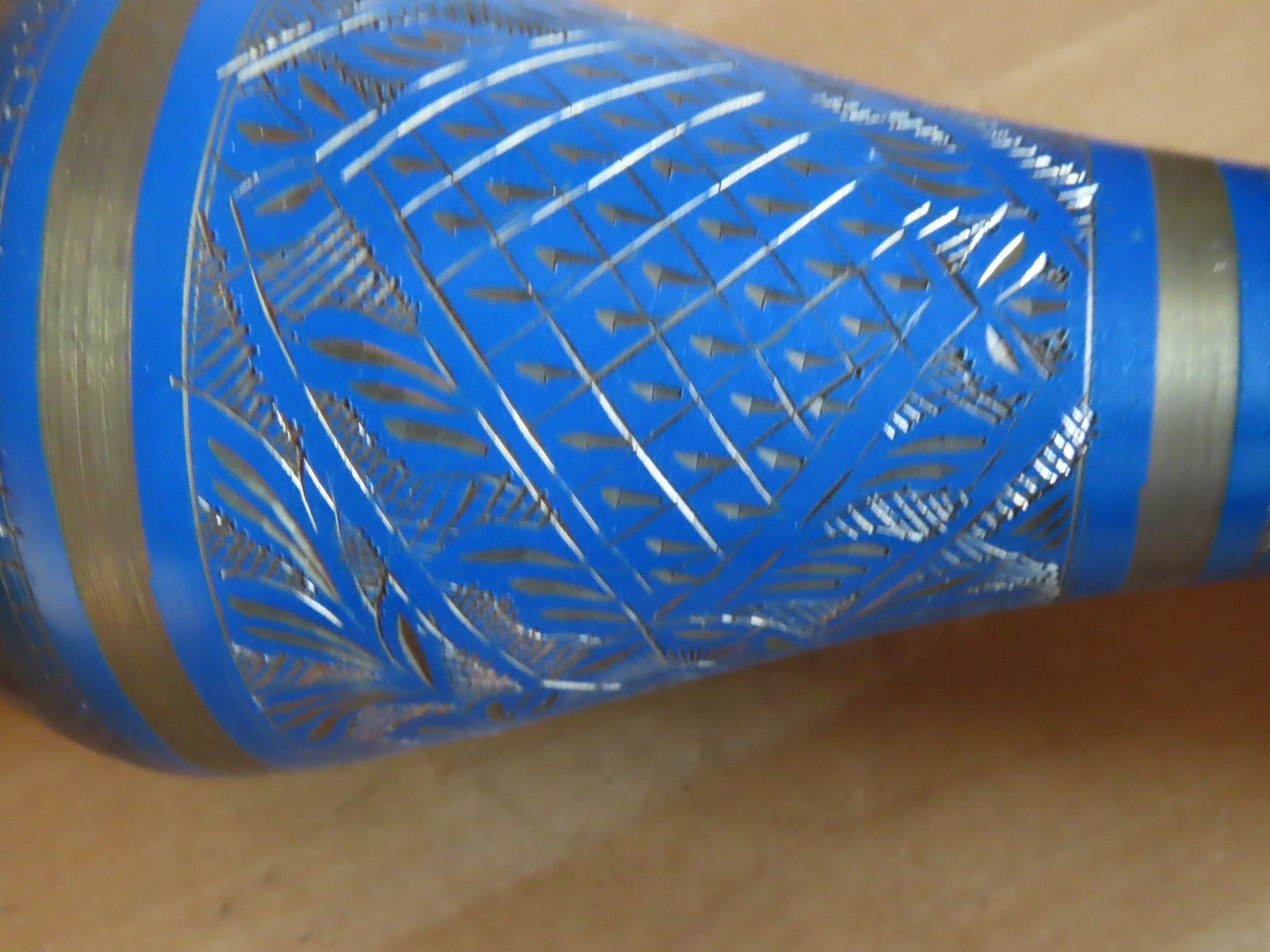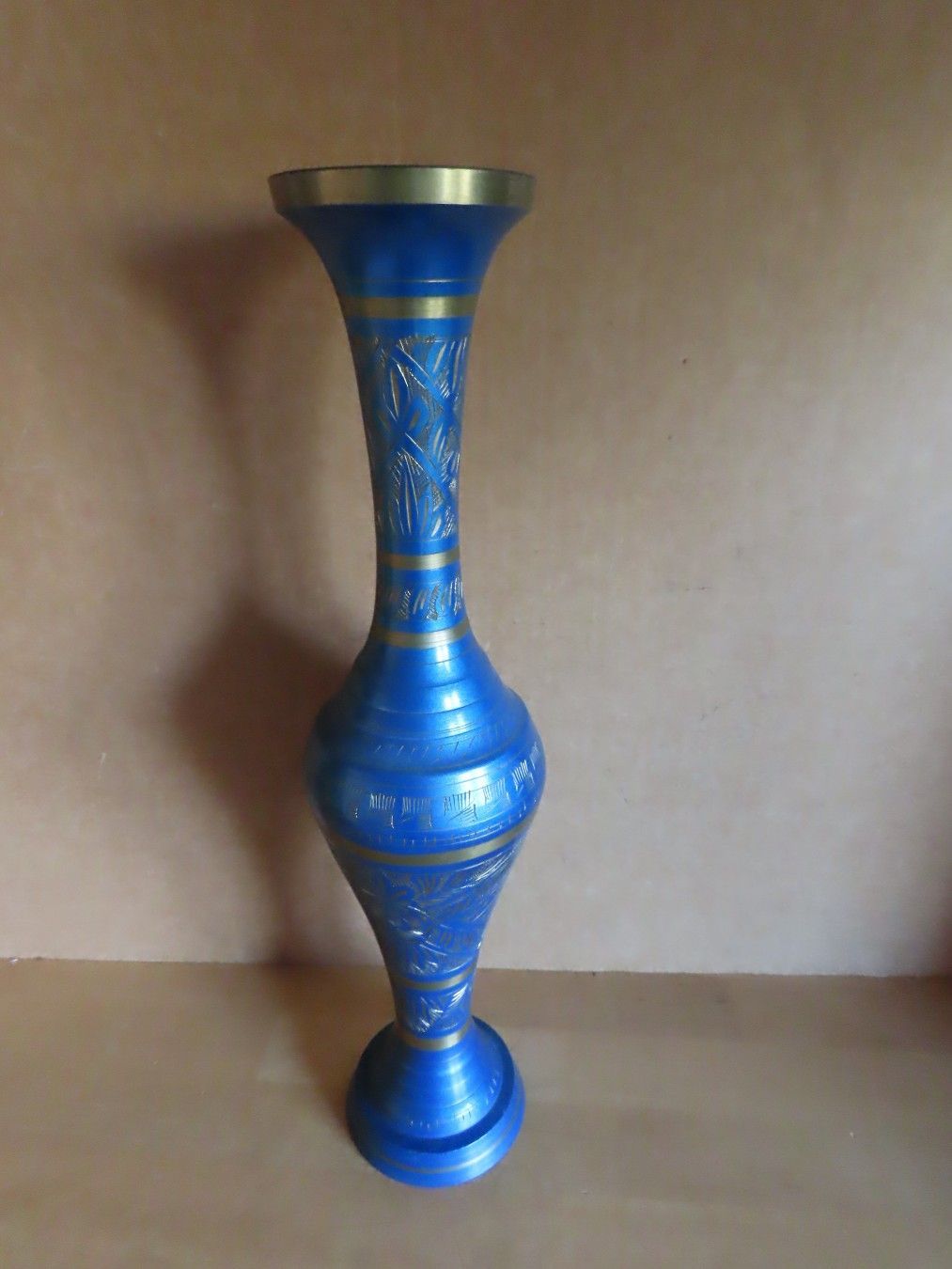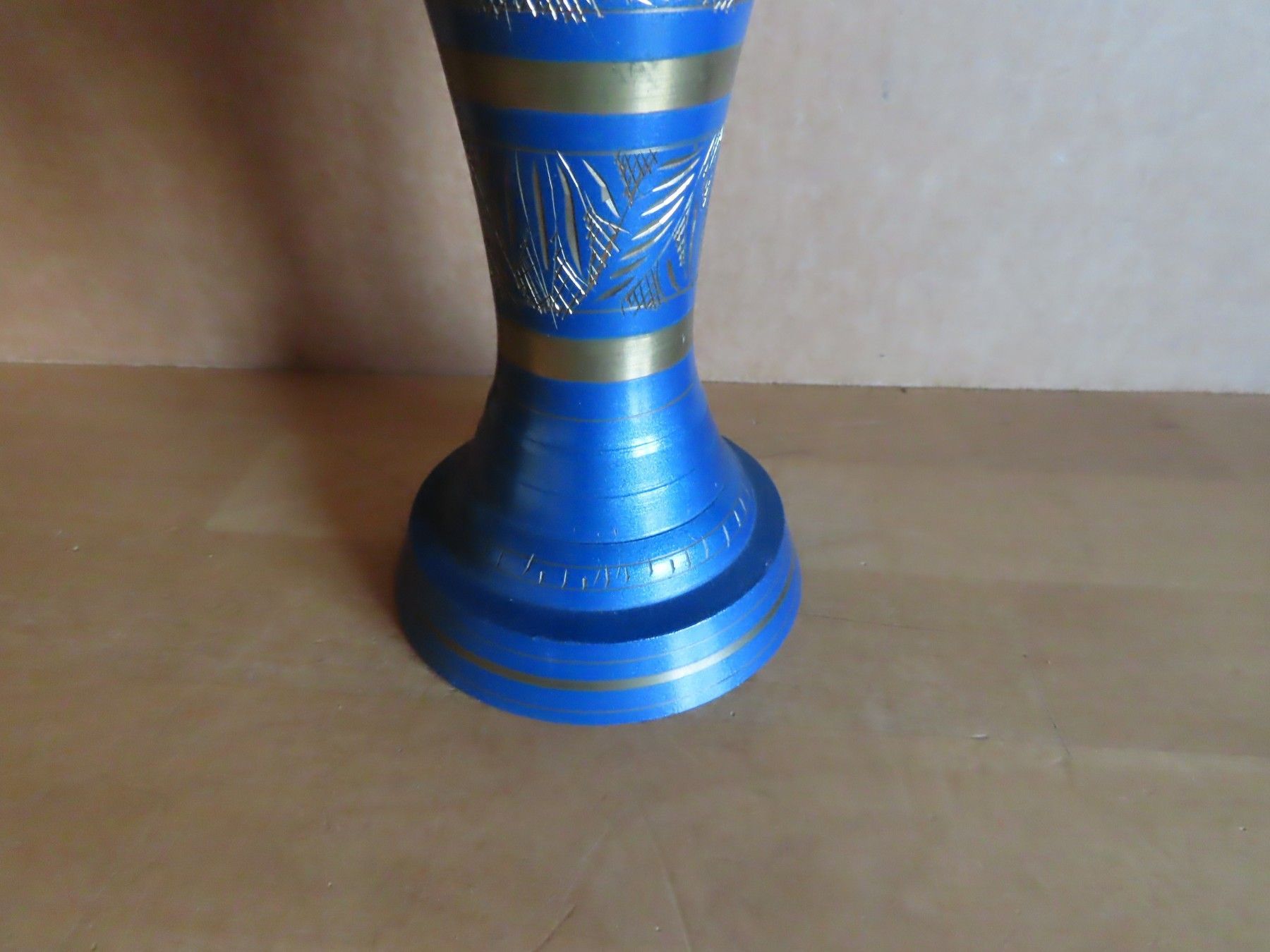 Vase Metall blau golden mit Gravur ca. 37 cm H schmaler Hals 110217
